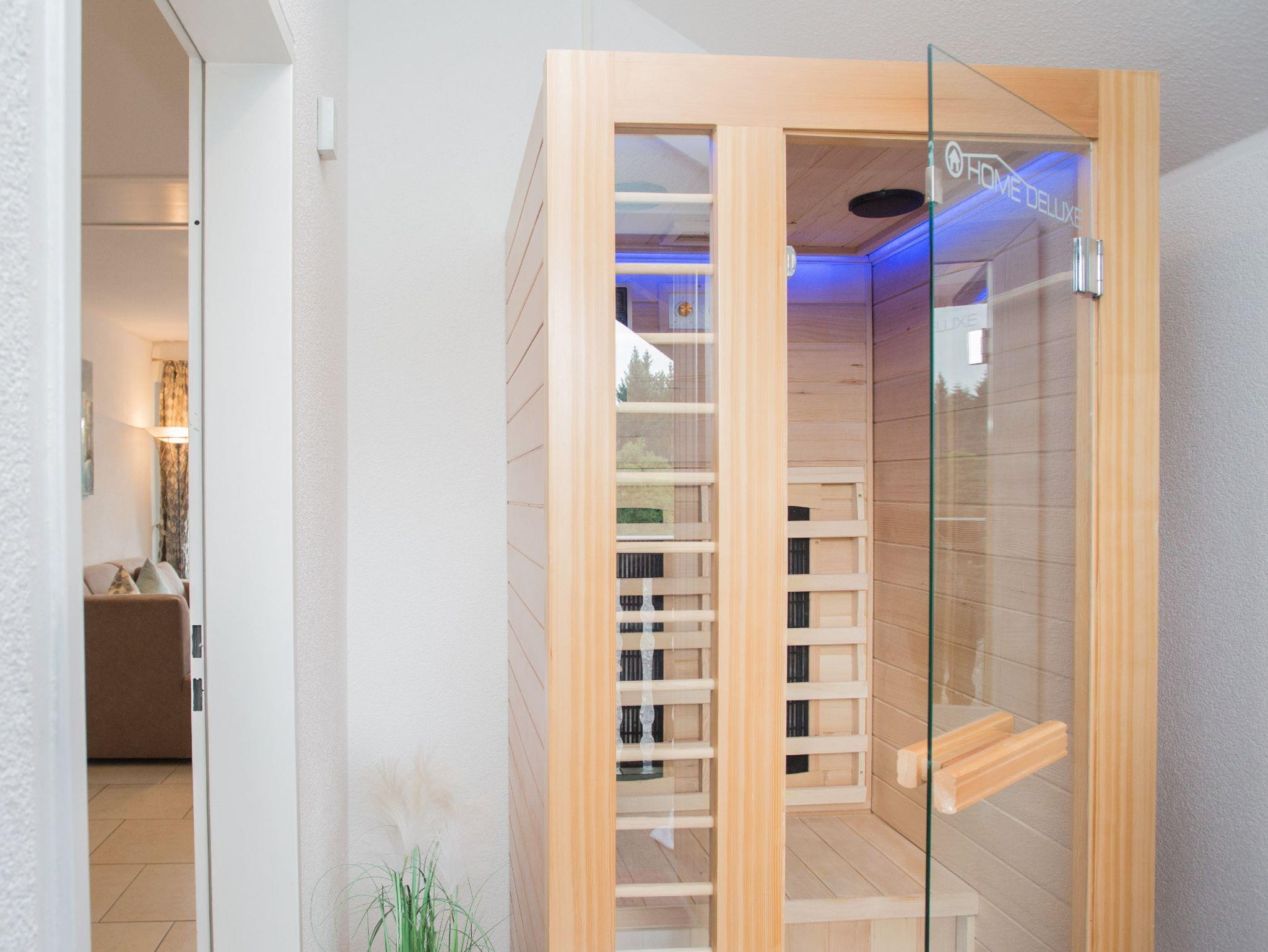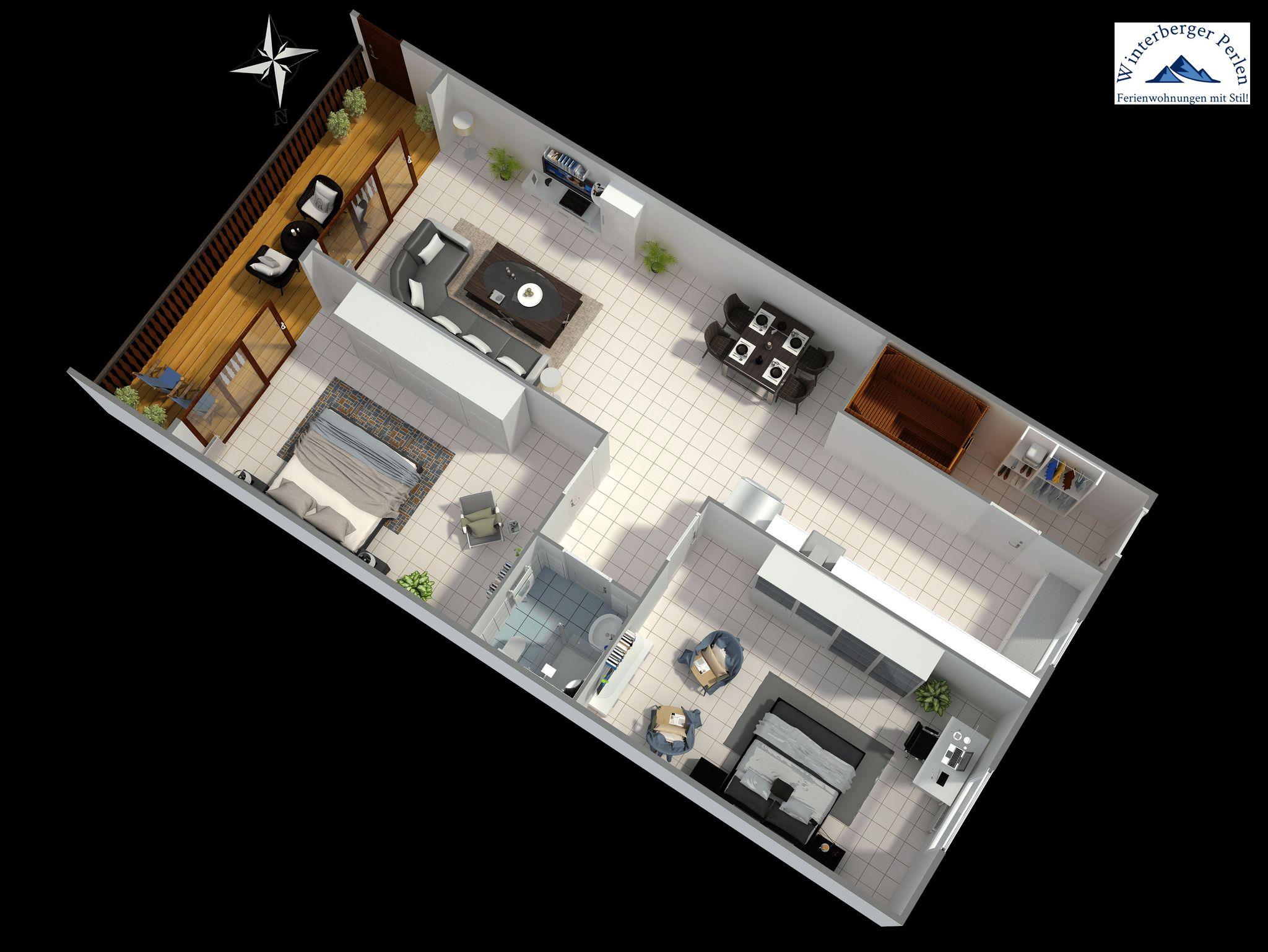 Die hochwertig, hell und modern ausgestattete 3-Raum Ferienwohnung Kappeblick (ca. 70 m² Wohn-/Nutzfläche) in zentraler Lage von Winterberg verfügt über 2 Schlafzimmer, ein großzügiges Wohnzimmer mit hochwertigen Sitzmöbeln, 3 Flachbild-TV (55Zoll, 2 x 32 Zoll), Infrarotkabine mit Farblichttherapie, W-LAN, eine komplett ausgestattete Küche mit Herd, Backofen, Spülmaschine, Cerankochfeld, separaten Kühl- und Gefrierschrank, Mikrowelle, Kaffeeautomat, Toaster, Wasserkocher etc., ein Tageslichtbad, 2 sonnige Balkone mit Gartenmöbeln, Tiefgaragenstellplatz u. v. m...