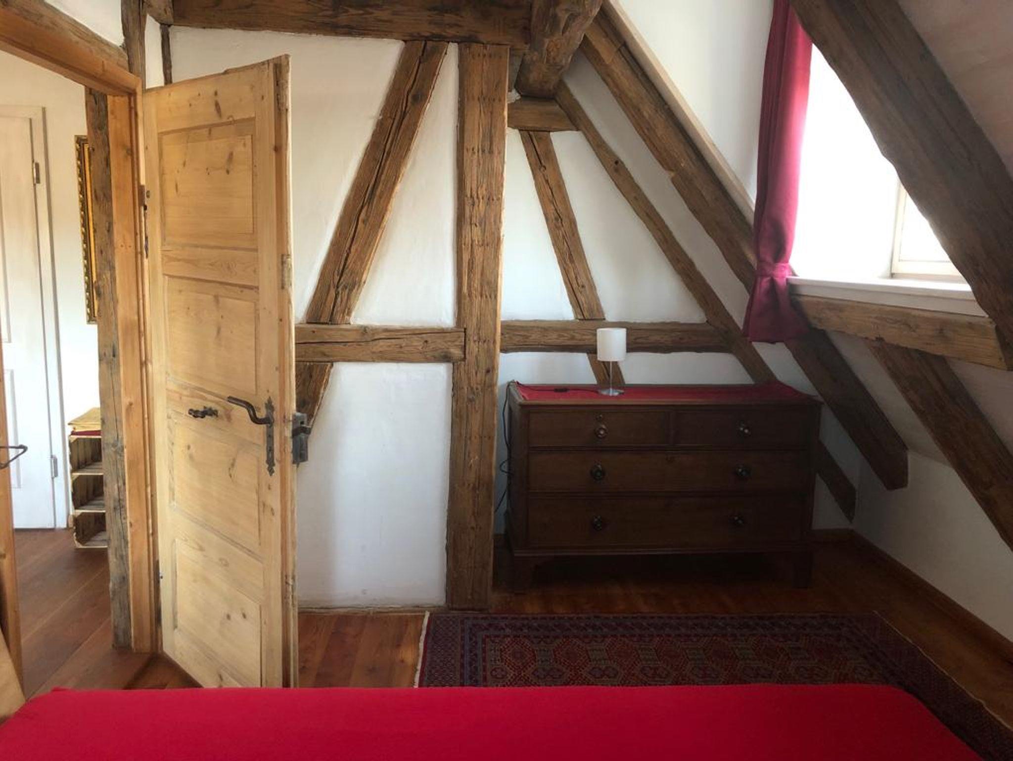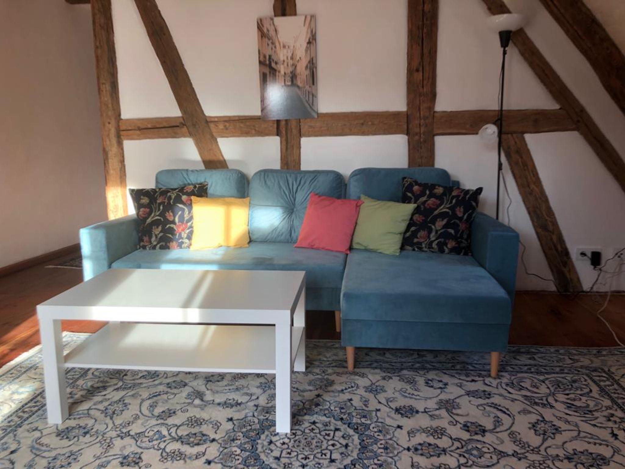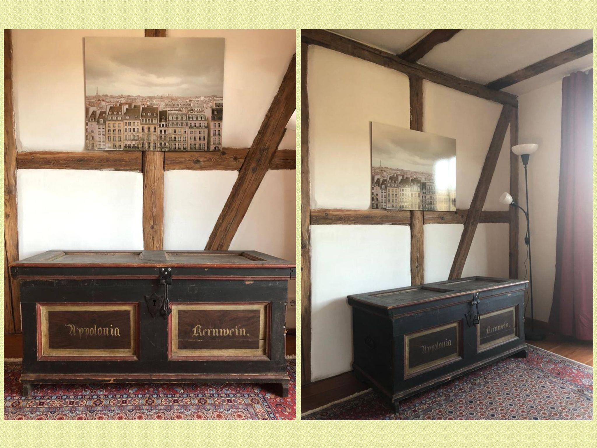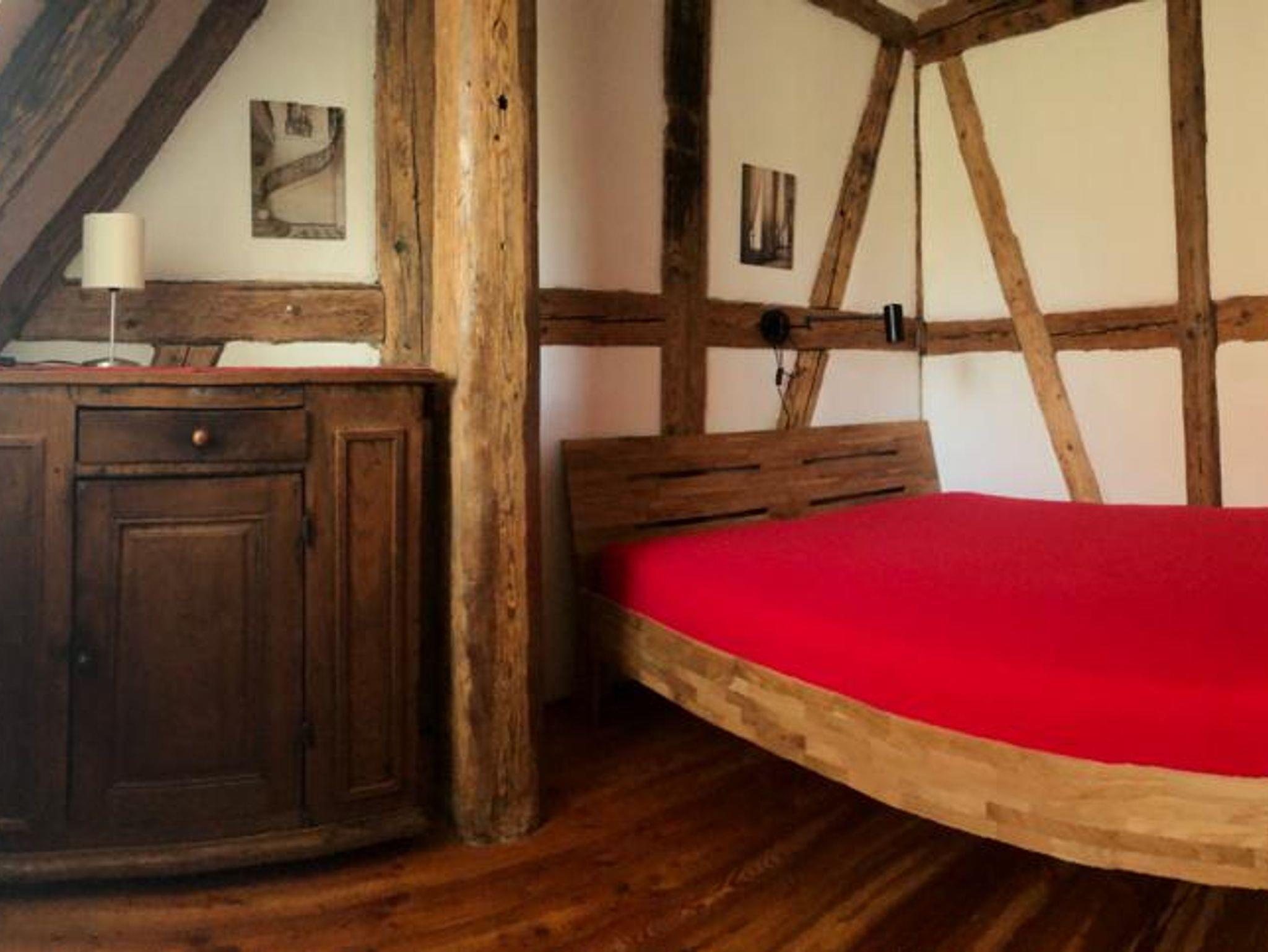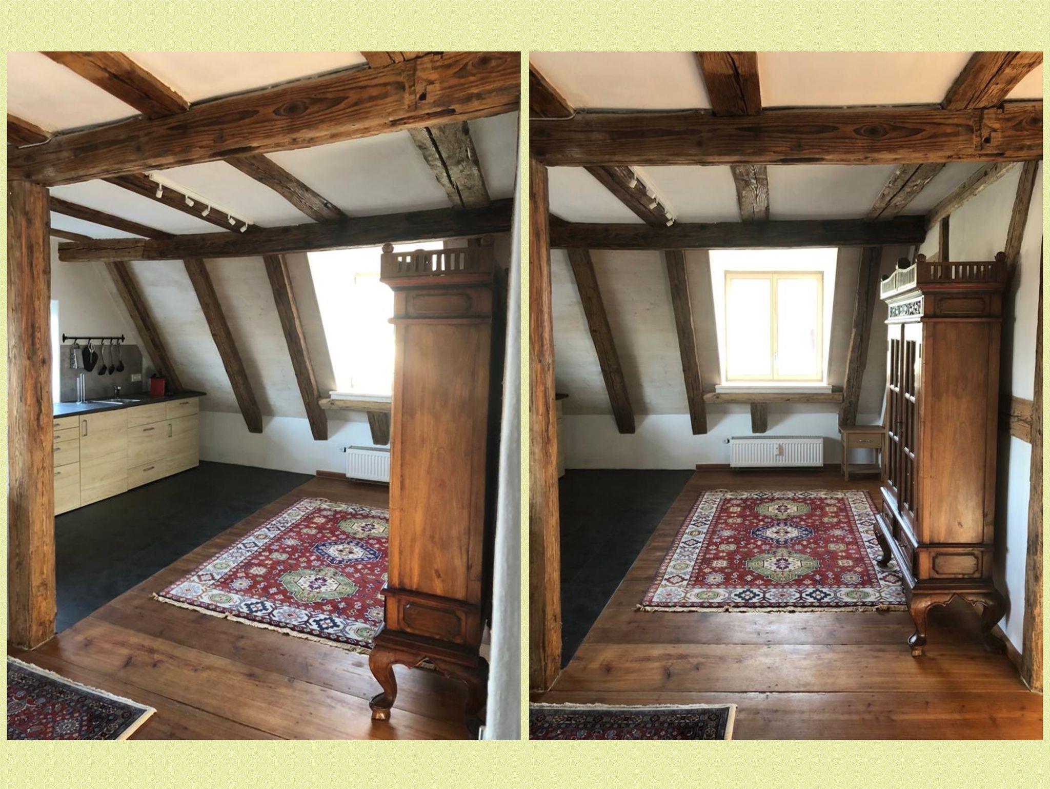 Ferienwohnung MAINIDYLLE: Wohnung im 2. OG (kein Fahrstuhl) mit Küche/Esszimmer, 2 Schlafzimmer, Wohnzimmer, Badezimmer mit Badewanne/Dusche. Balkon. Stilvoll und hochwertig eingerichtet. Offenes Fachwerk, Holzböden. Freies WLAN. Parkplatz. Gartensitzplatz mit Grill. Für max. 6 Personen + Kleinkind. Weitere Personen auf Anfrage (Matratze).