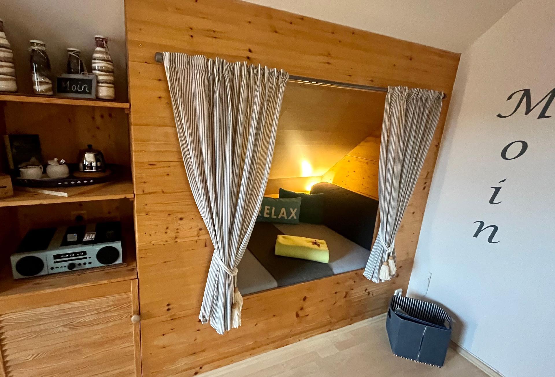 Die Wohnung: auf fast 70 qm finden Sie modern eingerichtete Behaglichkeit, die keine Wünsche offen lässt: Zum Beispiel eine große Wohnküche mit zwei traditionellen Butzenbetten.