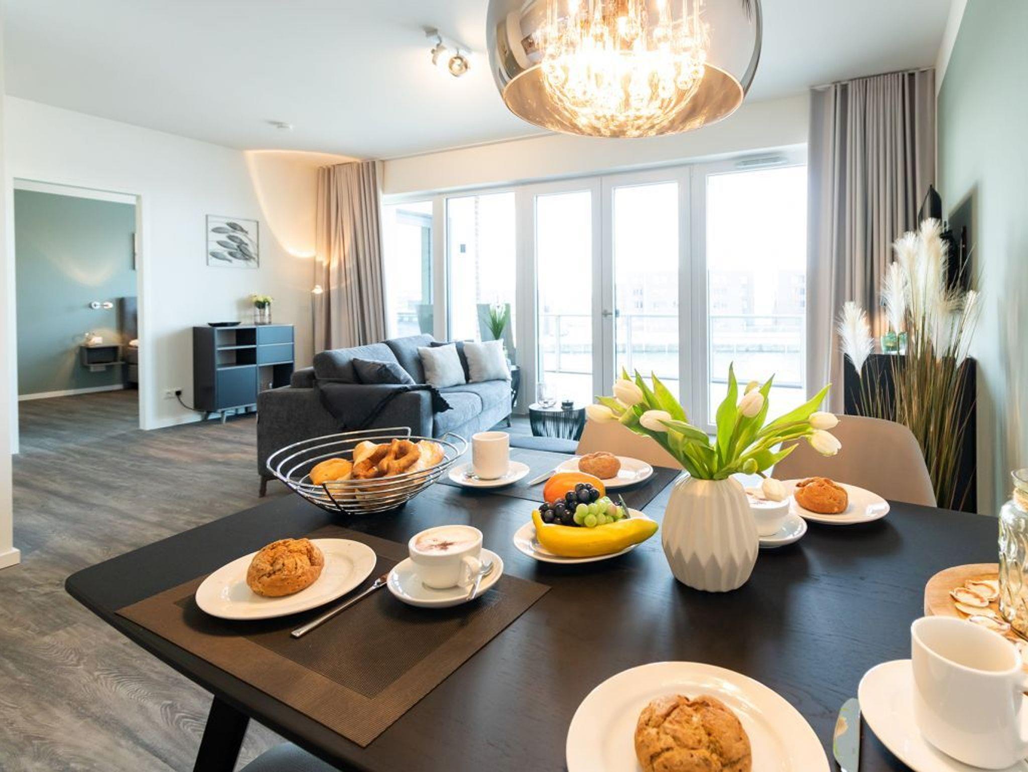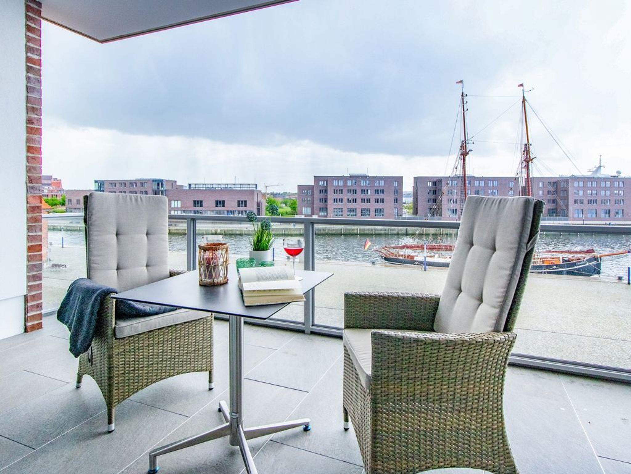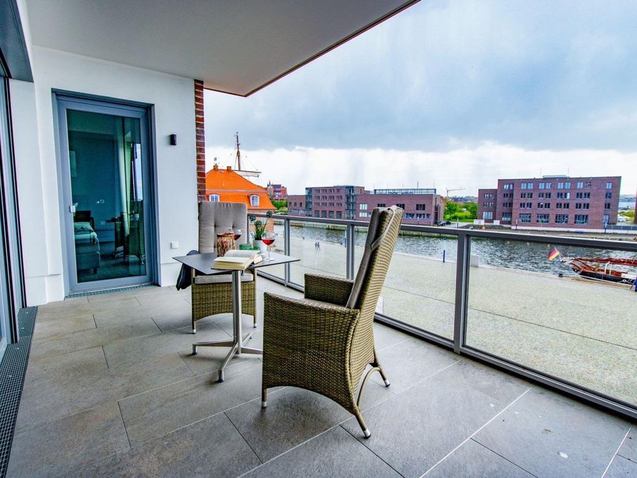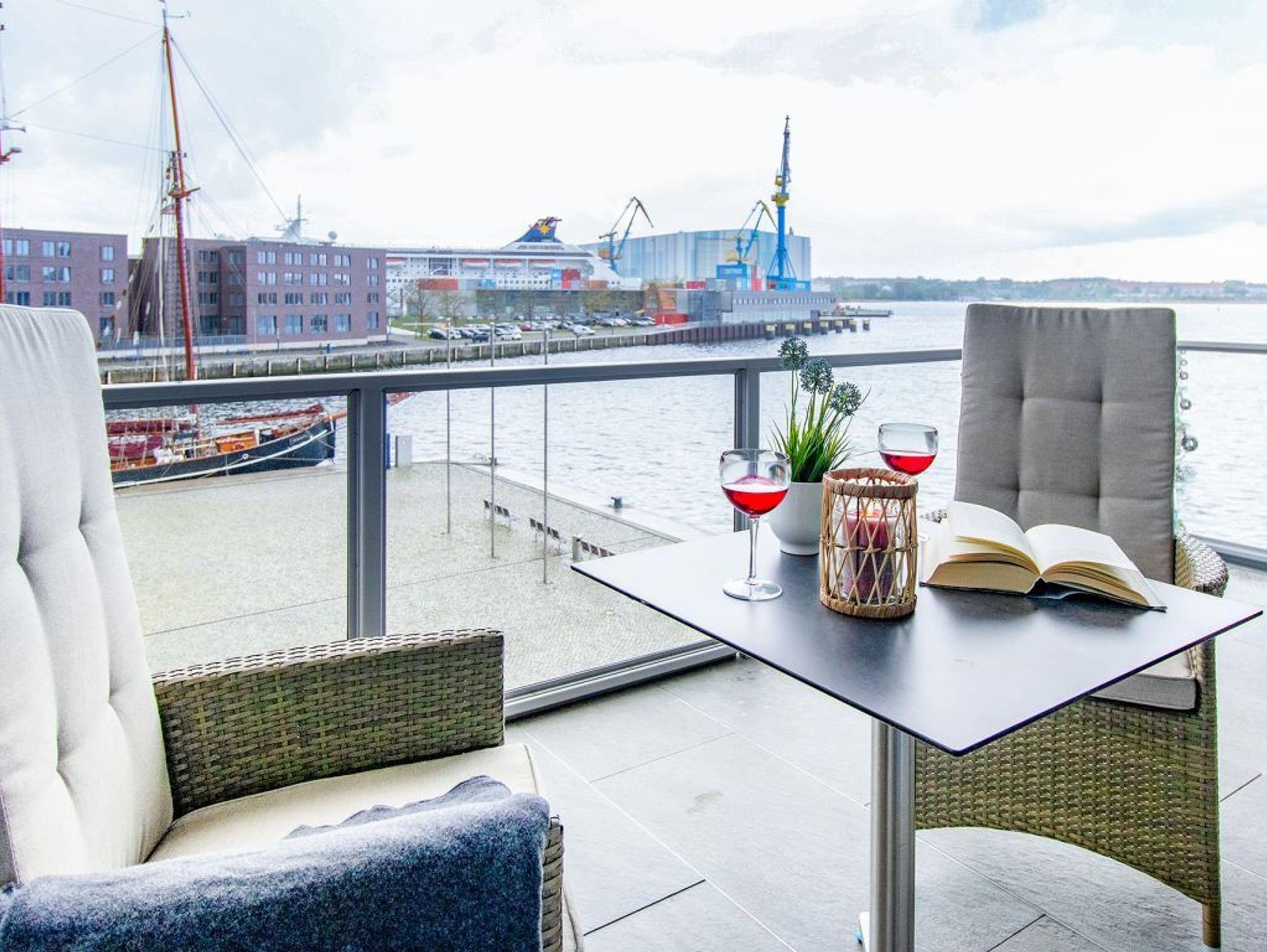 Luxuriöses 2-Zimmer-Appartement Hafenspitze 28 mit Hafenblick in Wismar, moderne Ausstattung und Balkon.
