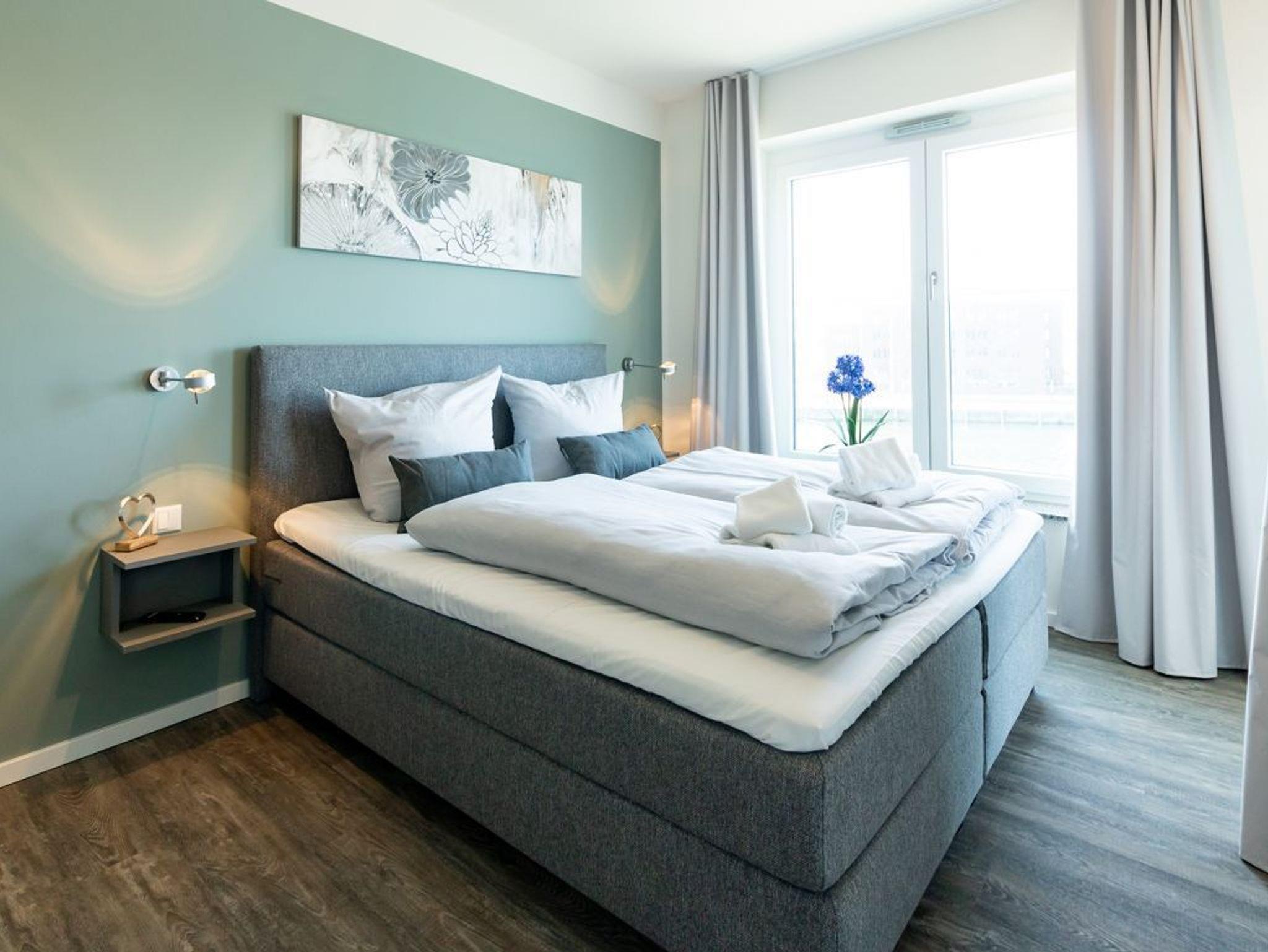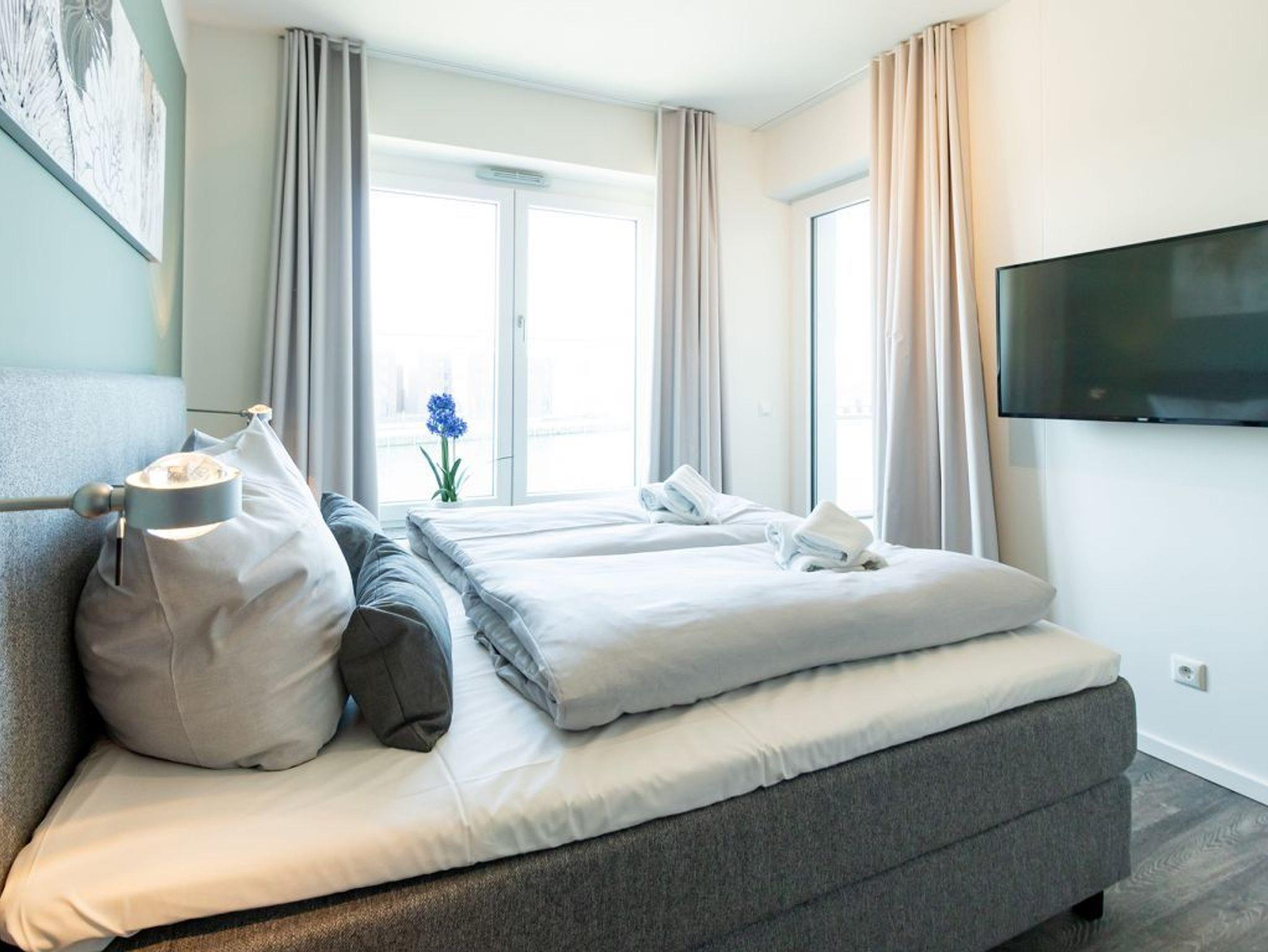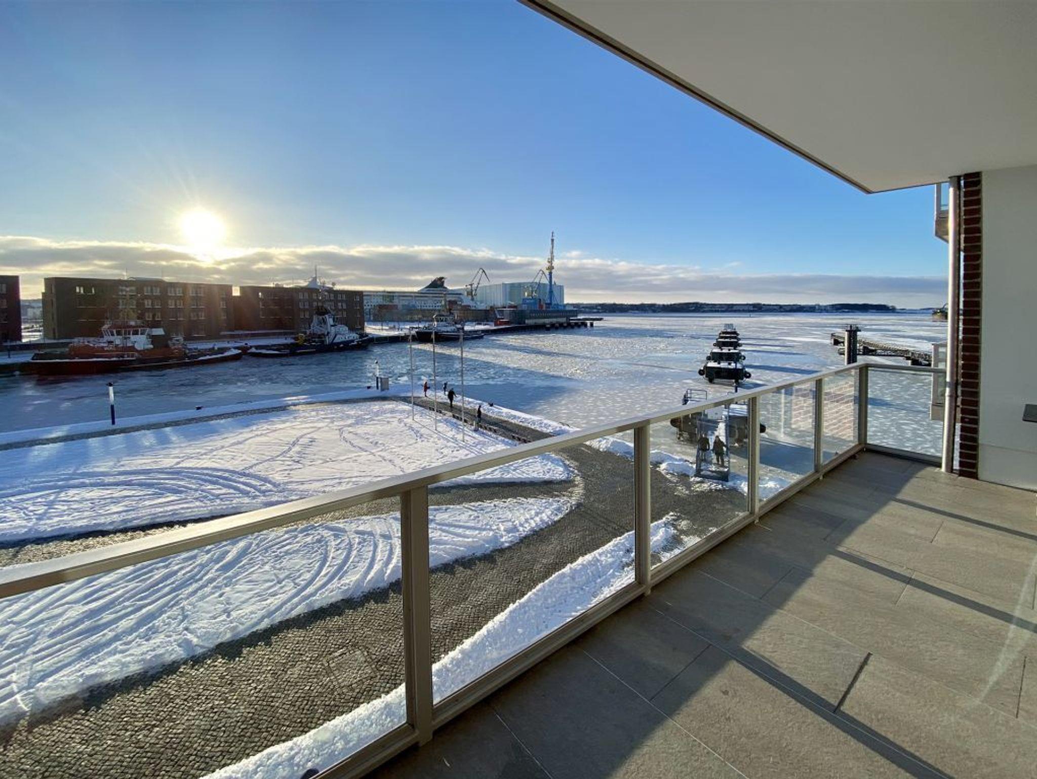 Luxuriöses 2-Zimmer-Appartement Hafenspitze 28 mit Hafenblick in Wismar, moderne Ausstattung und Balkon.
