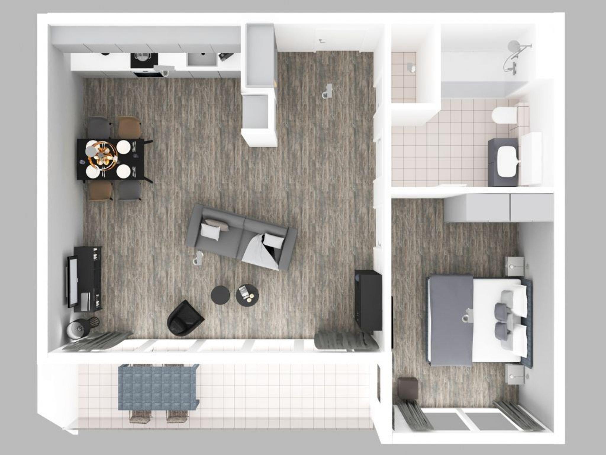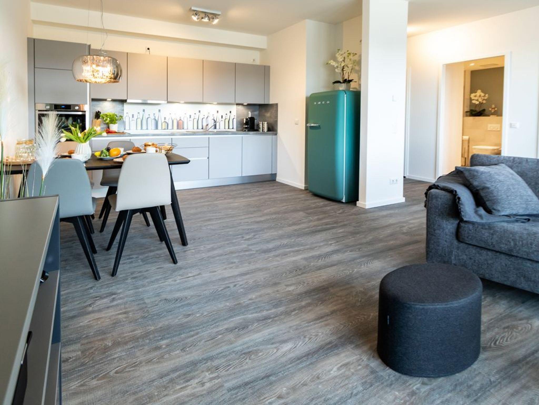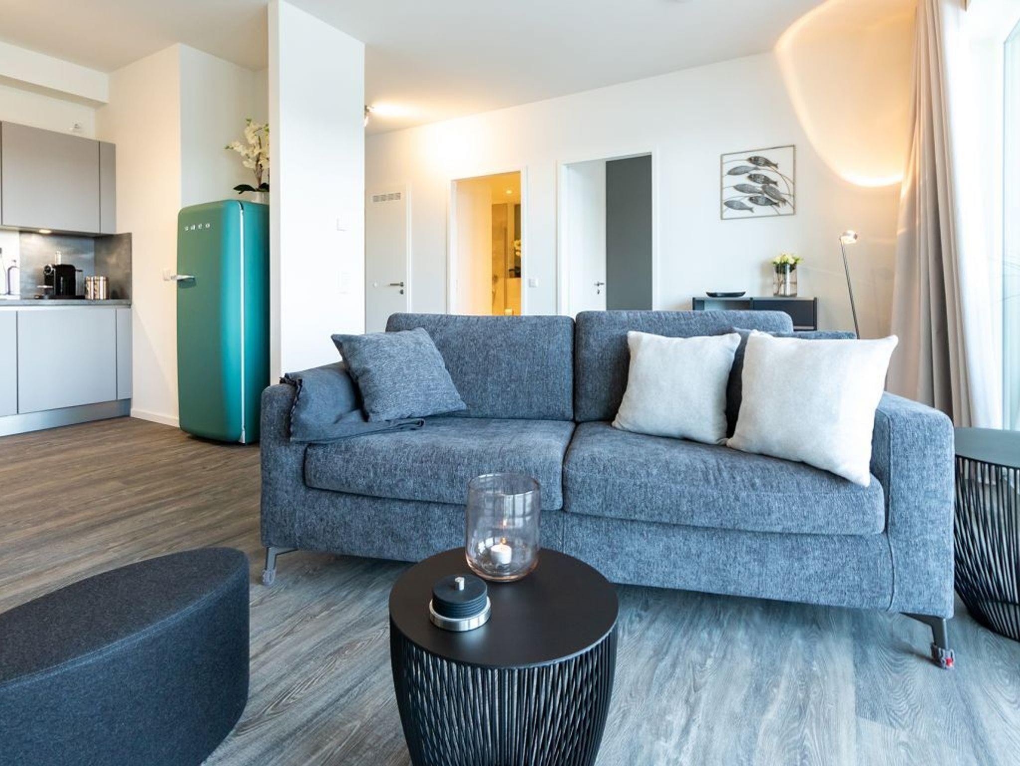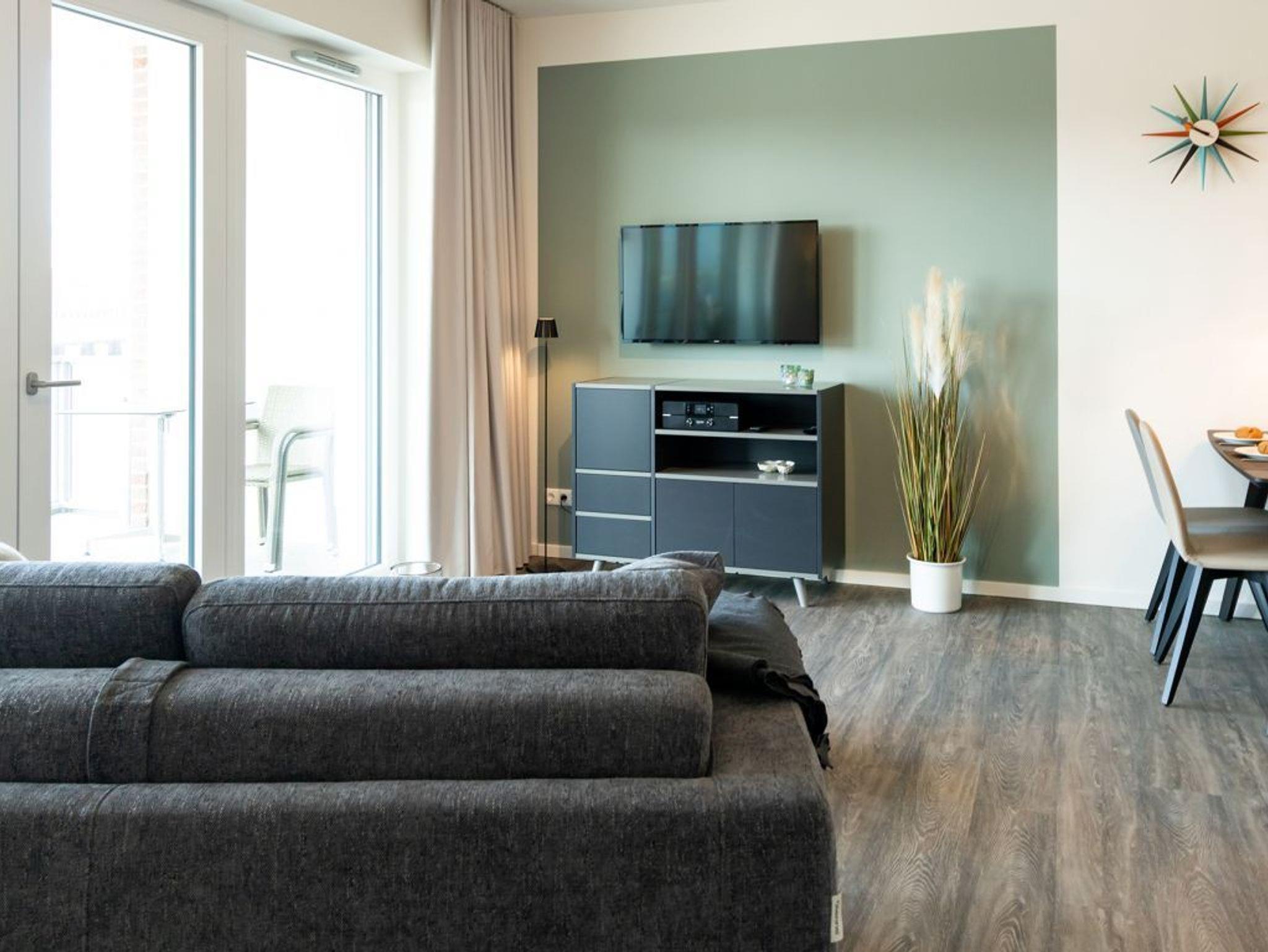 Luxuriöses 2-Zimmer-Appartement Hafenspitze 28 mit Hafenblick in Wismar, moderne Ausstattung und Balkon.