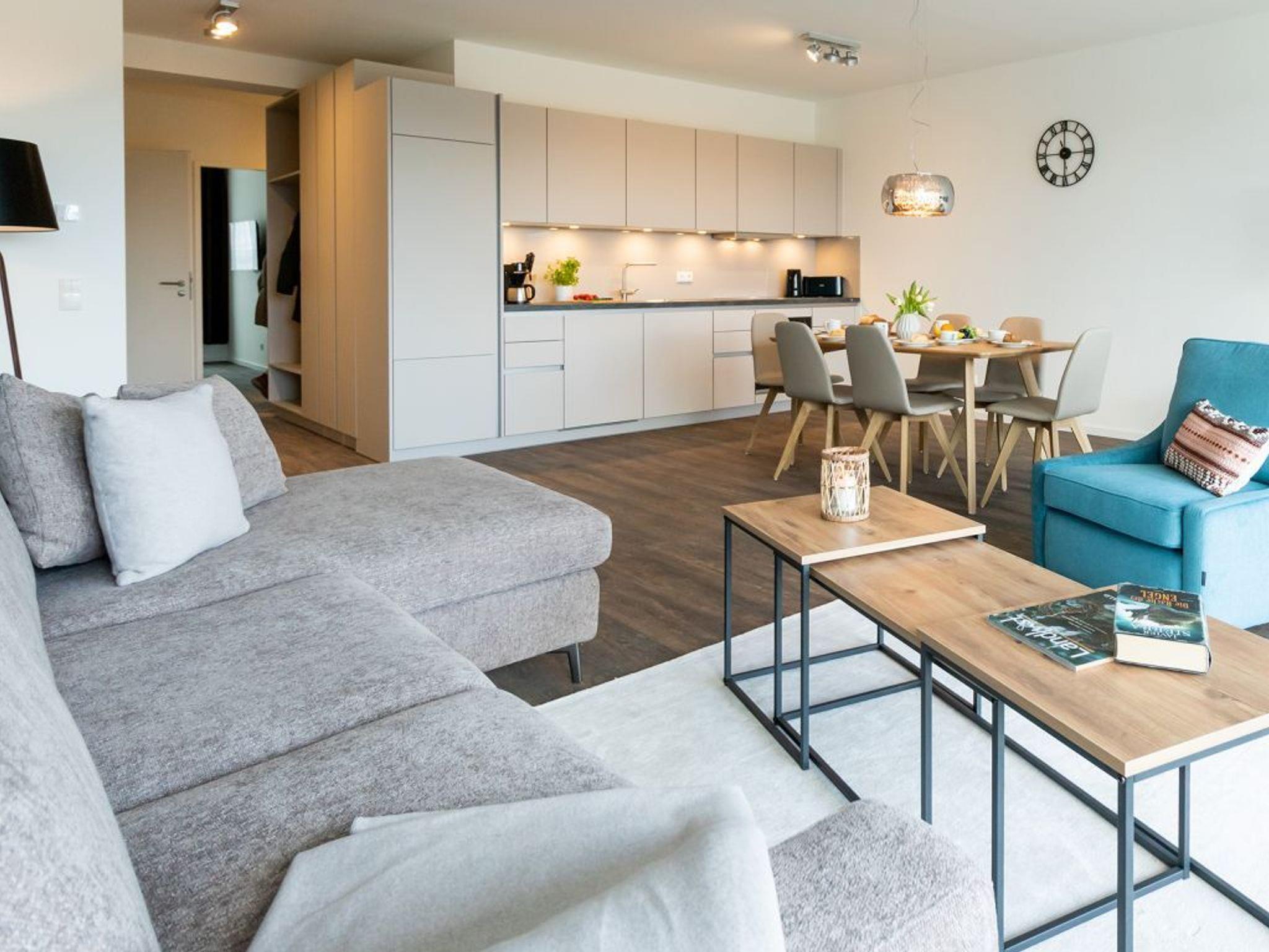 Das perfekte Urlaubsdomizil für unsere Gäste, die Wert auf großzügiges, luxuriöses Wohnen legen. Das 3-Zimmer-Appartement Hafenspitze 32 verwöhnt Sie mit einer Wohnfläche von 93qm. Eine Belegung ist mit bis zu 4 Personen möglich. Die Ferienwohnung besitzt zudem eine sonnige Loggia im Hafenblick, wobei elektrisch bedienbare Außenrollos für sommerlichen Wärmeschutz sorgen. Der einladende Wohn-Essbereich bietet eine komfortable Möblierung mit bequemer Sitzgarnitur und einem Esstisch.