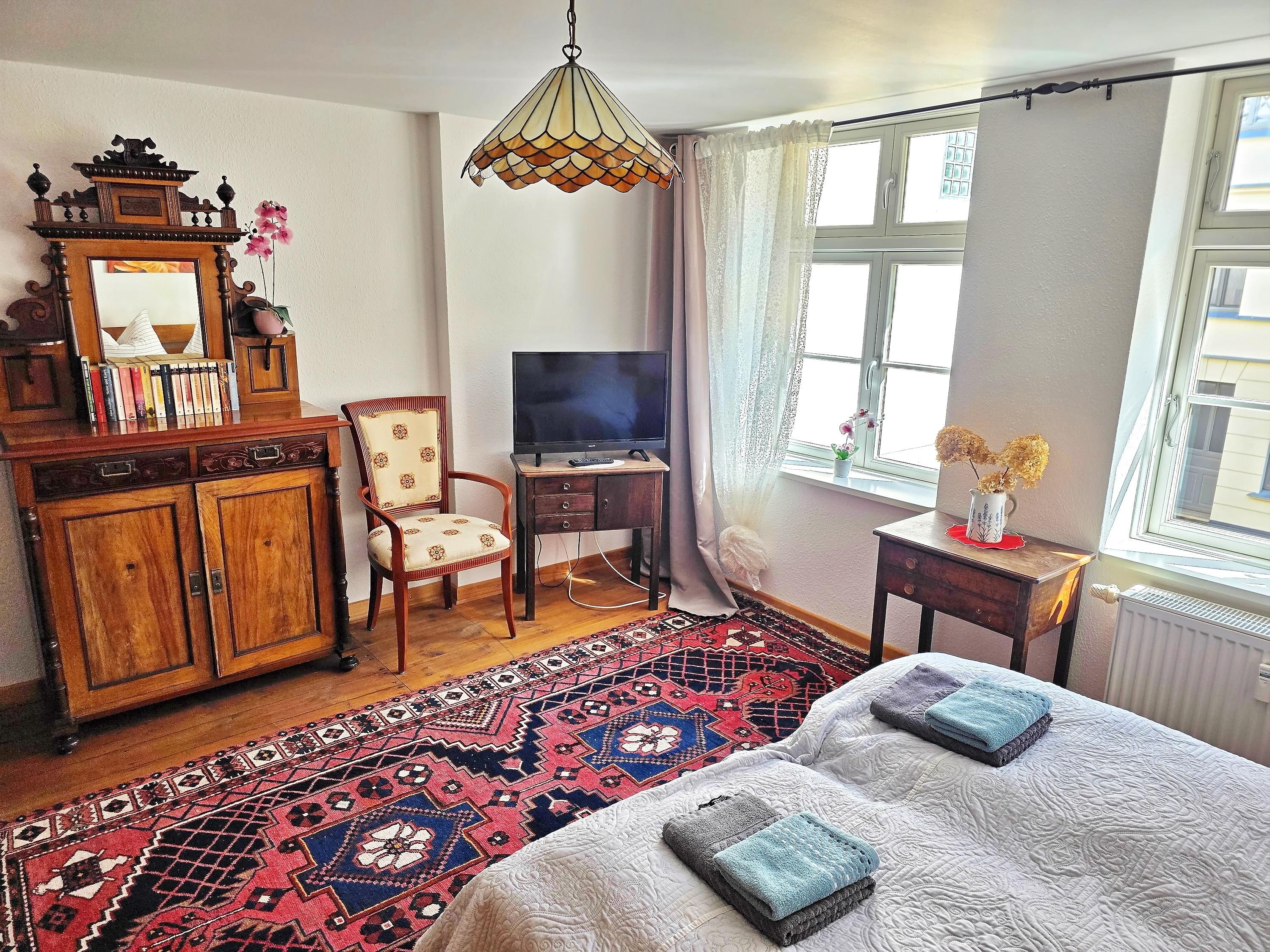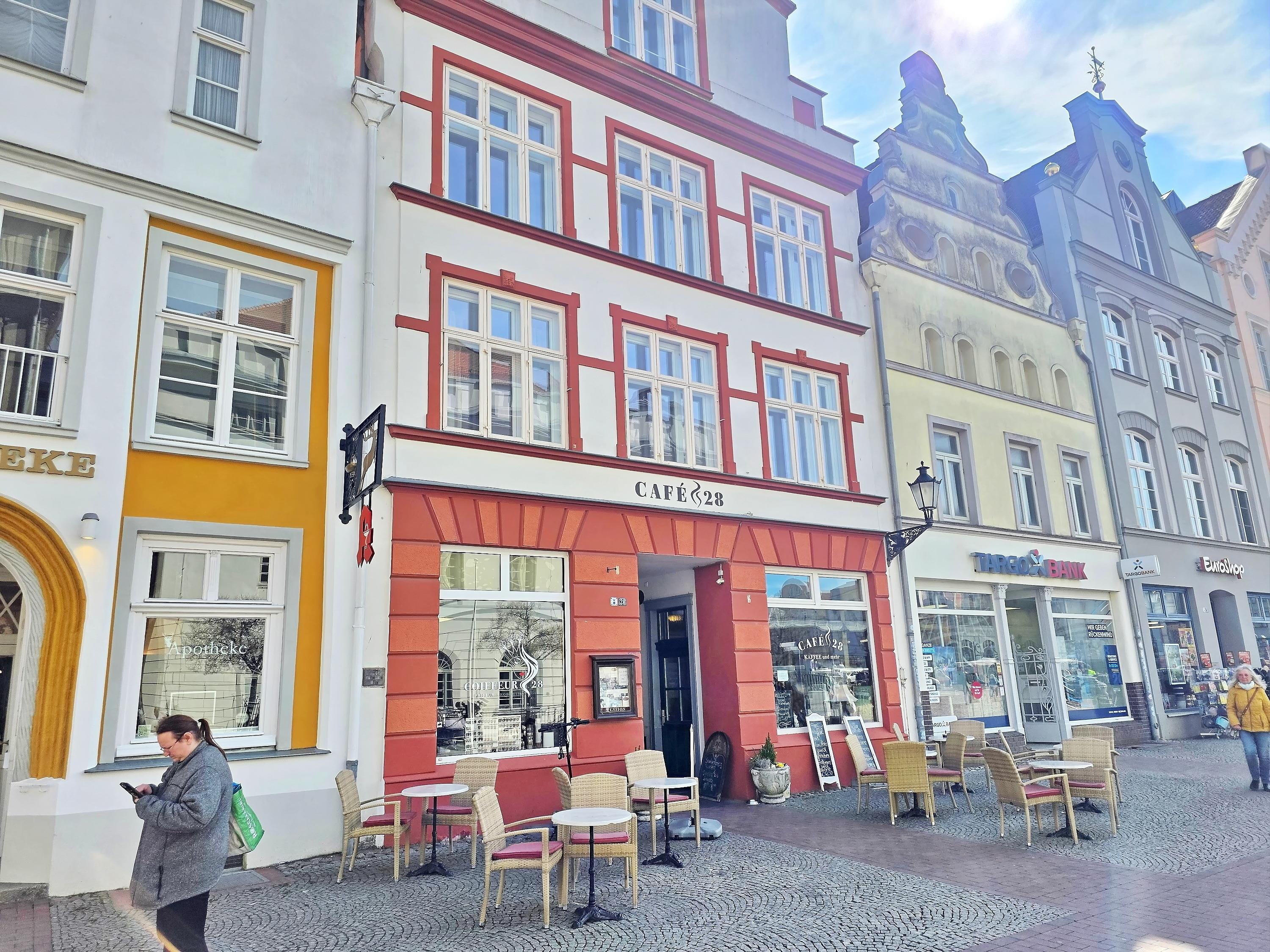Die ruhigen und hellen Appartements mit Blick auf den historischen Marktplatz bestehen aus zwei Zimmern. Beide Räume sind mit einem Doppelbett ausgestattet und können zusätzlich aufgebettet werden. Eine vollausgestattete Küche, viel Platz rund um den Esstisch und ein Blick auf die Wismarer Altstadt sorgen für eine wohlige Atmosphäre. Die Ferienwohnungen haben wir, wie auch das komplette Gebäude seit Sommer 2015 bis Frühjahr 2017, mit viel Liebe zum Detail komplett saniert und mit Antiquitäten ausgestattet. Viel Charme versprüht deshalb die erhaltene historische Bausubstanz bei natürlich technisch aktuellem Standard. Die Ferienwohnungen verfügen über ein Wannenbad, WLAN sowie Kabelfernsehen. Bitte beachten Sie, dass Sie die Ferienwohnungen nur über eine Treppe erreichen; die Wohnungen sind deshalb nicht für Rollstuhlfahrer geeignet. Die Schlüsselübergabe erfolgt nur bis 18 Uhr im Café 28! Der separate Eingang zur Pension befindet sich auf der Rückseite des Hauses in der Diebstraße. Gern servieren wir Ihnen Ihr Lieblingsfrühstück in unserem Café. Hier sind wir von 10:00 bis 18:00 Uhr bzw. nach Absprache auch abweichend davon für Sie da.