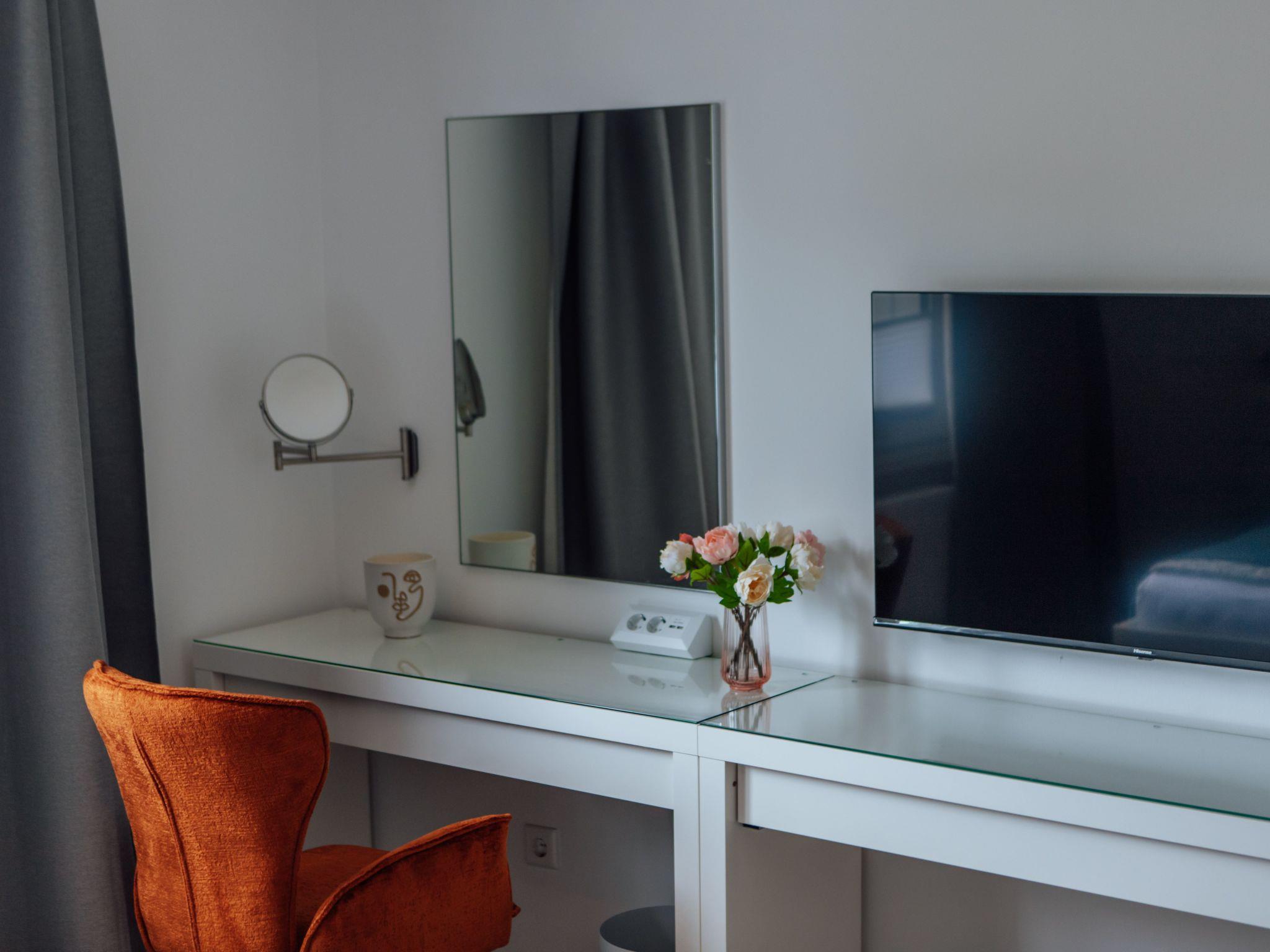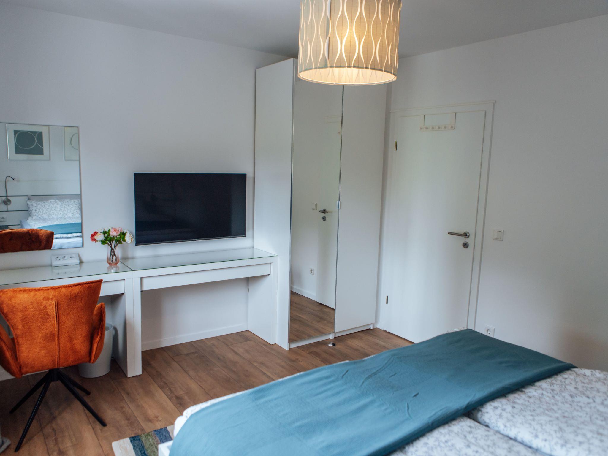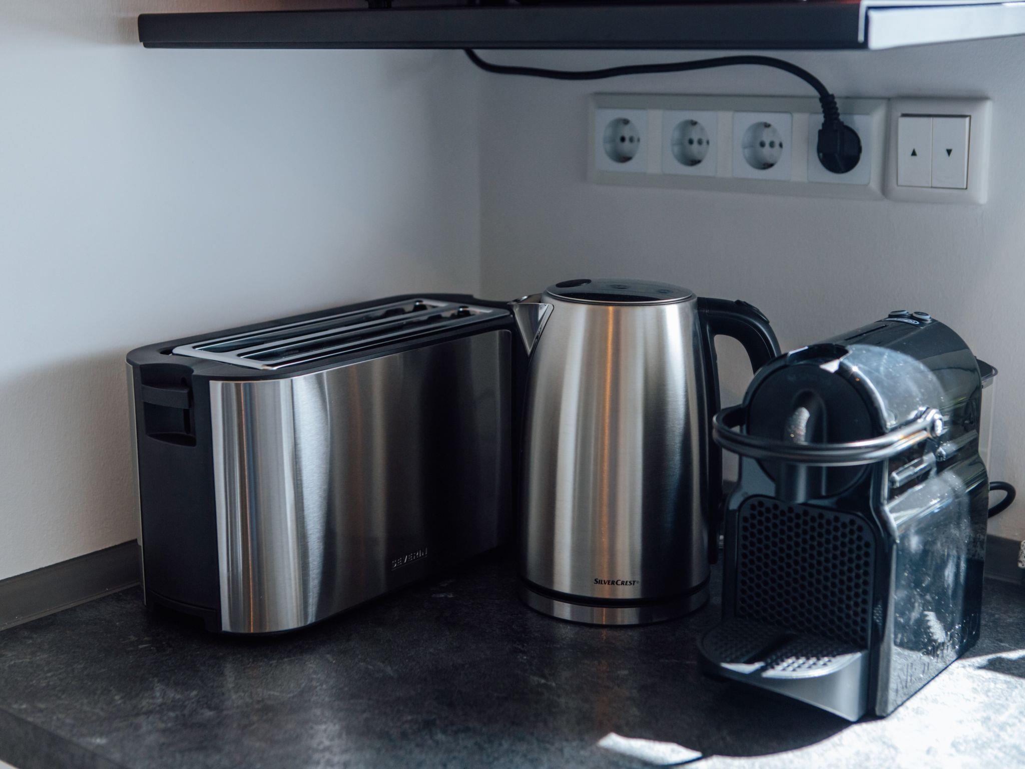 Im Inneren der Wohnung finden Sie eine sorgfältige Auswahl an Annehmlichkeiten, die Ihren Aufenthalt angenehm machen. Die zwei Schlafzimmer, die sich durch die Möglichkeit zur Abdunkelung auszeichnen, bieten die perfekte Voraussetzung für eine erholsame Nacht. Die Ausstattung umfasst weiterhin ein Badezimmer mit Dusche, ein Cerankochfeld und eine Spülmaschine in der Küchenzeile sowie einen Wasserkocher, der gemeinsame Momente bei einer Tasse Tee oder Kaffee verspricht.