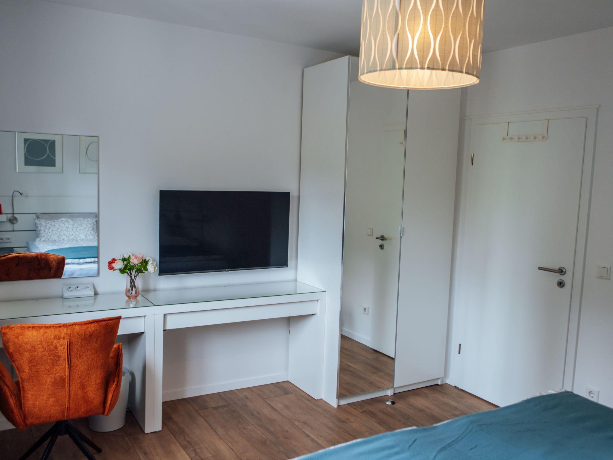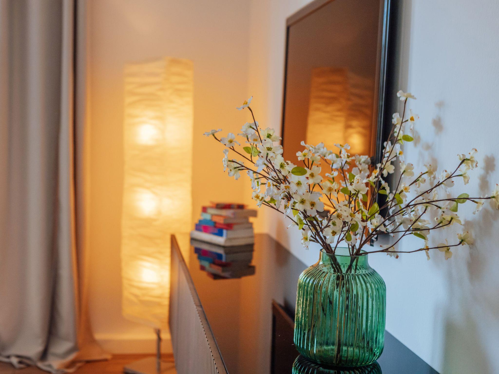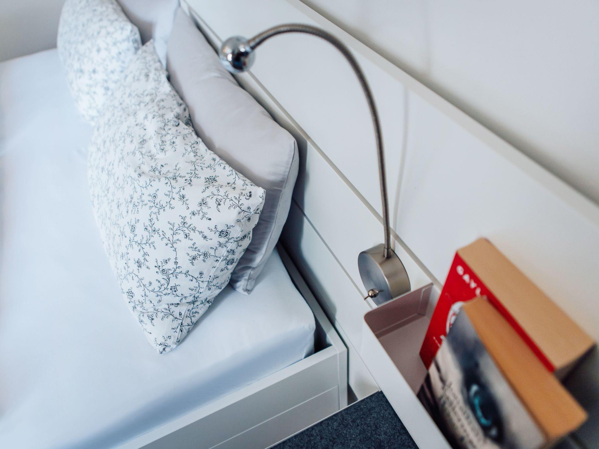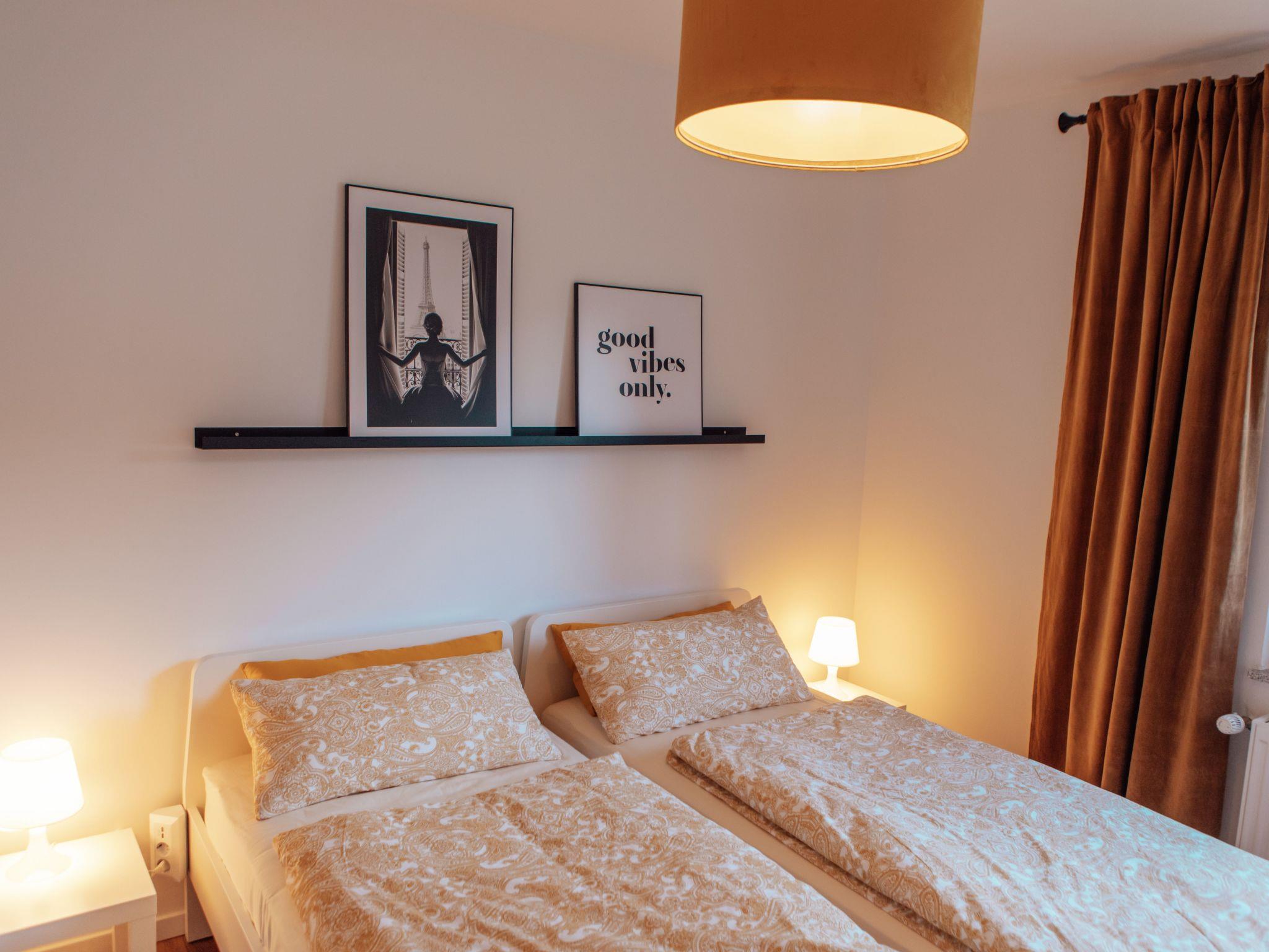 Im Inneren der Wohnung finden Sie eine sorgfältige Auswahl an Annehmlichkeiten, die Ihren Aufenthalt angenehm machen. Die zwei Schlafzimmer, die sich durch die Möglichkeit zur Abdunkelung auszeichnen, bieten die perfekte Voraussetzung für eine erholsame Nacht. Die Ausstattung umfasst weiterhin ein Badezimmer mit Dusche, ein Cerankochfeld und eine Spülmaschine in der Küchenzeile sowie einen Wasserkocher, der gemeinsame Momente bei einer Tasse Tee oder Kaffee verspricht.