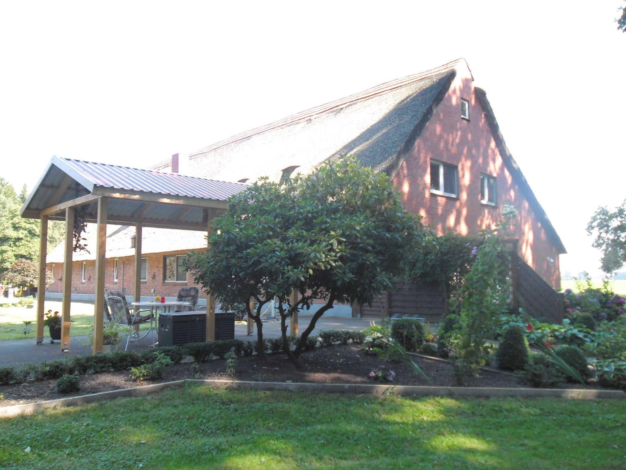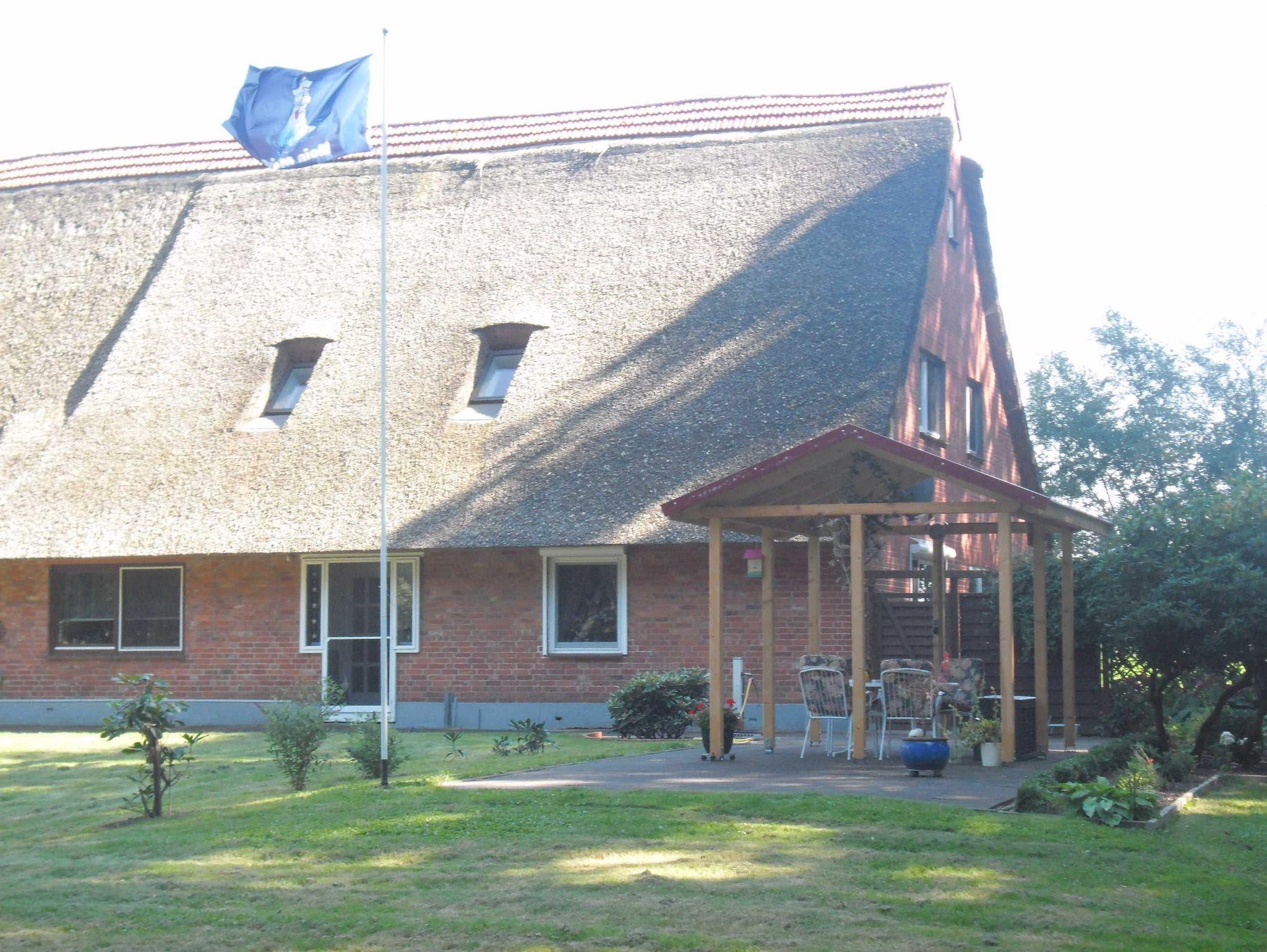 Sie verbringen Ihren Urlaub in einem reetgedeckten Resthof, idyllisch gelegen inmitten eines großen und gepflegten Naturgrundstücks, umgeben von über 100 Jahre alten Eichen.
