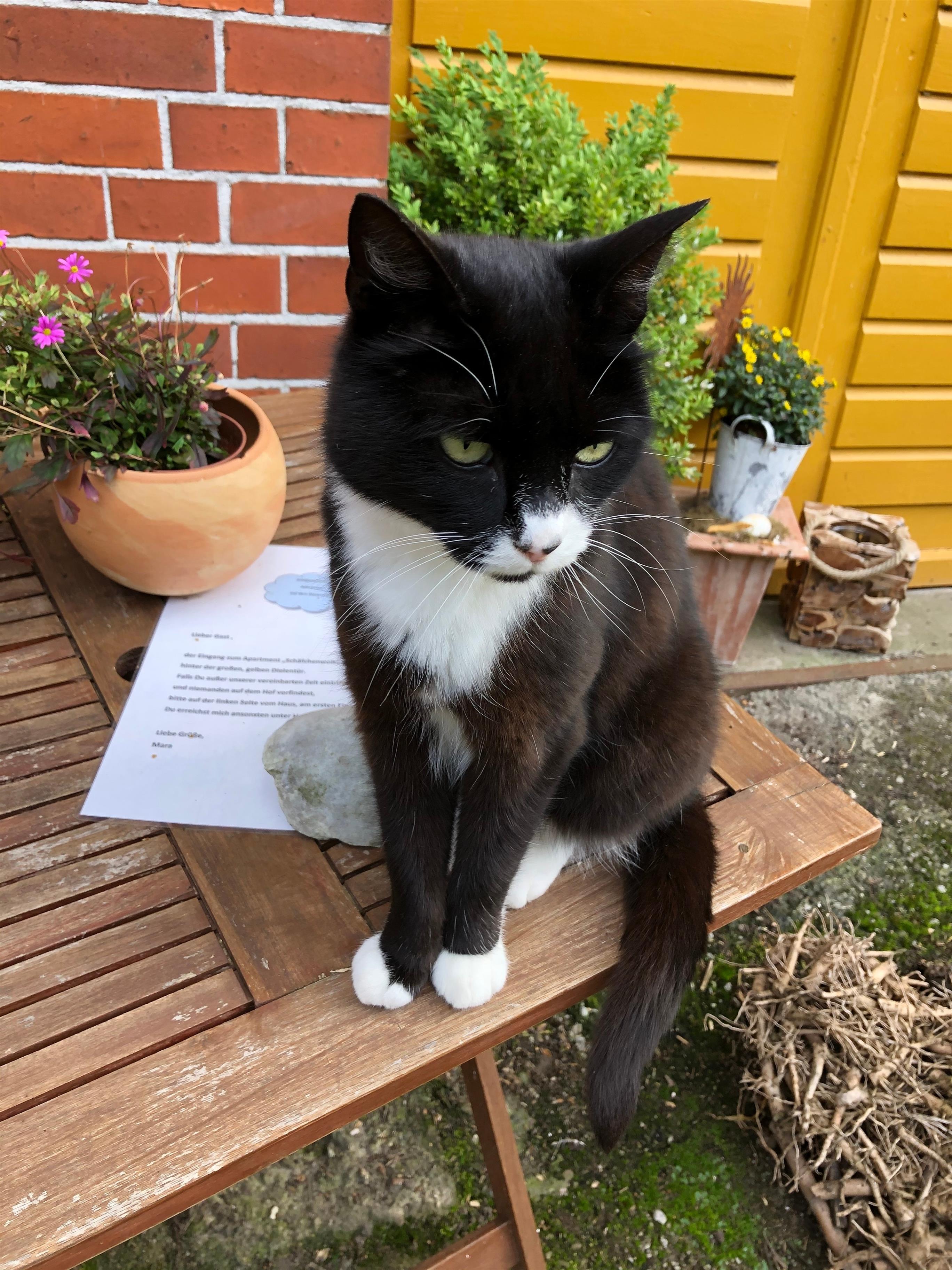 Wir leben auf dem Hof Schafen, einer Ziege, Katzen und unserem Hund Elli.