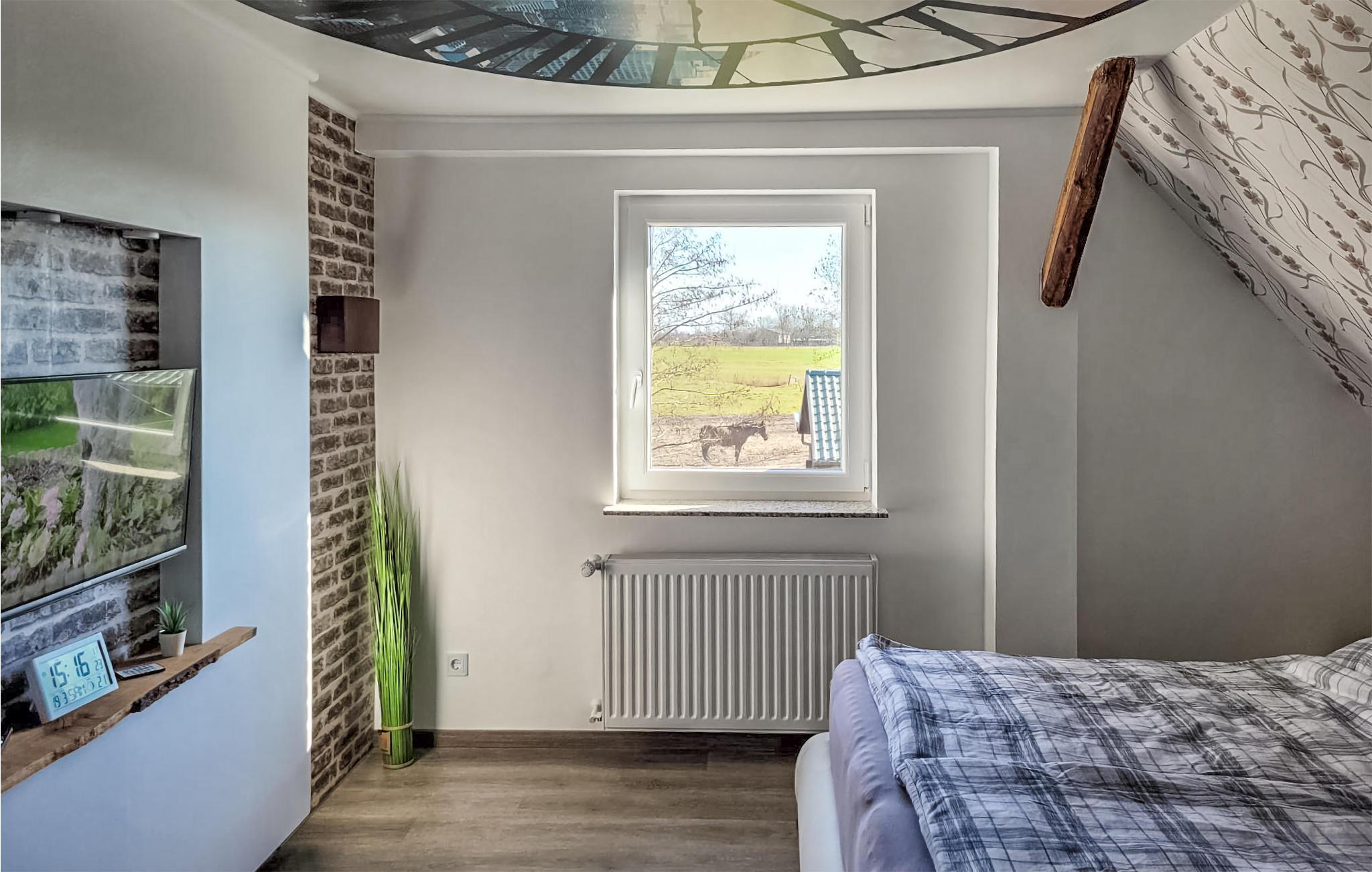 Die schöne Unterkunft besticht durch sein modernes Ambiente mit gut durchdachter Raumaufteilung über zwei durch eine steile Treppe verbundenen Etagen. Die sichtbaren alten Holzbalken in der Decke verleihen der Wohnung einen schönen alten Touch. Nach kurzer Fahrt – ob mit Auto oder Fahrrad – erreichen Sie den Ort Dorum, wo Sie nahezu alle Versorgungseinrichtungen vorfinden.