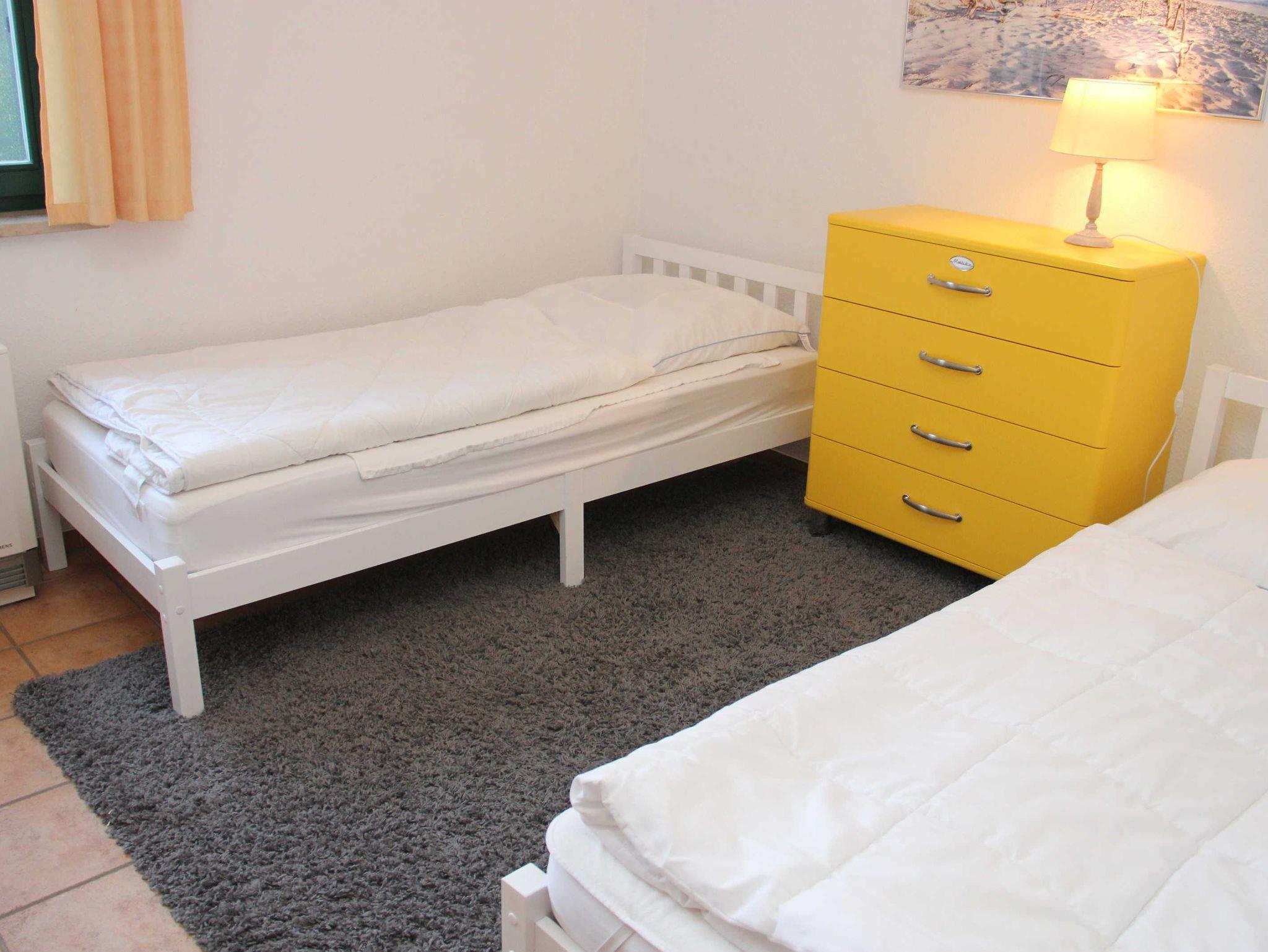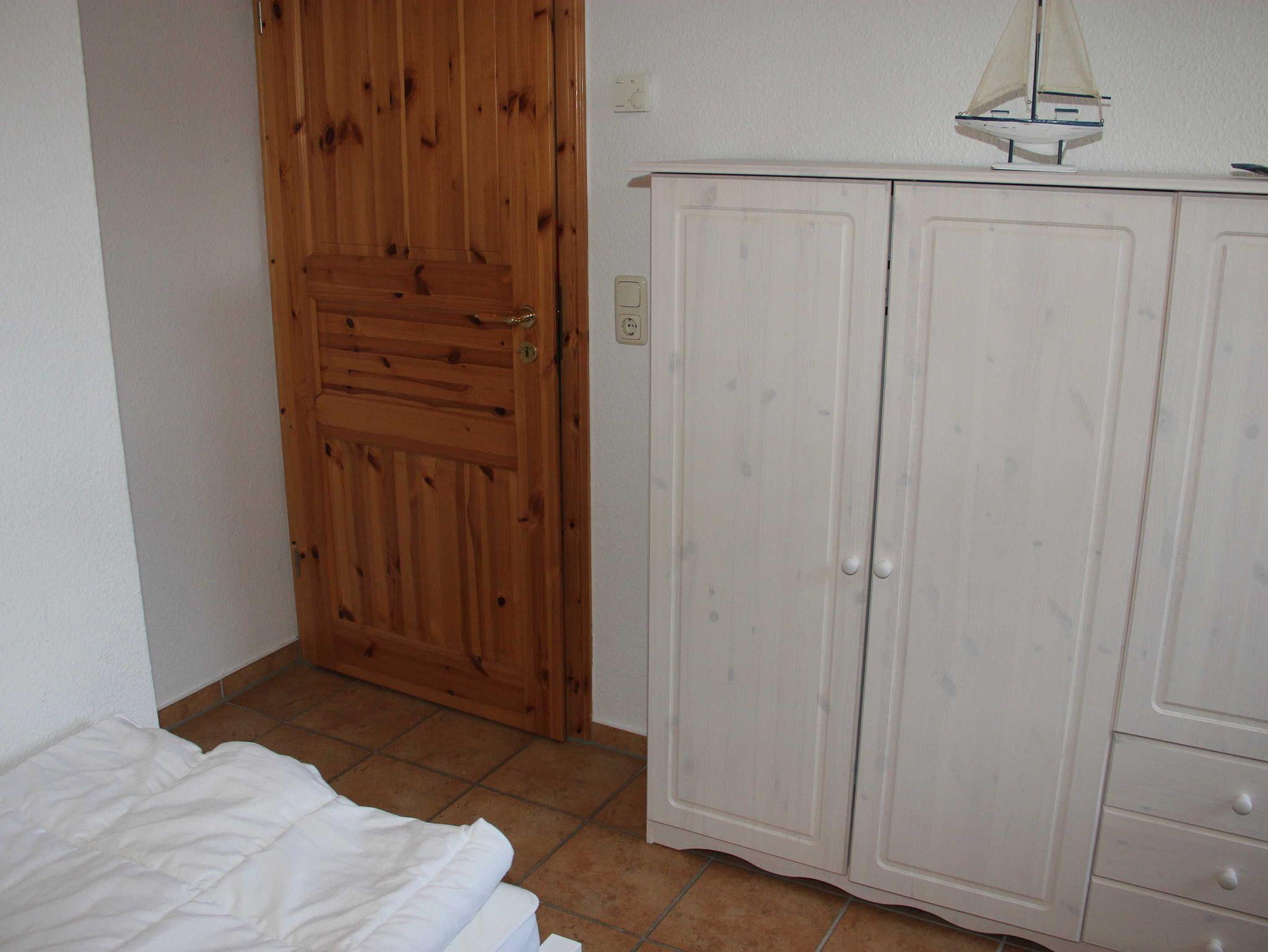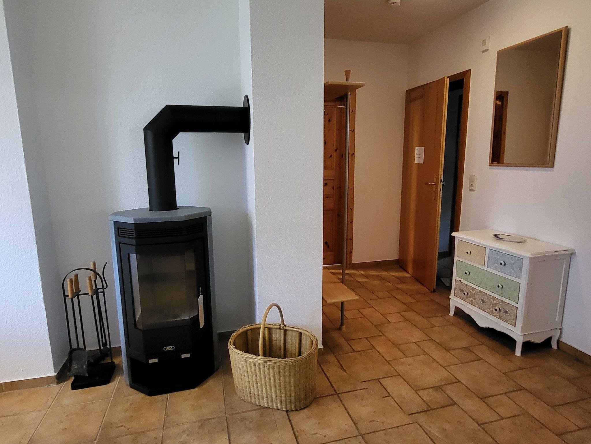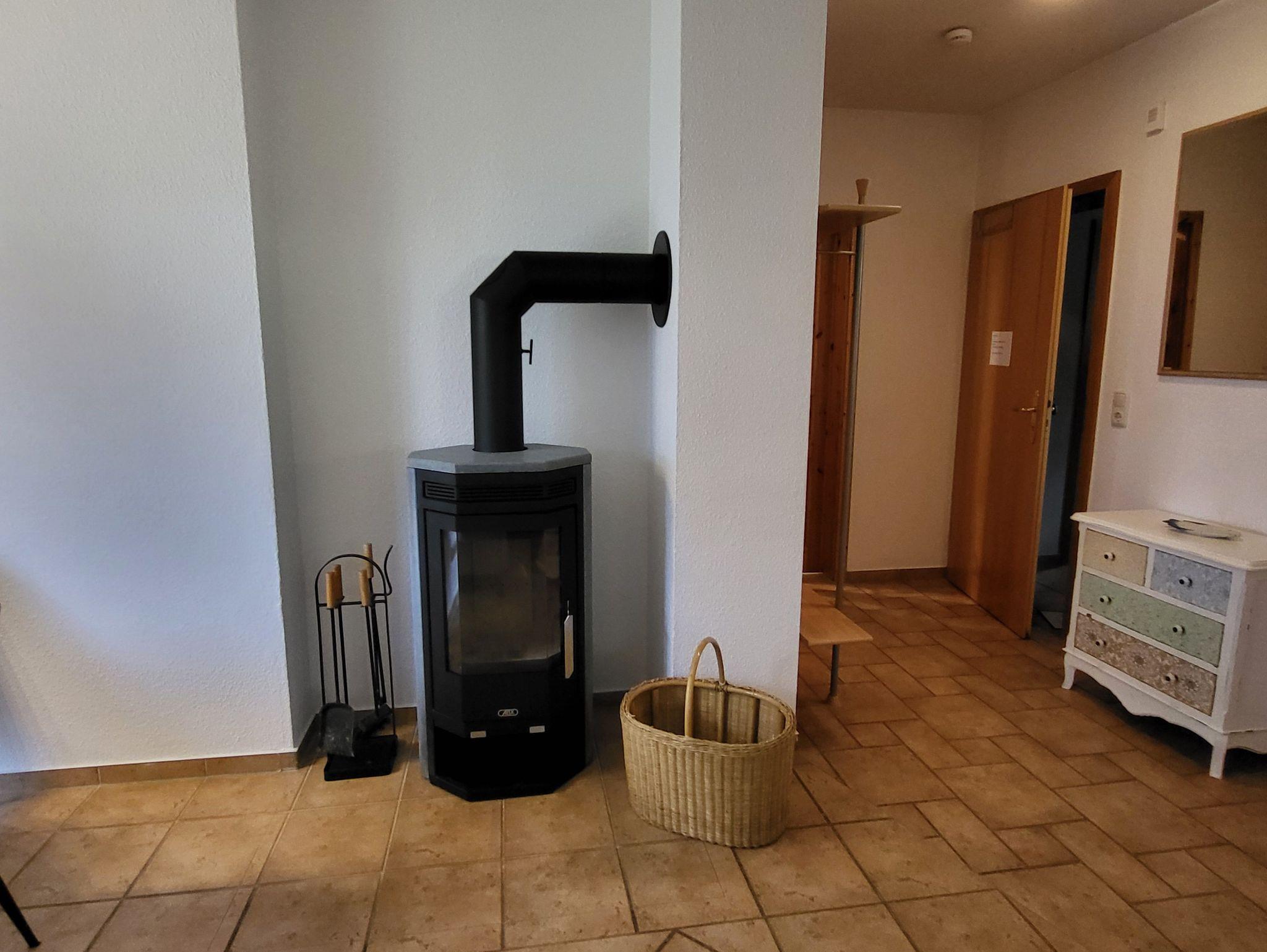Das Wohnzimmer hat einen Kamin, das Kaminholz ist von den Gästen mitzubringen. Alle Wohnungen sind Nichtraucherwohnungen. In der offenen Küchenzeile befinden sich ein Backofen und Geschirrspüler, sowie umfangreiche Küchenutensilien. Für unsere kleinen Gäste können Sie Kinderreisebett und Kinderhochstuhl à 10,00 € /pro Woche dazubuchen. Für die nächtliche Ruhe stehen Ihnen 1 Schlafzimmern mit einem Doppelbett 1,80 x 2,00 m (getrennte Matratze) und ein Schlafzimmer mit 2 Einzelbetten (0,90 x 2,00 m) zur Verfügung, die Bettwäsche und Handtücher können bei der Zimmervermittlung dazu gebucht werden - ein Paket 19,50 € (1 Badetuch, 1 Handtuch, 1 Kopfkissen, 1 Bezug und 1 Spannbettlaken). Ein WLAN Gästezugang steht Ihnen während Ihres Aufenthaltes zur Verfügung. Zum gemütlichen Verweilen lädt die Terrasse mit Gartenmöbel ein. Ein Parkplatz befindet sich auf dem Grundstück.Haustiere sind herzlich willkommen. Den Kamin bitte nur mit Wasser und Asche reinigen.