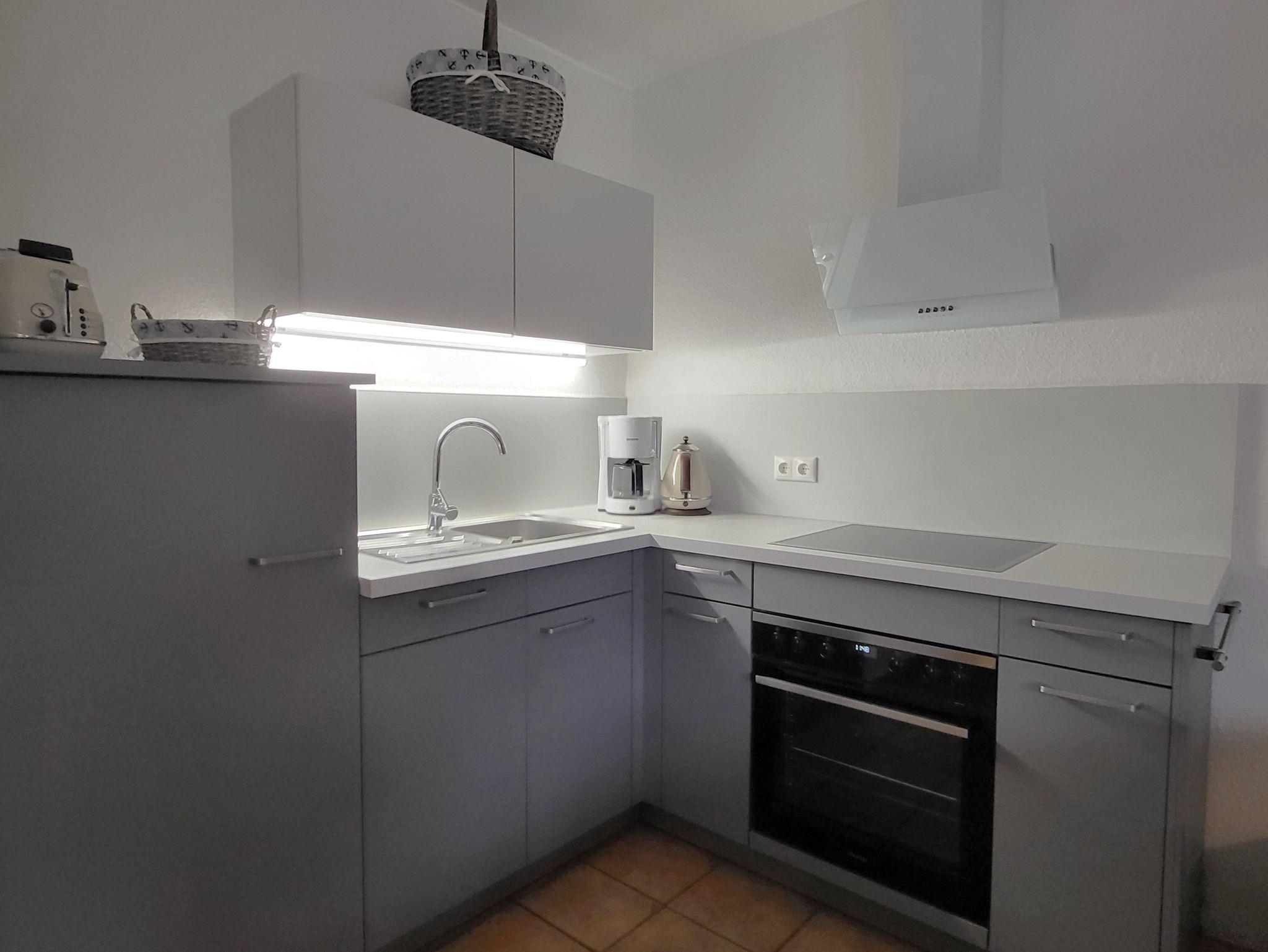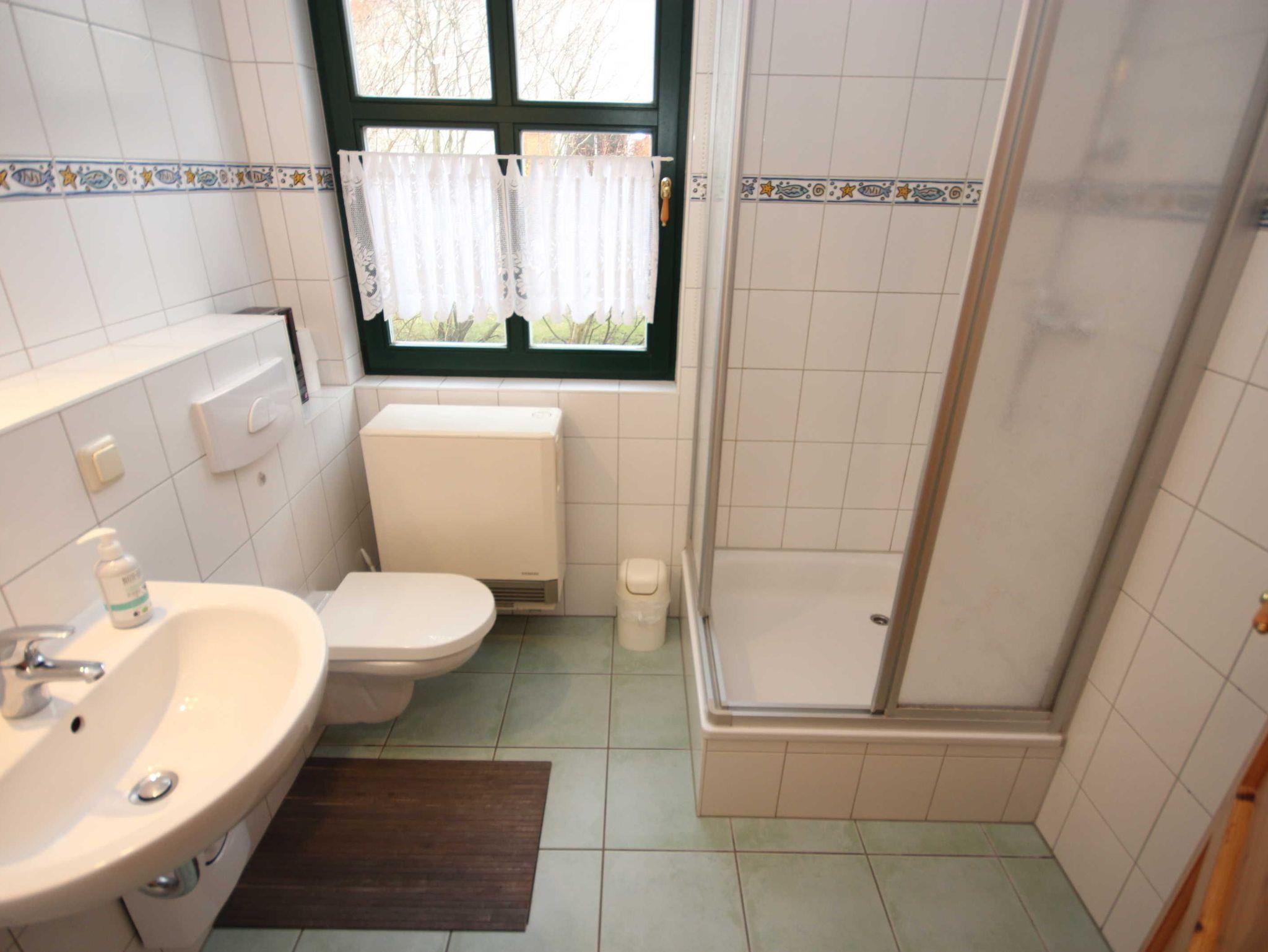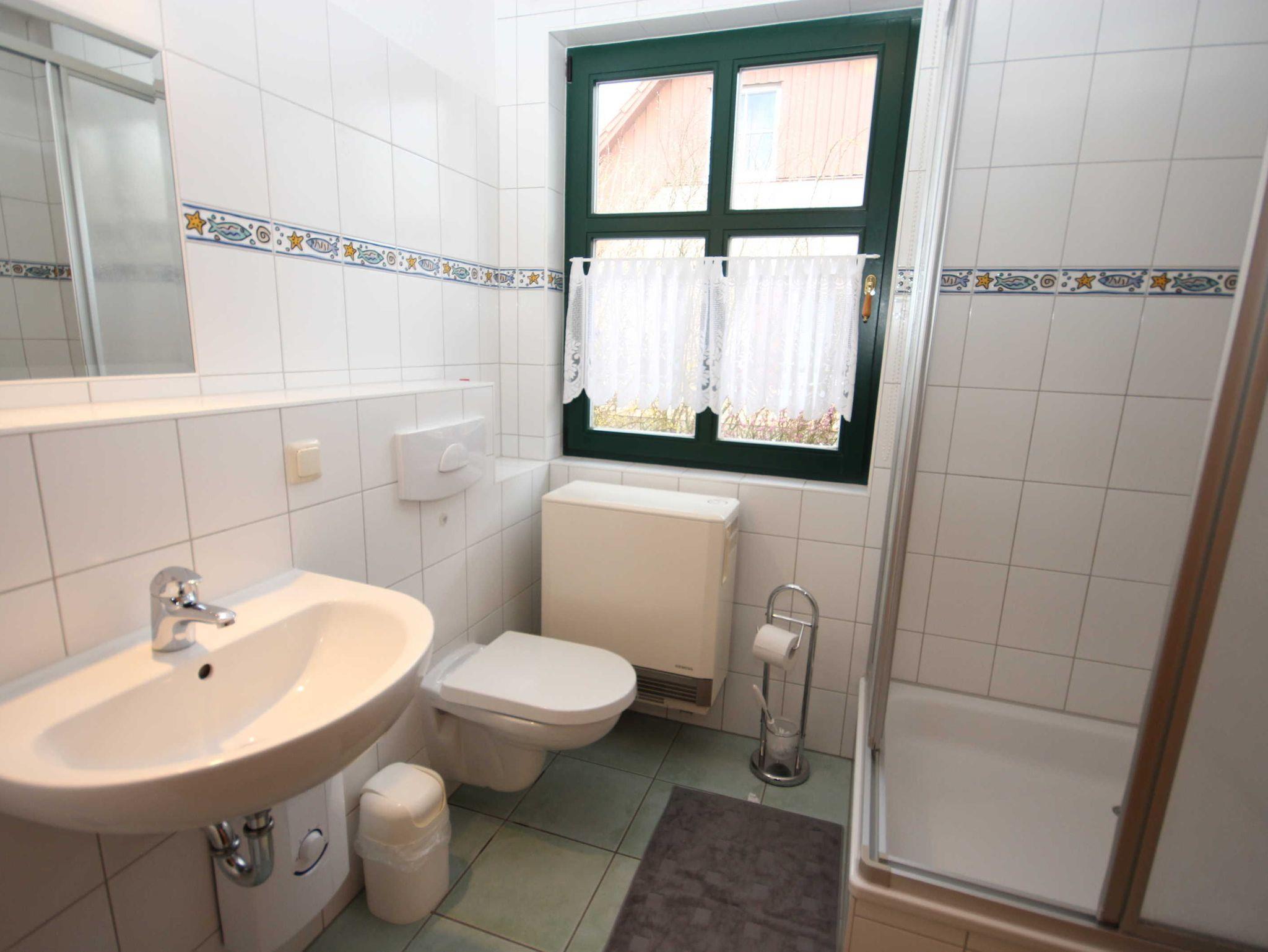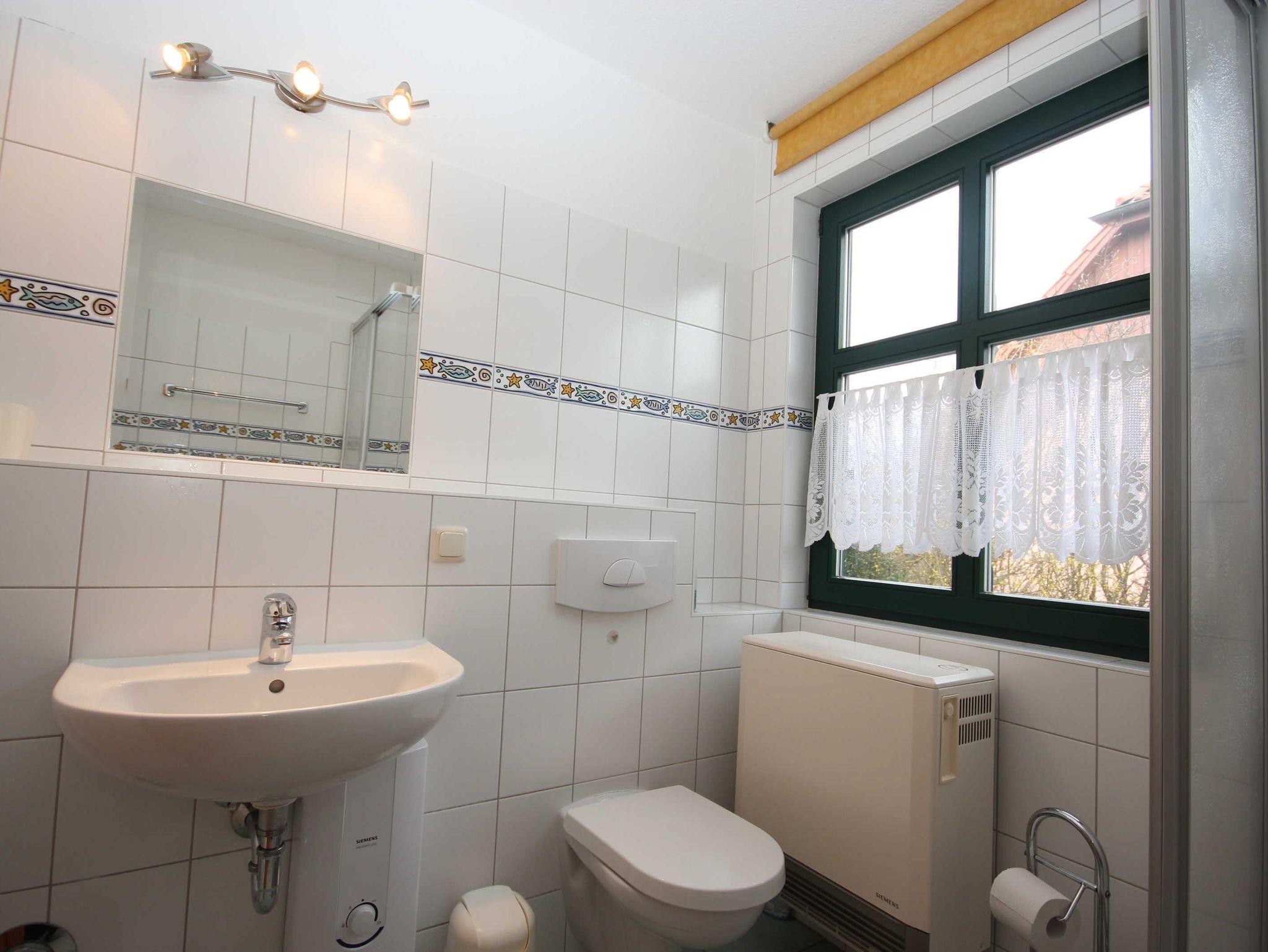 Das Wohnzimmer hat einen Kamin, das Kaminholz ist von den Gästen mitzubringen. Alle Wohnungen sind Nichtraucherwohnungen. In der offenen Küchenzeile befinden sich ein Backofen und Geschirrspüler, sowie umfangreiche Küchenutensilien. Für unsere kleinen Gäste können Sie Kinderreisebett und Kinderhochstuhl à 10,00 € /pro Woche dazubuchen. Für die nächtliche Ruhe stehen Ihnen 1 Schlafzimmern mit einem Doppelbett 1,80 x 2,00 m (getrennte Matratze) und ein Schlafzimmer mit 2 Einzelbetten (0,90 x 2,00 m) zur Verfügung, die Bettwäsche und Handtücher können bei der Zimmervermittlung dazu gebucht werden - ein Paket 19,50 € (1 Badetuch, 1 Handtuch, 1 Kopfkissen, 1 Bezug und 1 Spannbettlaken). Ein WLAN Gästezugang steht Ihnen während Ihres Aufenthaltes zur Verfügung. Zum gemütlichen Verweilen lädt die Terrasse mit Gartenmöbel ein. Ein Parkplatz befindet sich auf dem Grundstück.Haustiere sind herzlich willkommen. Den Kamin bitte nur mit Wasser und Asche reinigen.