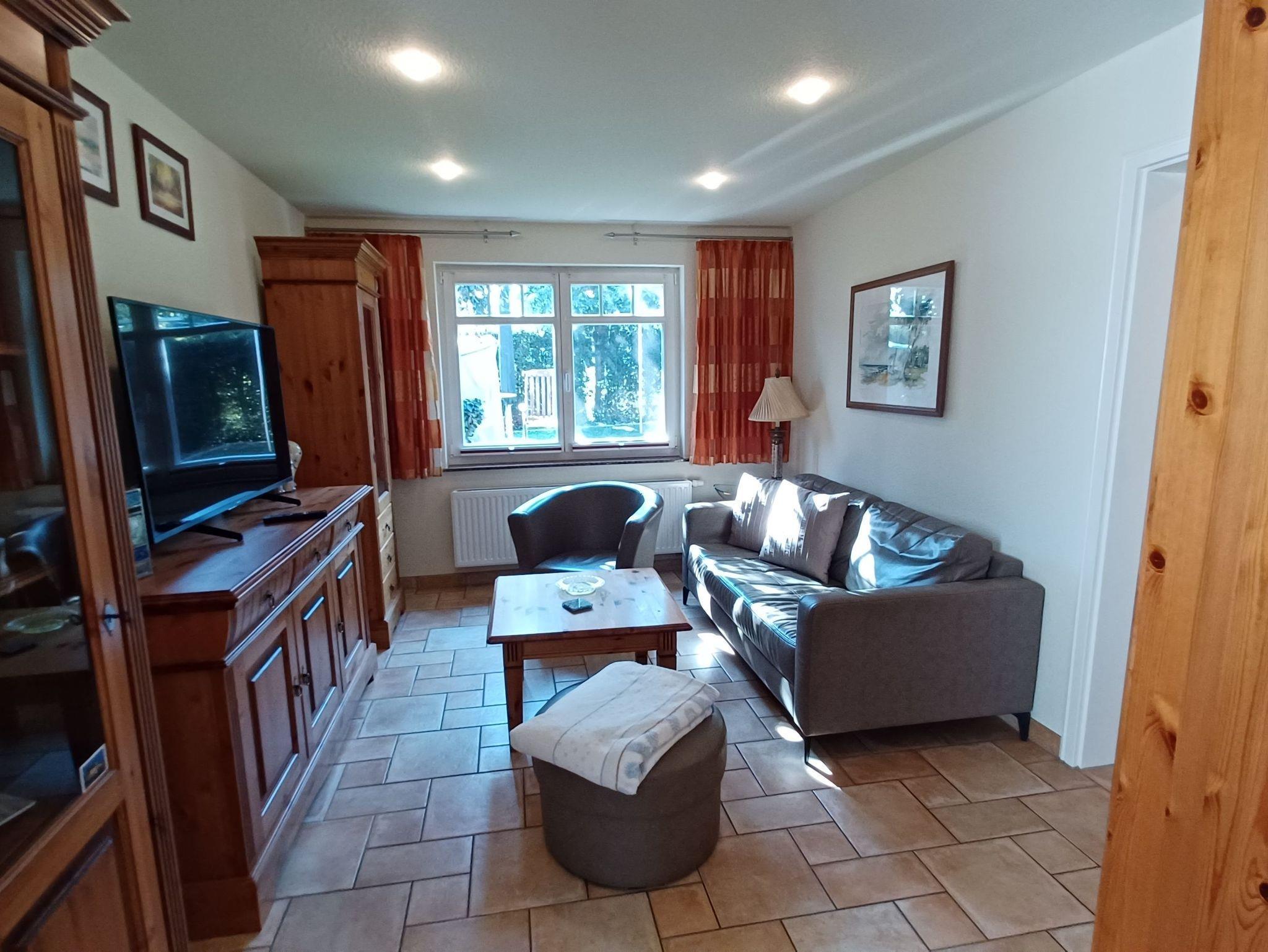 ein komfortabel eingerichtetes Ferienhaus mit ca. 39 qm Wohnfläche in sehr ruhiger Lage im Ortskern von Wustrow. Die Terrasse mit Strandkorb schließt sich direkt am Garten an, mit einer Liegewiese am Haus. An das gemütliche Wohnzimmer mit moderner Einrichtung, SAT- TV und Radio , sowie einer gemütlichen Couch schließt sich die offen gestaltete und moderne Küche mit umfangreicher Ausstattung an, wie Herd, Mikrowelle mit Grillfunktion, Geschirrspüler und dem Essplatz für 2 Personen. Das Schlafzimmer ist mit einem mit Doppelbett (1.80 x 2.00 m) und getrennten Matratzen ausgestattet. Das großzügige Duschbad verfügt über eine Fußbodenheizung.