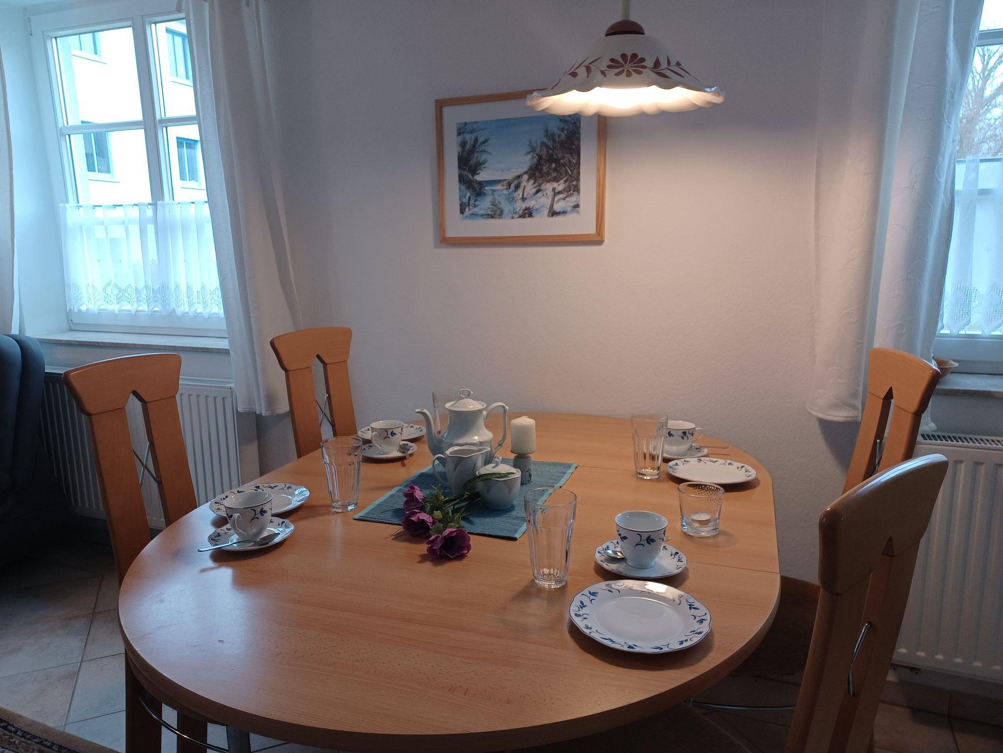 Gemütliche Ferienwohnung Backbord in Wustrow, 300 m vom Strand, mit Terrasse, WLAN und E-Auto-Ladestation.