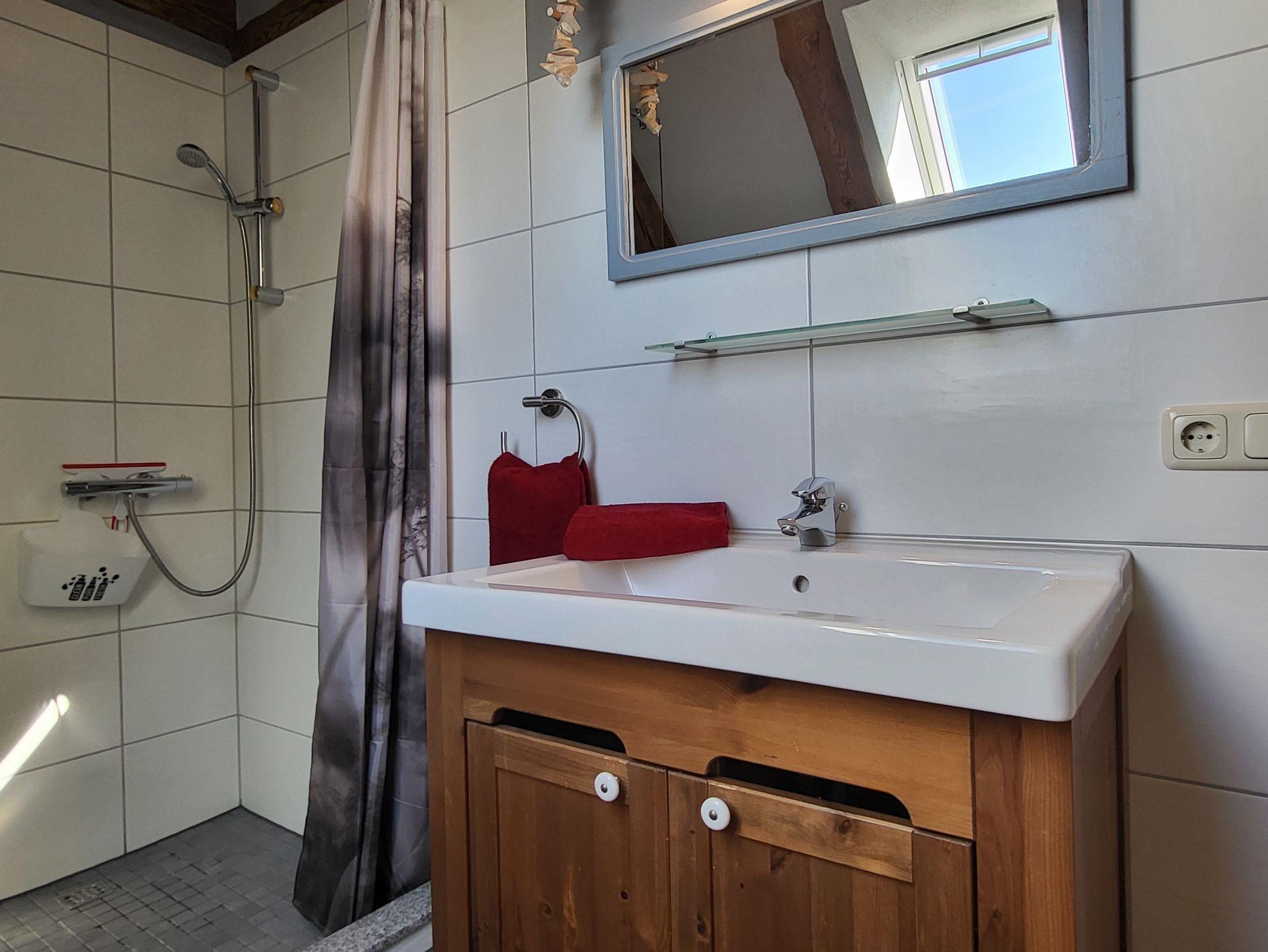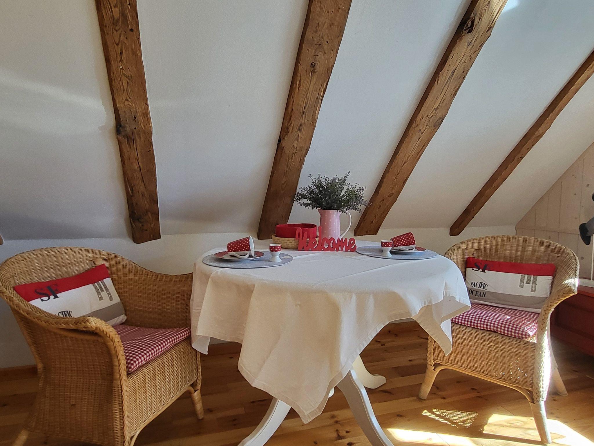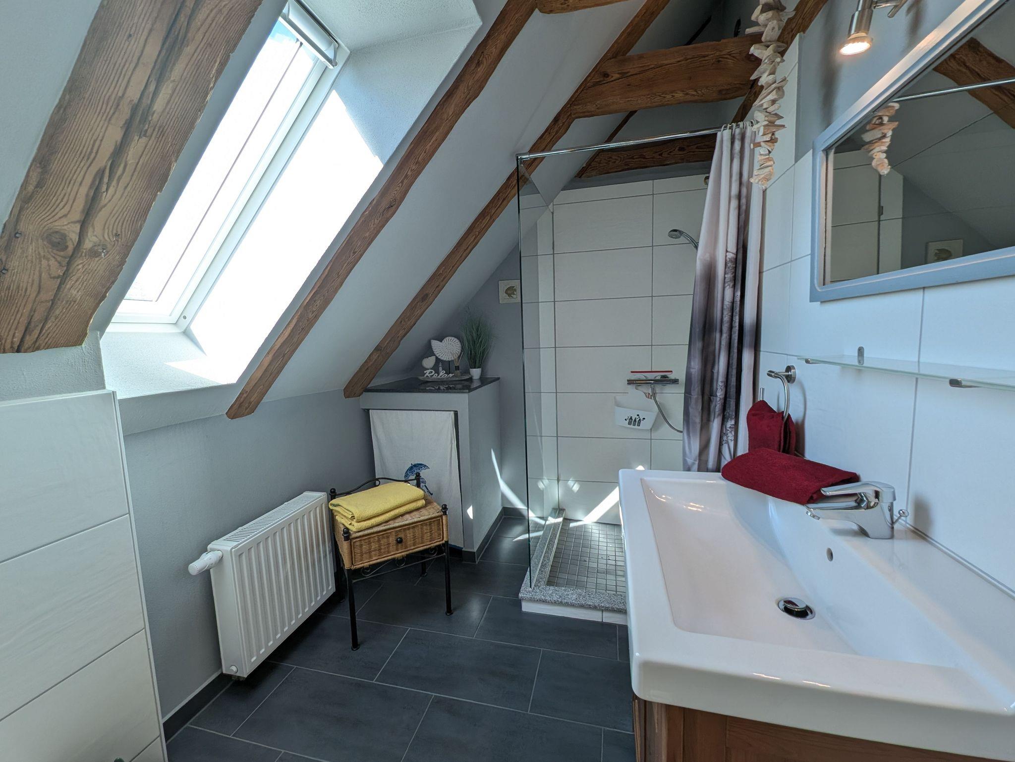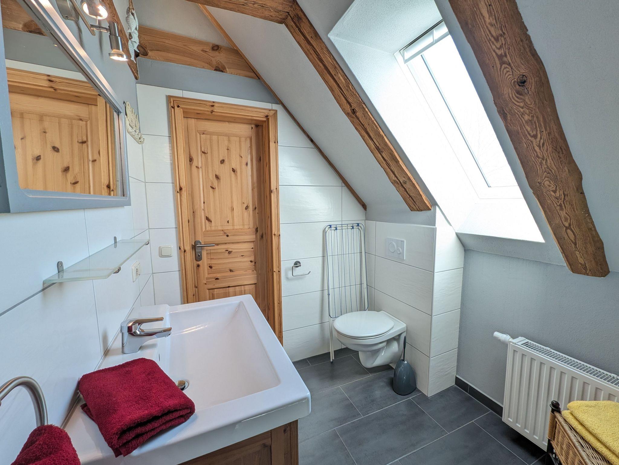 die Ferienwohnung im Obergeschoss erstreckt über 2 Etagen. Schlafen unterm Sternenhimmel im Dachgeschoss, mit Doppelbett 2,00 x 1,80 m (getrennte Matratzen). Liebevoll und fachgerecht 2017 grundsaniert, alles wurde mit natürlichen Baustoffen hergerichtet. Freigelegtes altes Sichtfachwerk und Naturholzböden zeigen die Persönlichkeit der Wohnung. Naturholzmöbel sorgen für ein wohnliches Ambiente. Der offene Wohnstil mit komplett ausgestatteter Küchenzeile, ein lichtdurchflutetes Bad und der großzügige Wohnraum sorgen für Gemütlichkeit. Im großen naturbelassenen Garten lädt eine sonnige Gemeinschaftsterrasse am alten Apfelbaum zum verweilen ein.Ein Parkplatz befindet sich auf dem Grundstück. Die Wohnung ist nicht geeignet für Kinder unter 6 Jahren. Die Ferienwohnung wir mit Bettwäsche und Handtücher übergeben.