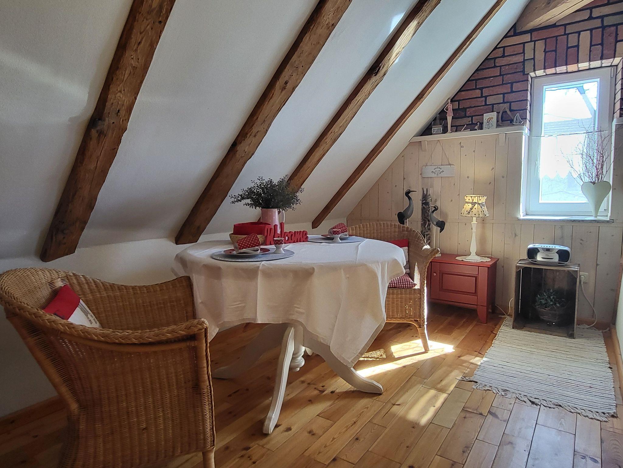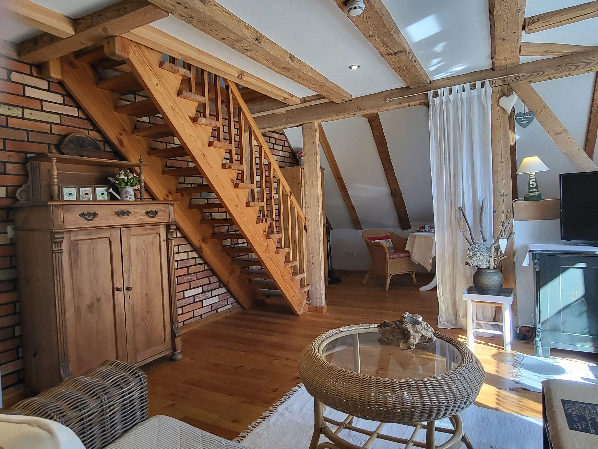 Gemütliche Ferienwohnung in Wustrow mit zwei Etagen, Naturholzmöbeln und nur 350 m vom Strand entfernt.