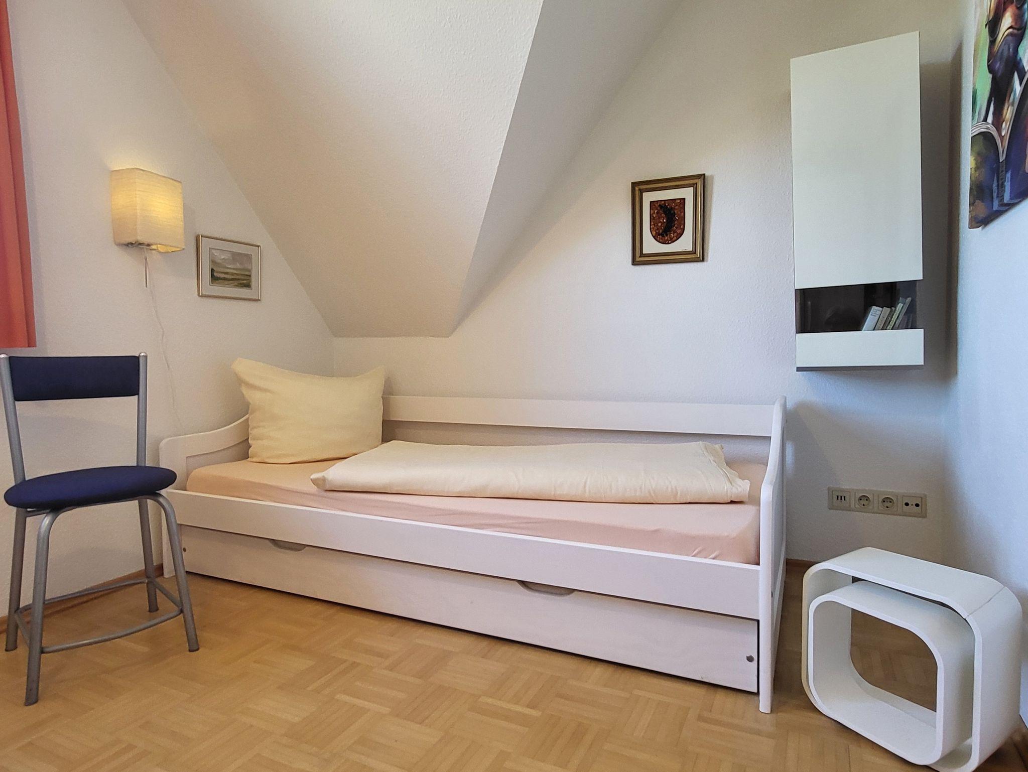 Im 1. Schlafzimmer ist ein Doppelbett 1,80 x 2,00 m und im Kinderzimmer ein Bett 0,90 x 2,00 m (ausziehbar) vorhanden. Die Bettwäsche ist inklusive, Handtücher, können bei der Zimmervermittlung gemietet werden und kosten 7 Euro pro Person (ein Badetuch, ein Handtuch).