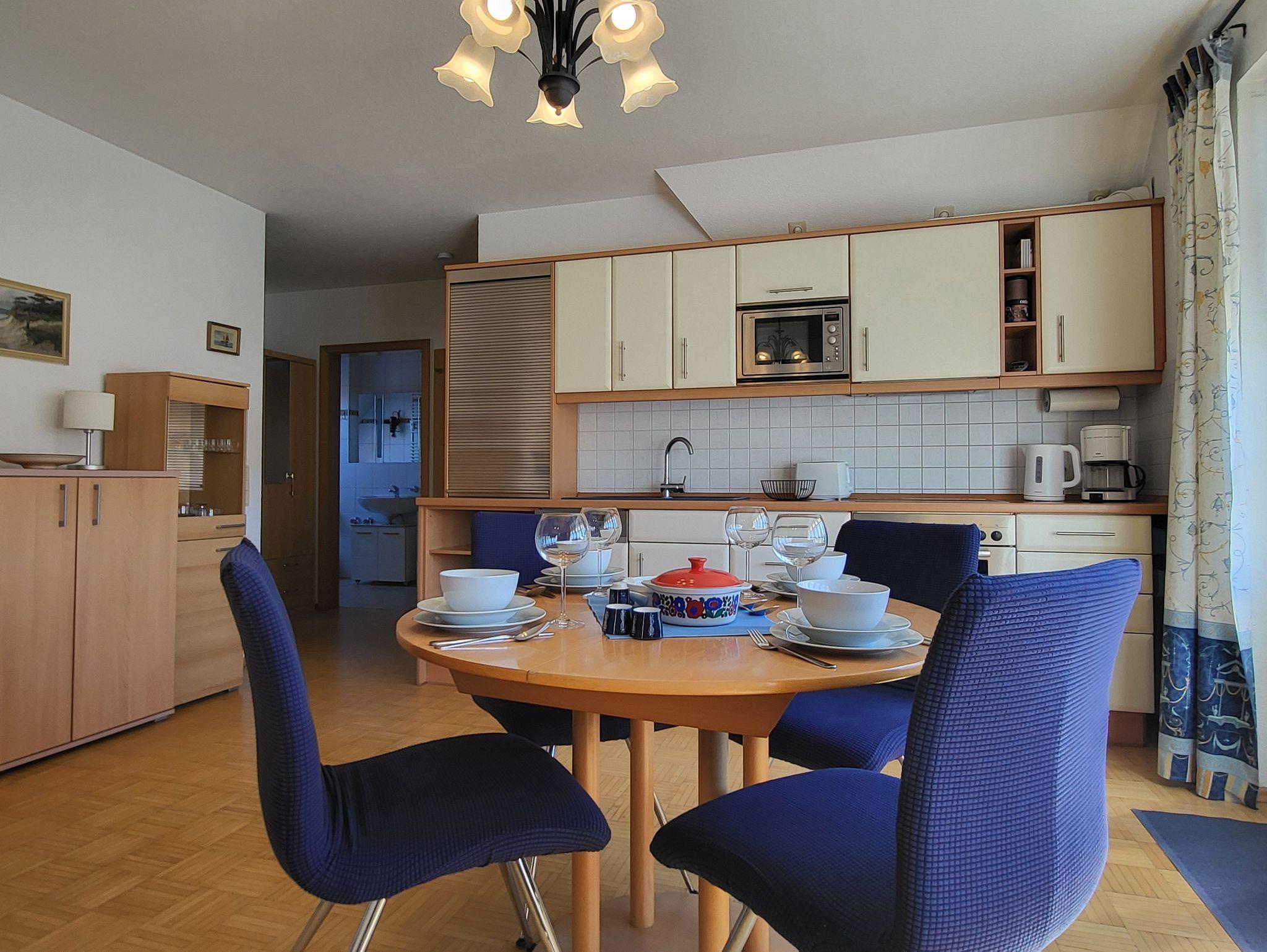 Der Süd- West- Balkon lädt zum Verweilen mit einem Strandkorb und Balkonmöbeln ein. Zur Ferienwohnung gehört der Parkplatz Nr. 6. Fahrräder können im Schuppen Nr. 6 abgestellt werden.