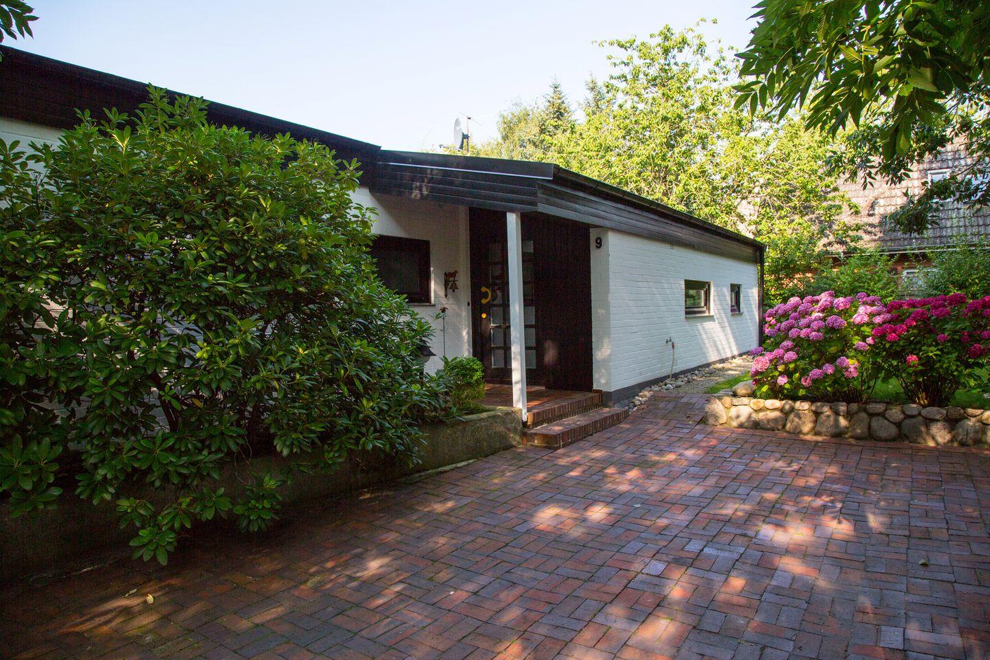 Das moderne, sehr geschmackvoll eingerichtete Haus liegt in einer ruhigen Gegend. Es verfügt über ein lichtdurchflutetes Wohnzimmer, einer überdachten Terrasse, einem schönen Garten inklusive Strandkorb, einer weiteren nicht überdachten Terrasse (nicht einsehbar von der Straße aus), einer sehr gut ausgestatteten Küchenzeile, einem Esszimmer, 2 Schlafzimmer, 2 Bäder, einem Arbeitszimmer und 2 Parkplätzen. Glasfaser-Anschluss ist vorhanden. Das Haus eignet sich aufgrund der Aufteilung ideal für zwei Paare.