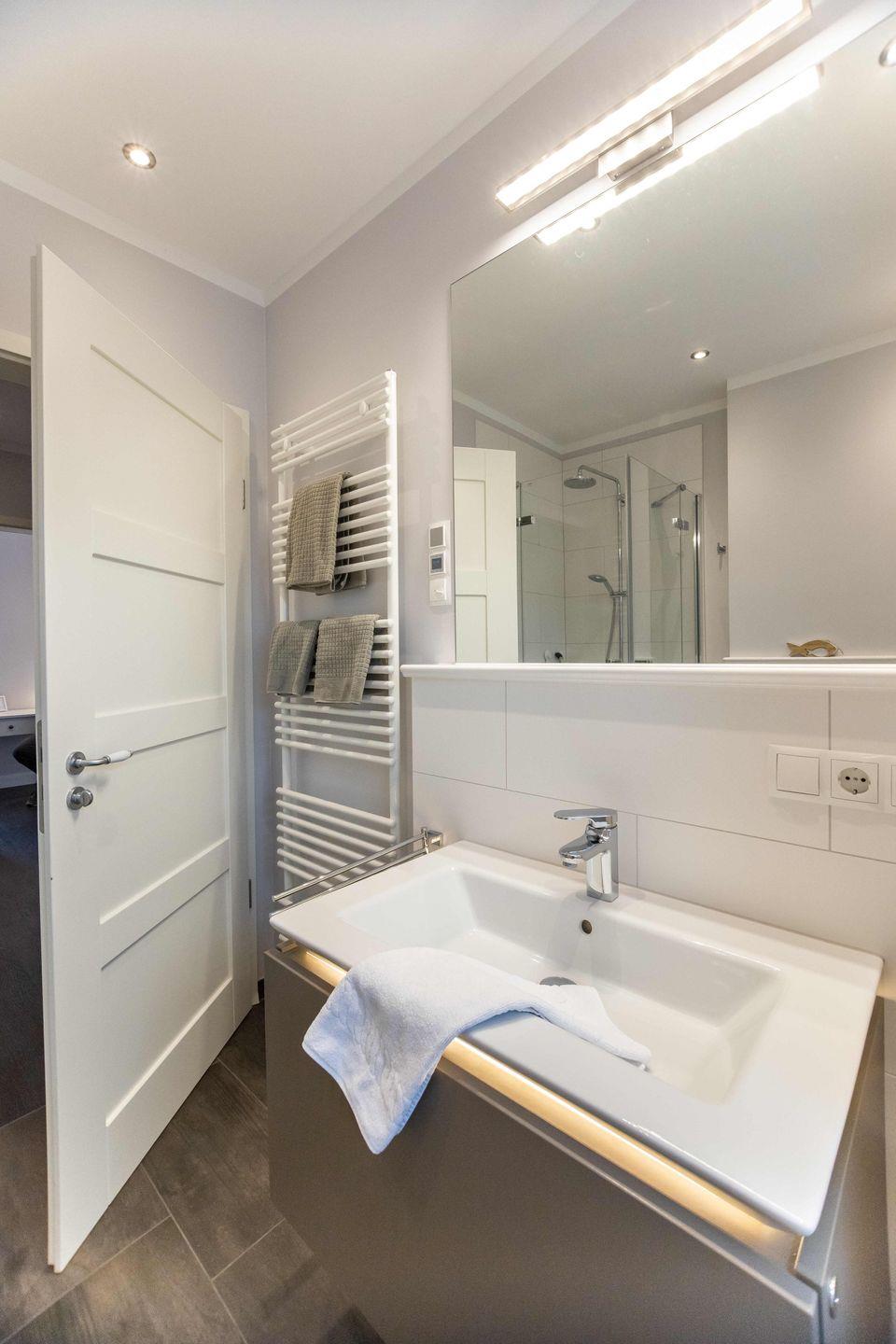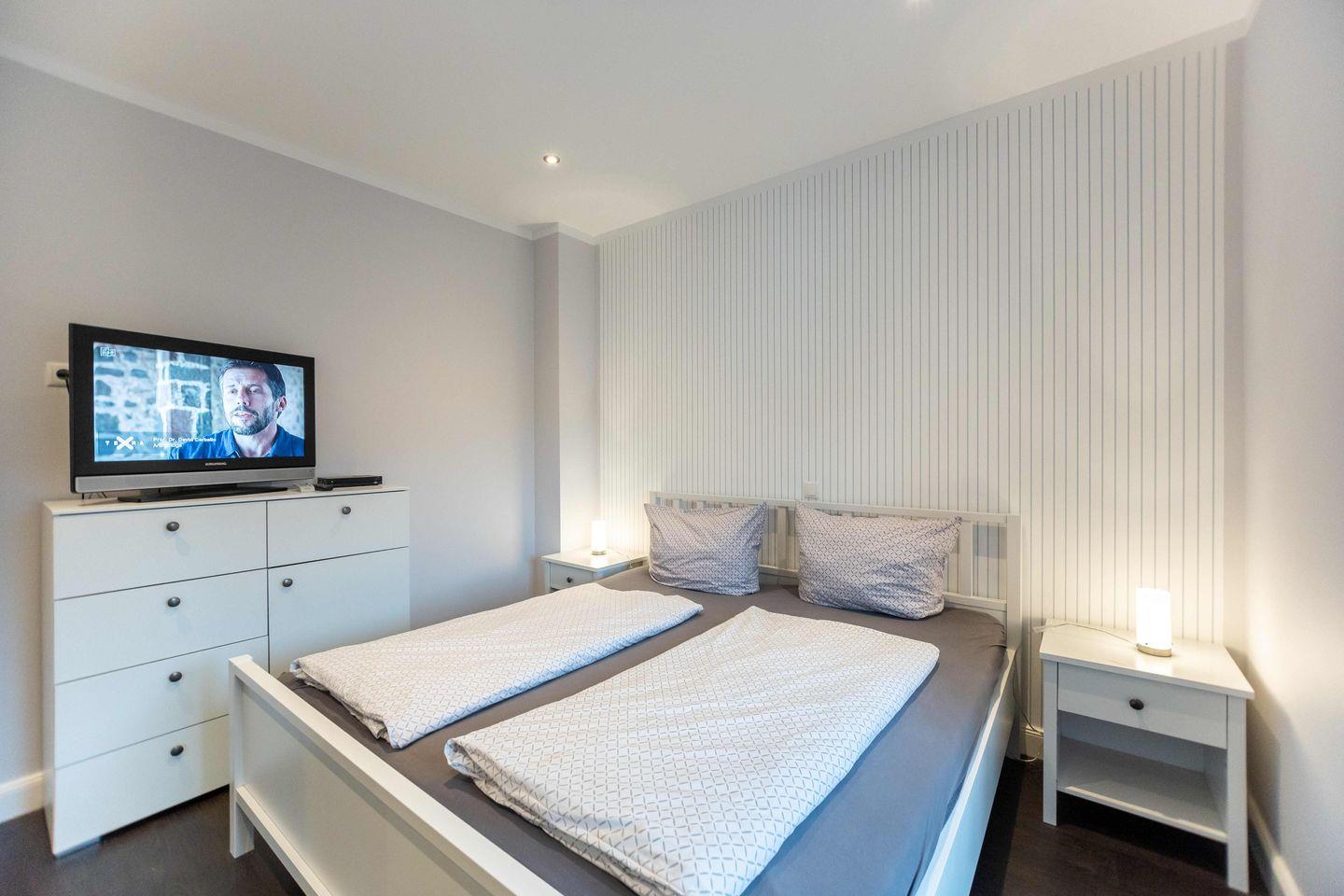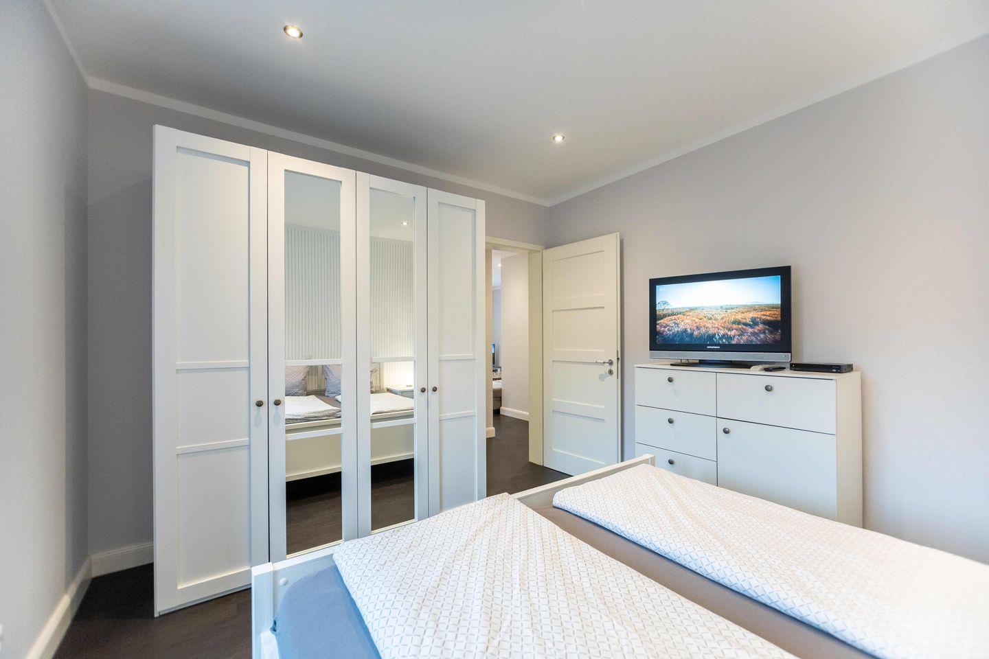 Eines der beiden Schlafzimmer ist mit einem Doppelbett (180x200), das andere Schlafzimmer mit zwei getrennt stehenden Einzelbetten ausgestattet. Beide Schlafzimmer verfügen jeweils über einen Kleiderschrank. Das moderne Duschbad ist in hellen Farben gehalten. Das Highlight der Wohnung ist der wohnungseigene Balkon, welcher geschützt in Richtung des Innenhofes liegt. Ein besonderes Highlight ist der Strandkorb, der Ihnen inklusive Strandlaken von Mai bis September am Wyker Strand (Abschnitt 5) zur Verfügung steht. Dieser befindet sich keine 3 Minuten von Ihrer Ferienwohnung entfernt und ermöglicht entspannte Stunden direkt am Meer.