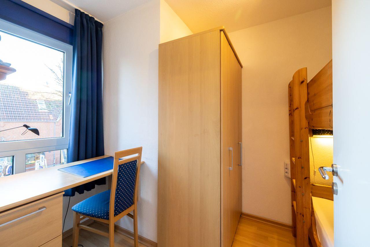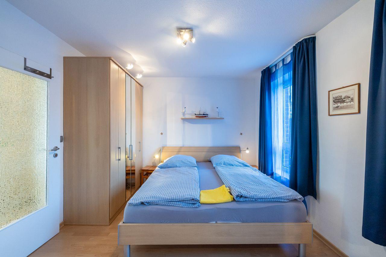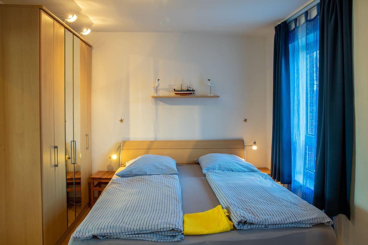 Beim Betreten der Wohnung zweigen vom Wohnungsflur die praktische Küchenzeile, das großzügige Wohnzimmer und ein Schlafraum mit einem Doppelbett ab. Das zweite Schlafzimmer, das vom Hauptschlafzimmer abgeht, ist mit einem Etagenbett (zwei Mal 90*200 cm) ausgestattet und verfügt ebenfalls über tief heruntergezogene Fenster. Die gut ausgestattete Küchenzeile bietet eine Mikrowelle, eine Spülmaschine und ein Cerankochfeld für die Zubereitung köstlicher Mahlzeiten. Das Duschbad präsentiert sich in neuem Zustand und überzeugt mit großflächigen Fliesen sowie einer modernen Duschkabine.