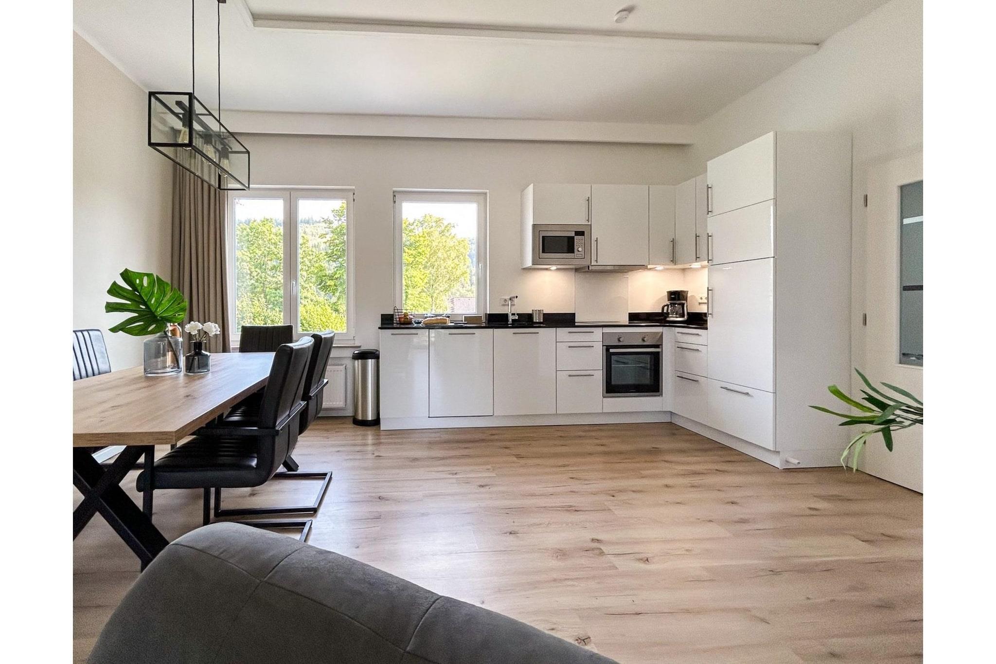 Genießen Sie Ihren Urlaub in der modernen Ferienwohnung im idyllischen Bergdorf Züschen, nur 5 km vom beliebten Winterberg entfernt. Die großzügige Unterkunft bietet zwei helle Schlafzimmer mit komfortablen Boxspringbetten, ein stilvolles Badezimmer sowie ein gemütliches Wohn-/Esszimmer mit Smart-TV und Zugang zum Balkon mit traumhaftem Panoramablick. Die offene, voll ausgestattete Küche mit Cerankochfeld, Backofen, Kühlschrank mit Gefrierfach, Nespresso- und Filterkaffeemaschine lädt zu geselligen Abenden ein. Ein weiteres Highlight ist der große Balkon mit Sitzgruppe, Liegestühlen und Sonnenschirm – perfekt, um die Natur und Ruhe des Sauerlands zu genießen. Für Familien stehen Babybett, Hochstuhl und Waschmaschine bereit. Parkplatz am Haus inklusive. Die Lage ist ideal: Im Sommer erreichen Sie in wenigen Minuten den Hillebachsee zum Baden, Wandern oder Wassersport, im Winter locken Skipisten, Lifte und Après-Ski in Winterberg. Wanderer, Mountainbiker und E-Biker finden das ganze Jahr über traumhafte Routen.