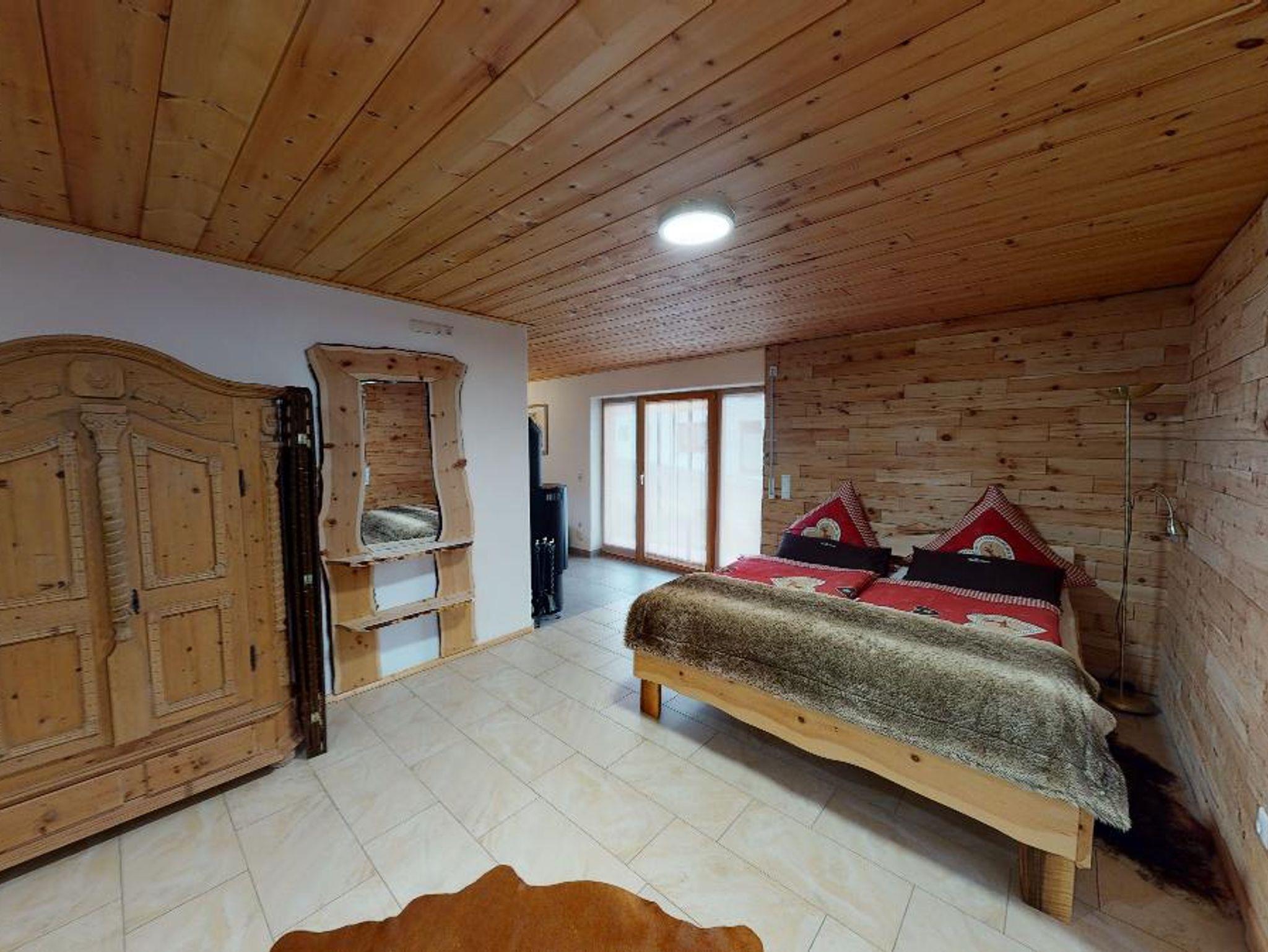 • Schlafbereich mit handgefertigtem Zirbenholzbett