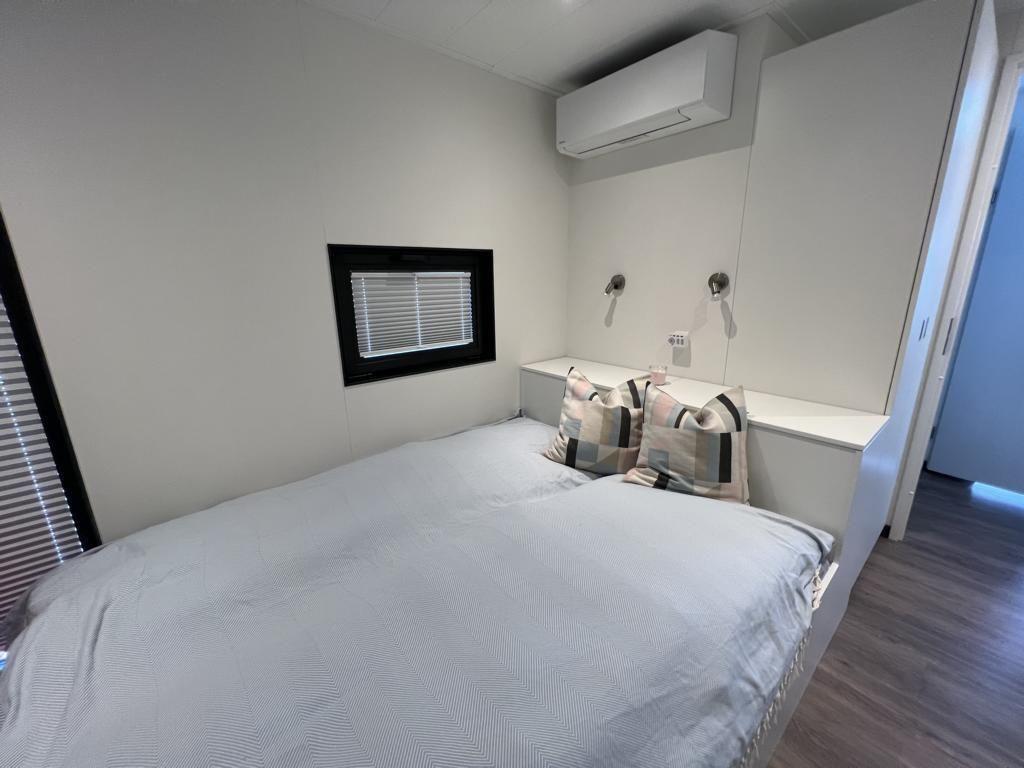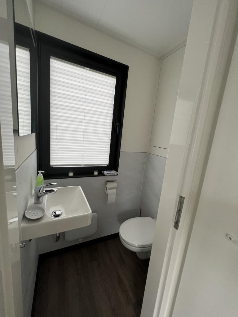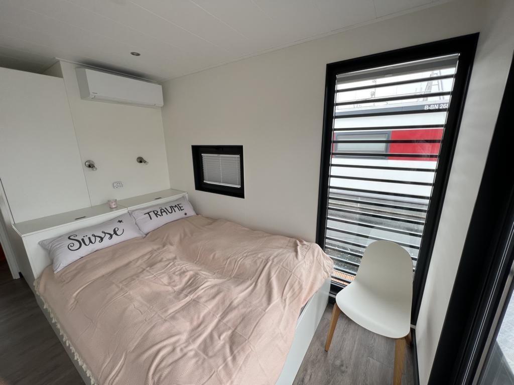 Das Floatinghouse verfügt über 1 Badezimmer mit Dusche, WC, Waschbecken, Fenster und warmem Wasser; insgesamt gibt es 1 Dusche. Für angenehmes Raumklima sorgen Elektro-Heizung sowie eine Klimaanlage in allen Aufenthaltsräumen. Ein Kaminofen ergänzt das Wohngefühl, während Fliegengitter, Sonnenschutz und Sichtschutz für alle Fenster den Aufenthalt zusätzlich komfortabel machen.