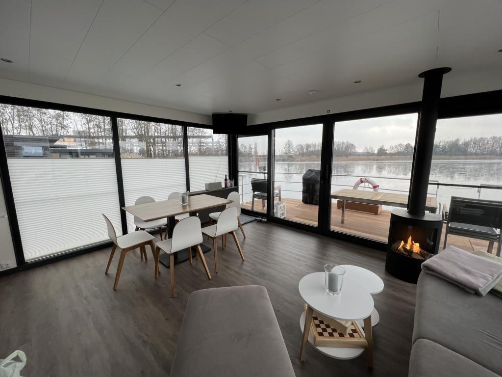 Floatinghouse Bakerman: Urlaub am See mit Kaminofen und Seeblick