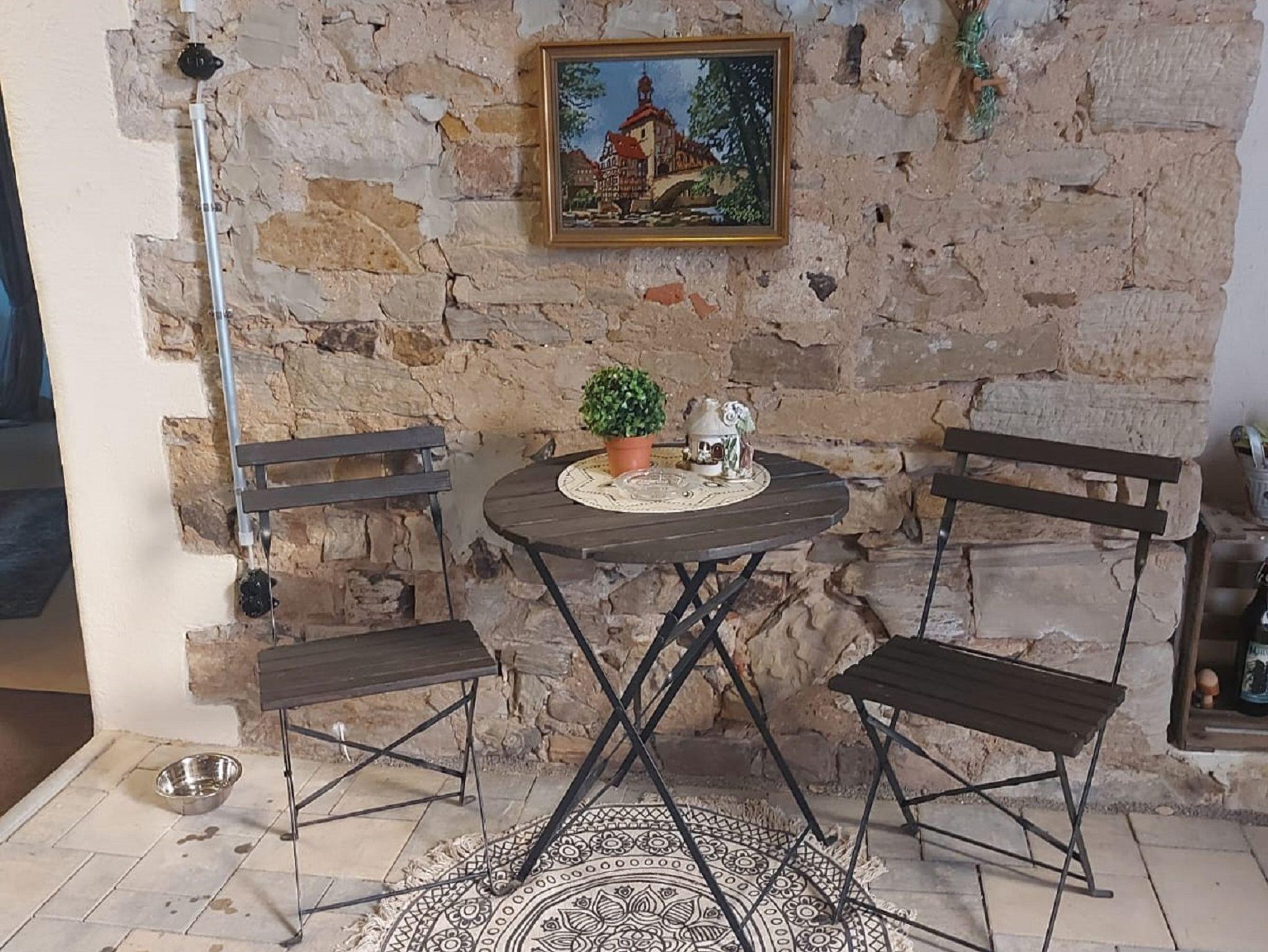 Die Wohnung selbst liegt in unmittelbarer Nähe zu den Weinbergen, der Burgruine Schmachtenberg und der Walfahrtskirche Zeiler Käppele, welche zu schönen Wandertouren einladen.