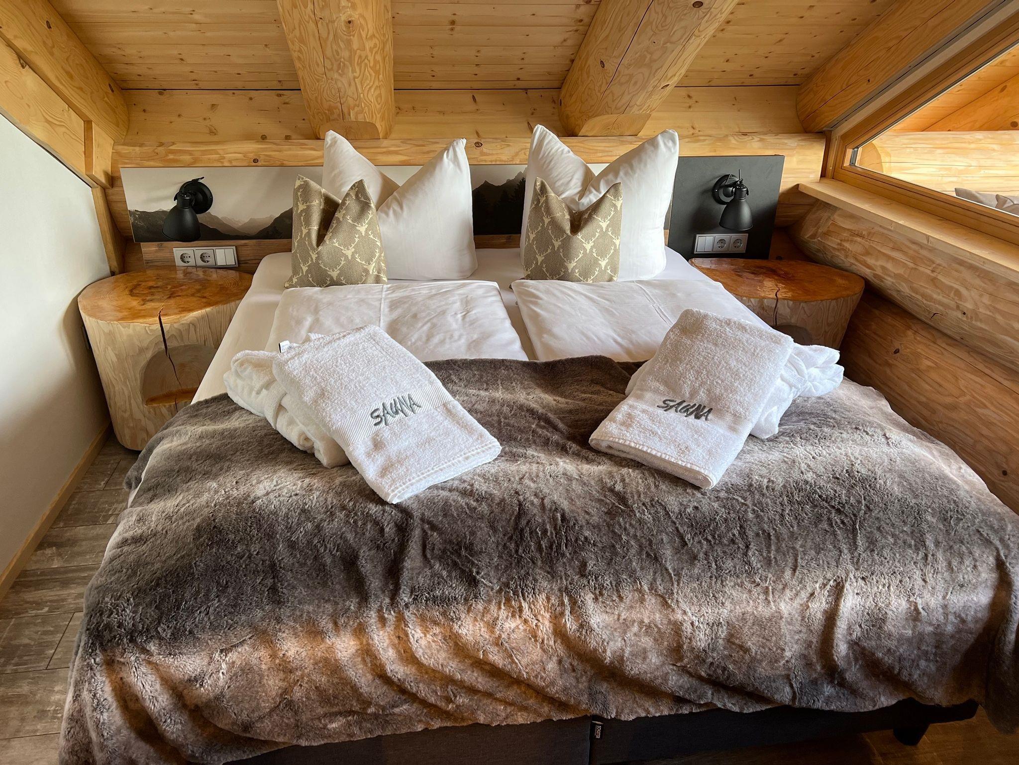 Wir wollen keine Sterne verkaufen, sondern Sie in ein Lebensgefühl der besonderen Art entführen. Sie werden ein Blockhaus beziehen, welches nachhaltig und nach traditioneller kanadischer Bauweise mit heimischen Hölzern aus Deutschland erstellt wurde. Innenausbau, diverse Möbel, Türen als auch die Unikate von Waschbecken und vieles mehr wurden nicht nur von uns selbst entworfen, sondern auch selbst angefertigt. Das Chalet ist ca. 110 qm groß und bietet Platz für bis zu 6 Personen. Auf zwei Etagen befinden sich 2 Schlafzimmer, eines mit einem Doppelbett, das zweite mit 2 Einzelbetten, eine voll ausgstattete Küche (mit Induktionsherd, Spülmaschine und natürlich auch ein Mikrowellenherd, Spülmaschine, Kaffeevollautomat), ein Wohnzimmer, ein Badezimmer mit Dusche und WC. Im Wohn-Essbereich befindet sich ein Esstisch, eine Couch (Schlafcouch) sowie ein Fernseher. Wlan und ein Parkplatz stehen kostenfrei zur Verfügung. Ein Pallets-Ofen sorgt für wohlige Wärme. Besondere Highlights sind der Whirlpool im Freien und die Fasssauna, sowie eine Wellnessdusche und ein Sitzbad. Diese Annehmlichkeiten stehen exklusiv zur Verfügung. Zudem erwartet Sie ein reichhaltig gefüllter Begrüßungskorb mit selbst gemachten Köstlichkeiten.