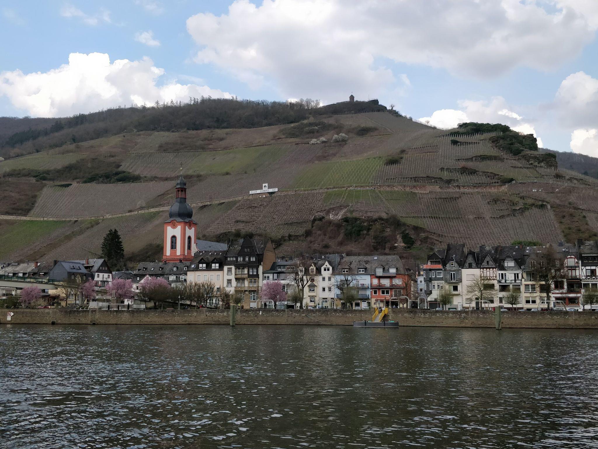 Die Vorderseite liegt mit unverbaubarem Blick zur traumhaft schönen Mosel. Die Rückseite des Gebäudes liegt am Anfang der Zeller Fußgängerzone mit Blick auf Weinberge des bekannten Anbaugebietes „Zeller schwarze Katz“.