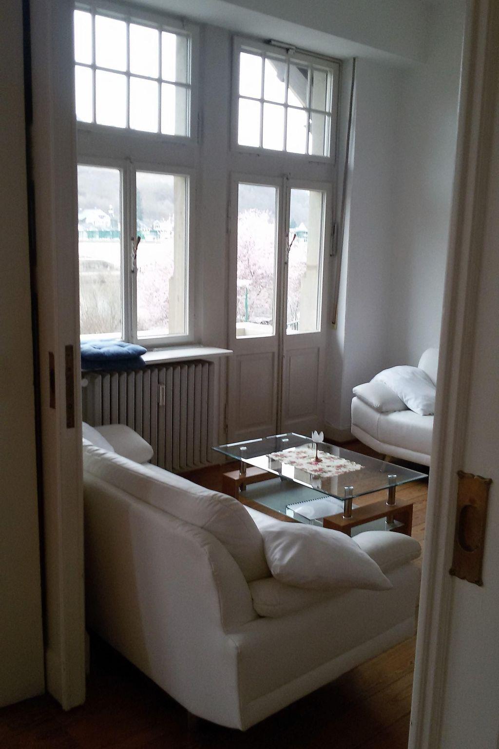 Die Wohnung ist technisch auf dem neusten Stand und hat eine Wohnfläche von von 107m². Sie hat ein abgetrenntes WC und ein Badezimmer mit Badewanne und Duschwanne. Es gibt drei Schlafzimmer jeweils mit Doppelbetten. Im gemütlichen Wohnzimmer steht Ihnen neben zwei Sofas auch ein TV zur Verfügung. Typisch für historische Gebäude ist die hohe Zimmerdeckenhöhe von 3.30 Meter. In der abgetrennten Einbauküche mit Ofen, Mikrowelle, Toaster, Kühlschrank mit Gefrierfach, Spülbecken, vierer-Kochplatten, Geschirrspüler, Kaffeemaschine (Senseo+Filter) sowie Essbereich finden Sie alles erforderliche. Es gibt einen Willkommen-Wein bei Anreise und Senseo-Kaffee für die erste Erholung nach der Anreise. Zur Verfügung stehen ausserdem Bügelbrett & Bügeleisen, damit Ihre Kleider auch immer gut aussehen. Es gibt Gratis WLAN im ganzen Haus. Originale Holzböden, respektive Naturparkett, sind in der Wohnung vorhanden. SAT-TV/Radio, DVD-Player und Möglichkeit für HDMI-Anschlüsse.