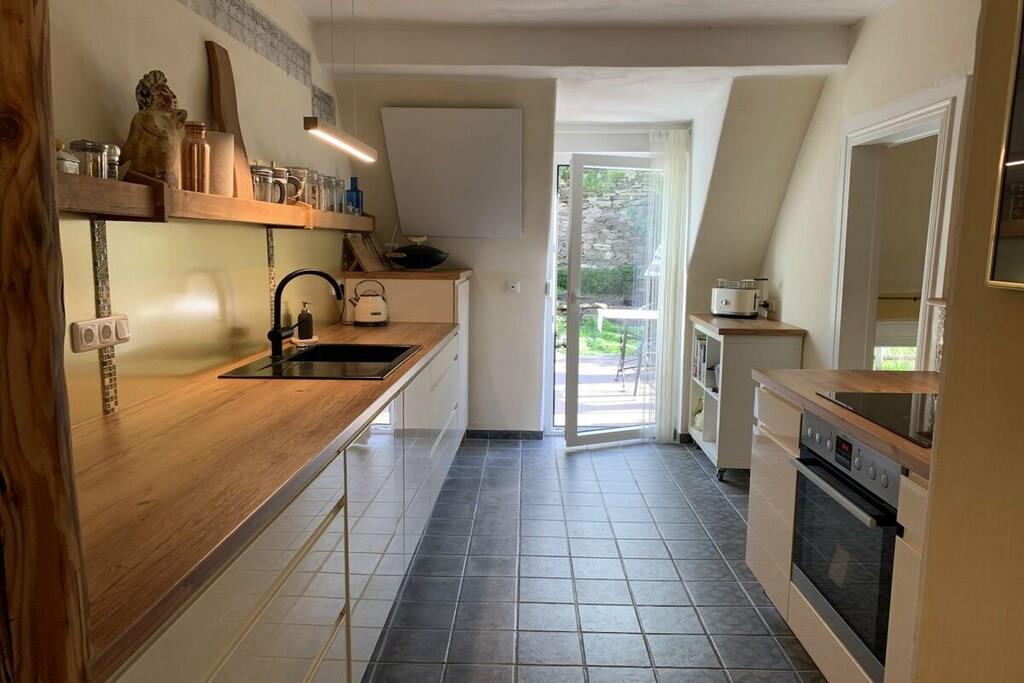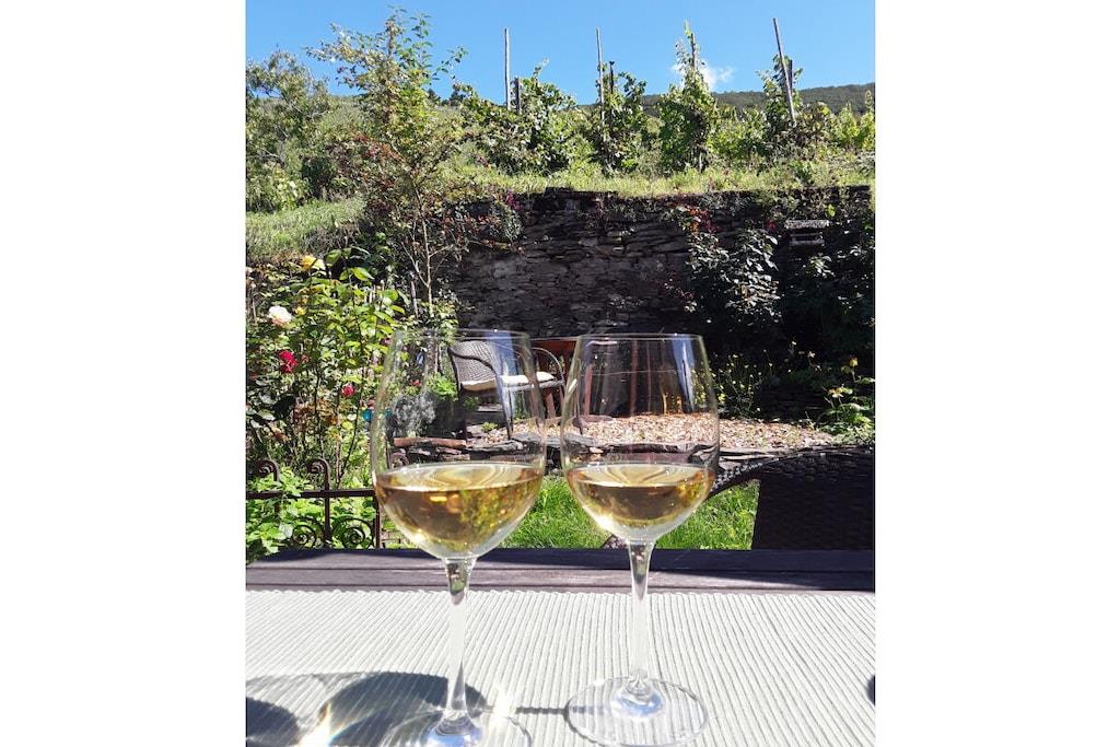 Wir haben dieses Haus mit viel Herzblut liebevoll und ökologisch komplett restauriert. Auf 100qm, verteilt auf 3 Ebenen, befinden sich die hochwertig eingerichteten Zimmer. Auf der 2 Etage befinden sich das Schlafzimmer und das Bad mit angrenzendem Wintergarten. Die 3 Etage bildet das Zentrum, mit Esszimmer, Küche und Zugang zur Terrasse. Um bei einem Glas Wein zu entspannen, mit Ausblicken auf den ,,runden Turm,, ...,,Collisturm,, und die ,,Lönshöhe,, lädt die Terrasse mit kleinem Garten am Weinberg ein. In der 4 Etage befindet sich das sonnige Wohnzimmer mit Aussicht in die Weinberge und nach vorne hin auf die Mosel. Ebenerdig steht eine Garage für mitgebrachte Fahrräder oder sonstiges zu Ihrer Verfügung.
