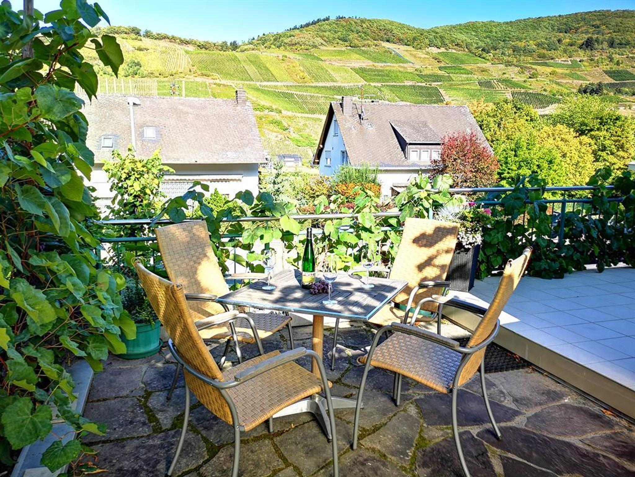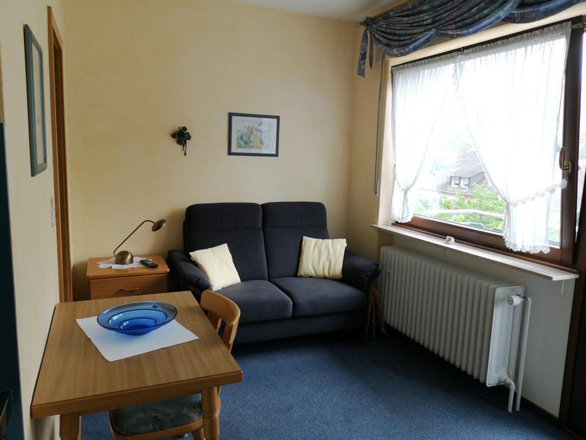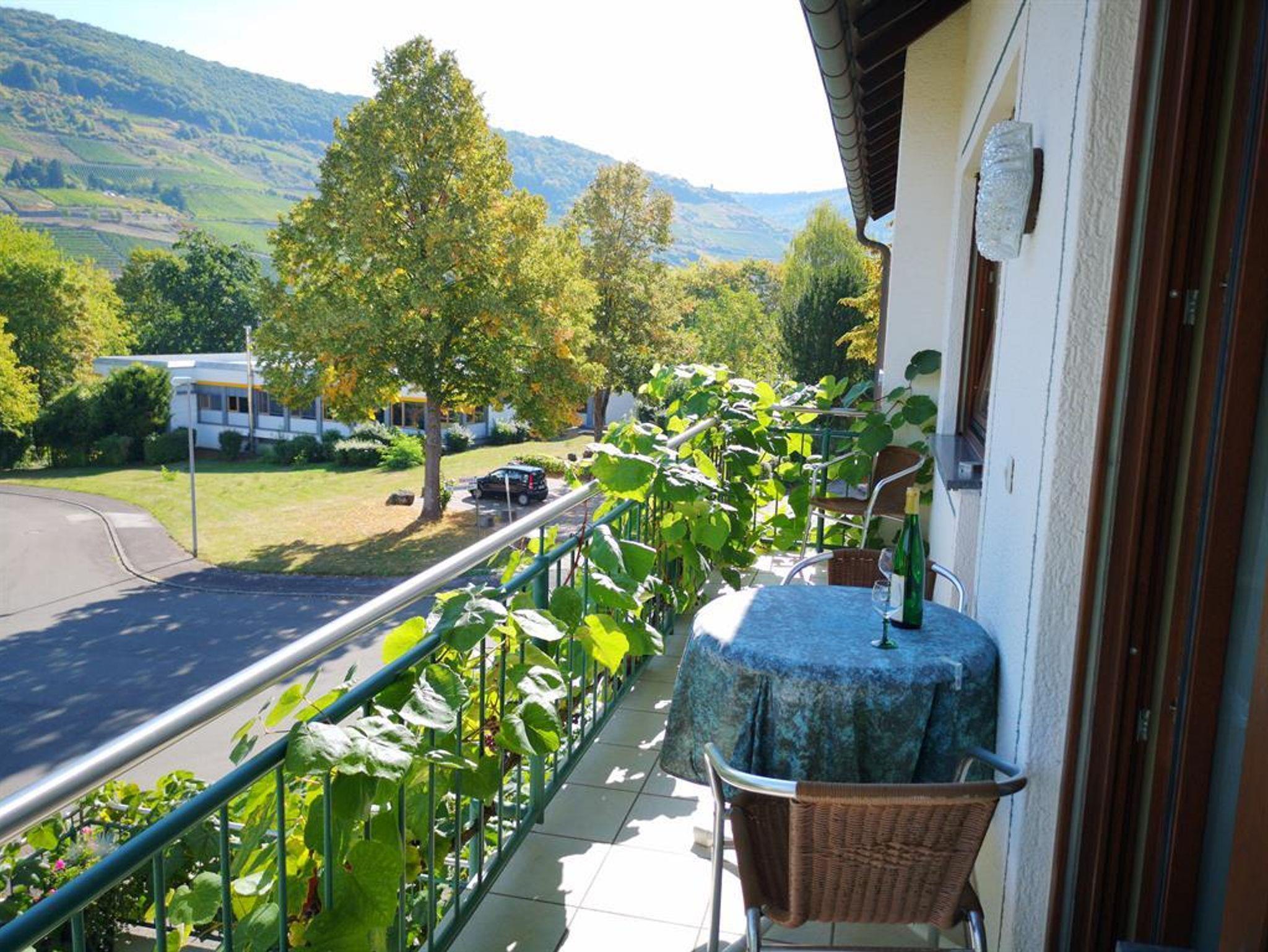 Appartement, inkl. Endreinigung und alle Nebenkosten, (30 qm) mit separatem Schlafzimmer sowie DU/WC. Der Wohnbereich ist mit einer Miniküche (2 Herdplatten, Kühlschrank, Spüle, Kaffeemaschine, Geschirr) sowie einer gemütlichen Sitzgruppe, Sat-TV (Flachbildschirm) und kleinem Essplatz ausgestattet. Vom Balkon genießen Sie den einzigartigen Blick auf die Mosel und die gegenüberliegenden Weinberge.