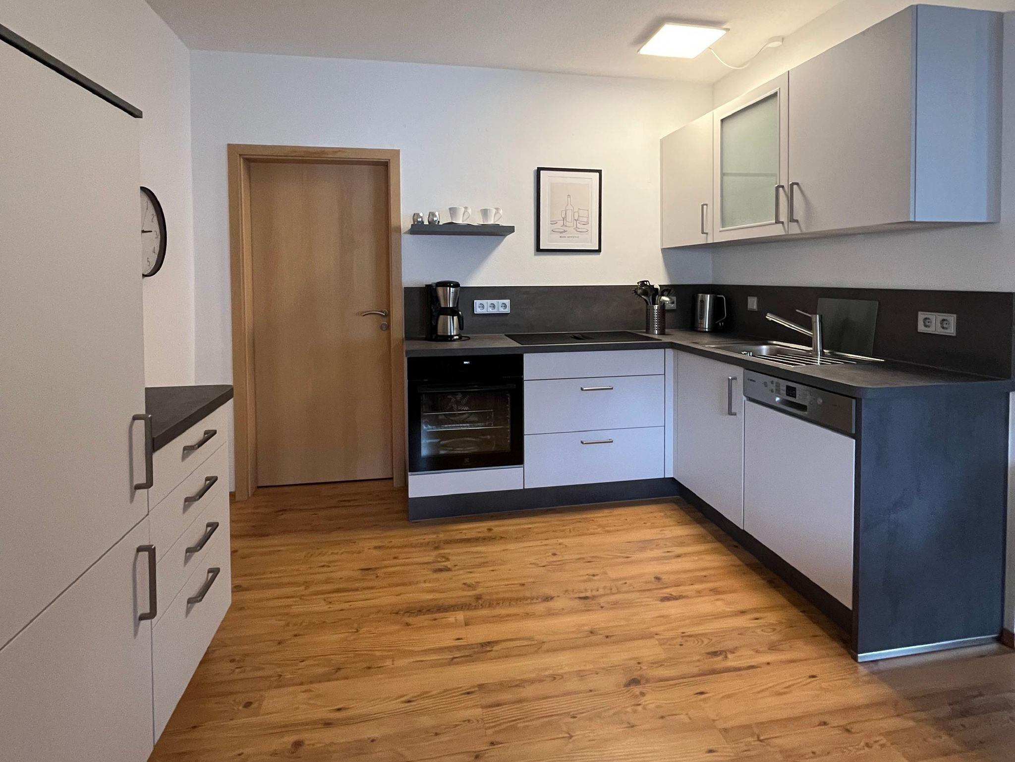 Küche komplett eingerichtet. Parkplatz oberhalb vom Haus, freies W-Lan.
