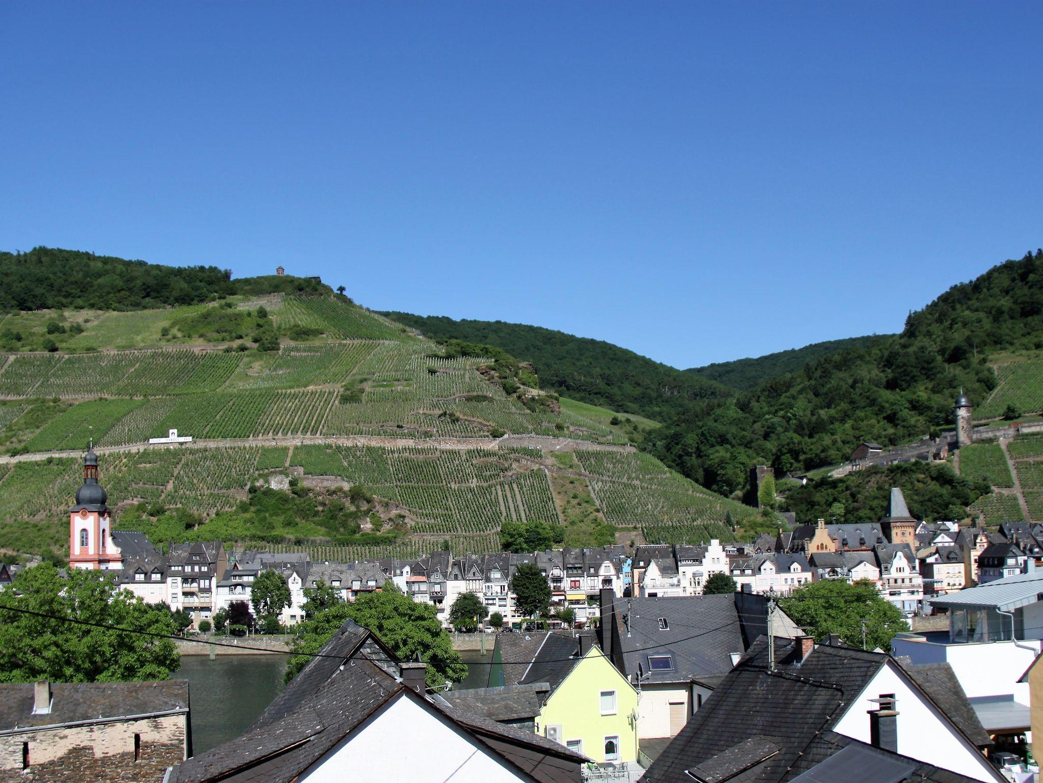 Sie finden uns in Zell-Mosel im Herzen des Stadtteils Kaimt mit einem herrlichen Blick auf das romatische Städtchen Zell-Mosel und die Weinberge mit dem runden Turm und Collis.