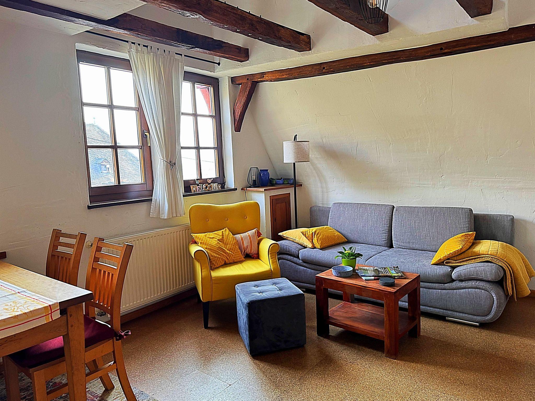 Die Ferienwohnung ist für zwei Personen ausgelegt, im gemütlichen Wohnraum steht zusätzlich eine Schlafcouch zur Verfügung (, was insbesondere Familien mit einem kleinen Kind gern nutzen).