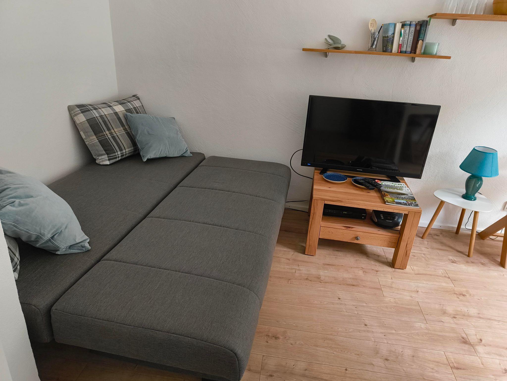 Es stehen Ihnen zwei separate Schlafzimmer zur Verfügung – eines mit Doppelbett, das andere mit zwei Einzelbetten. Im Wohnzimmer, das ebenfalls als abgetrennter Raum genutzt werden kann, befindet sich ein hochwertiges Schlafsofa (1,40?x?2,00?m).