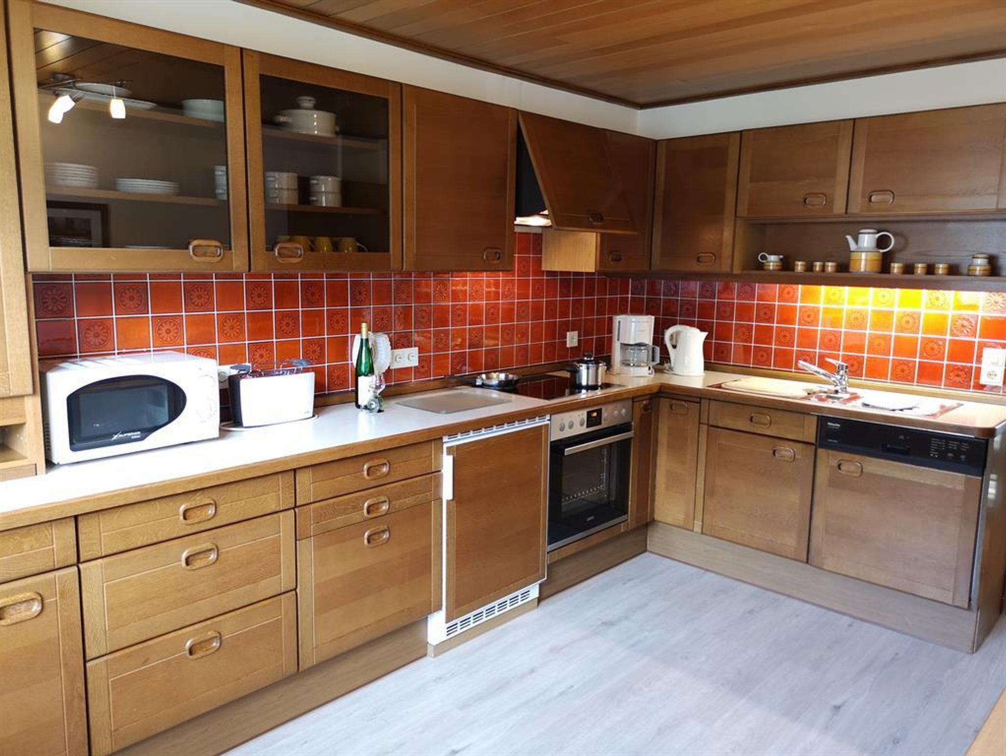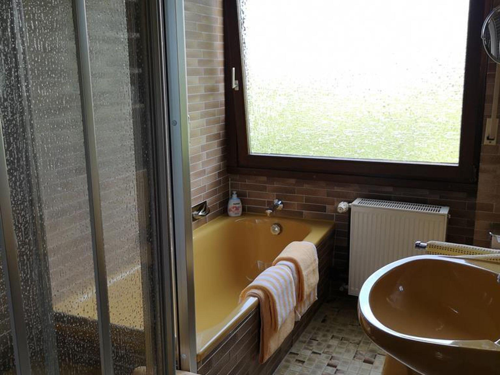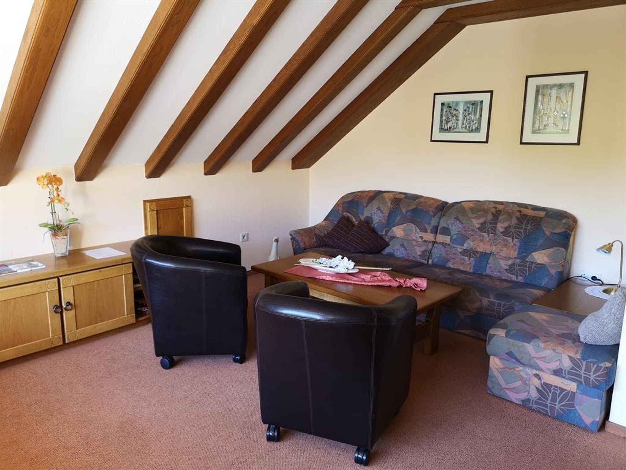 Unsere große Ferienwohnung ( Dachwohnung ) ca, 100 qm ist geeignet für 2-4 Personen. Bestehend aus einem Wohnzimmer mit Couchtisch, Sat-TV (Flachbildschirm) und einer überdachten Loggia mit herrlicher Aussicht. Einer komplett ausgestatteten Küche mit Backofen, Geschirrspüler und einem großen Essplatz. Ferner 2 Schlafräume mit eigener Waschgelegenheit, sowie großem Flur und Bad mit Wanne, Dusche und WC.