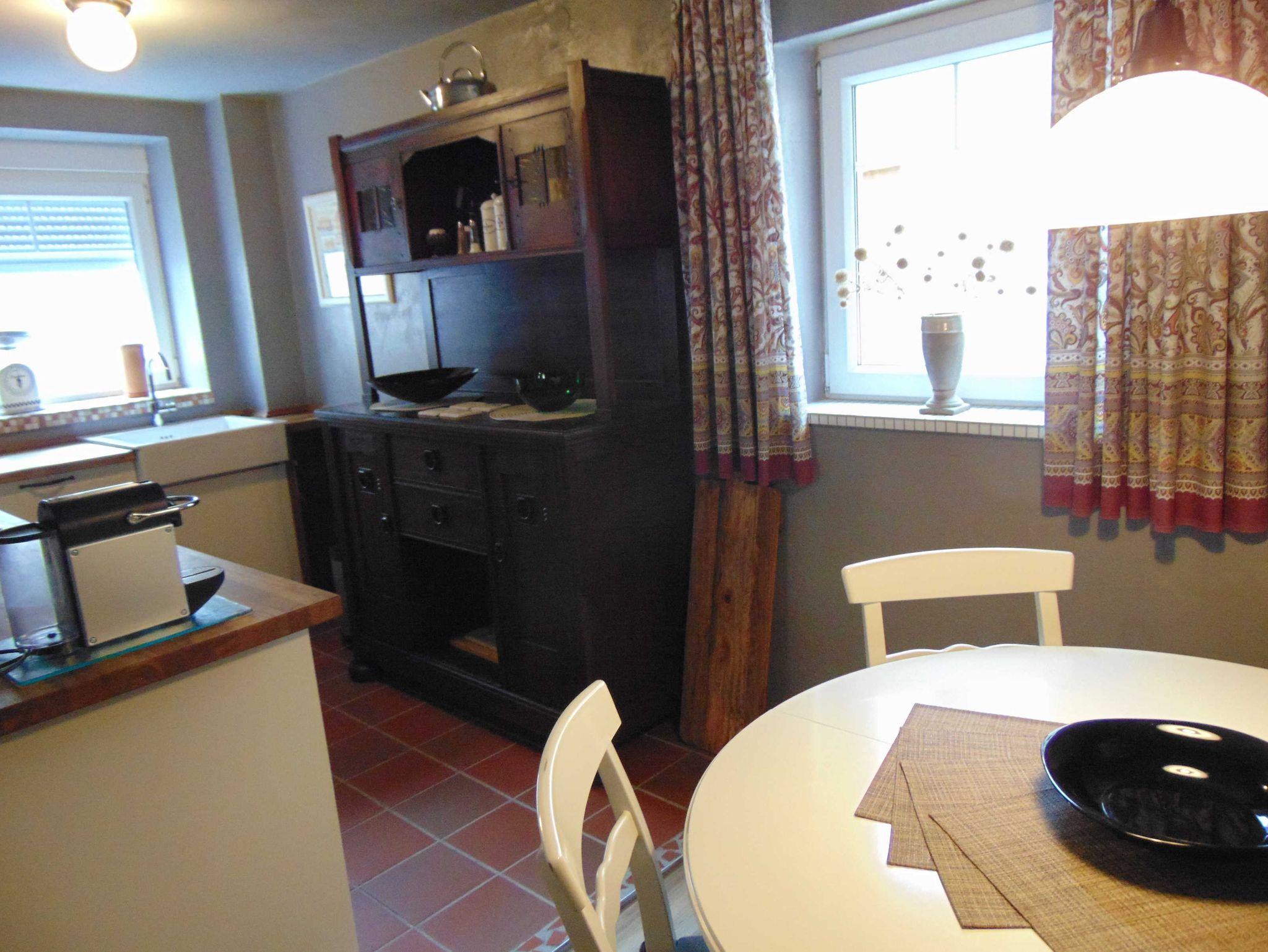 Die schöne Küche lädt zum gemeinsamen kochen ein. Ceran-Kochfeld, Backofen, Kaffeemaschine... alles was man braucht. Den guten Riesling zum Essen bekommen Sie direkt beim Nachbarn (meine Empfehlung: Riesling Hochgewächs - halbtrocken) Die Moselfrische als Film: in youtube nach Moselfrische suchen