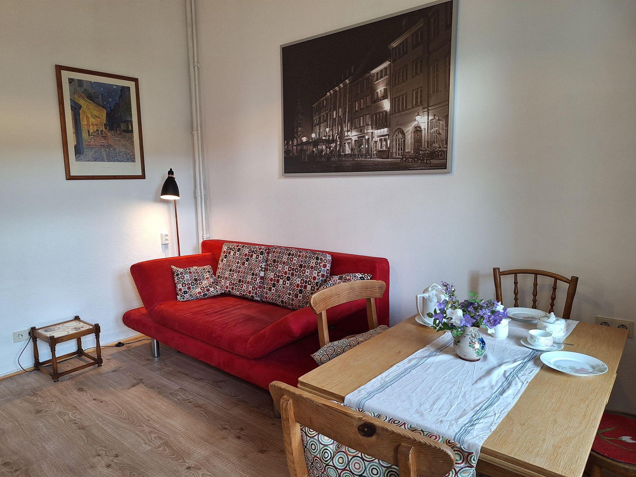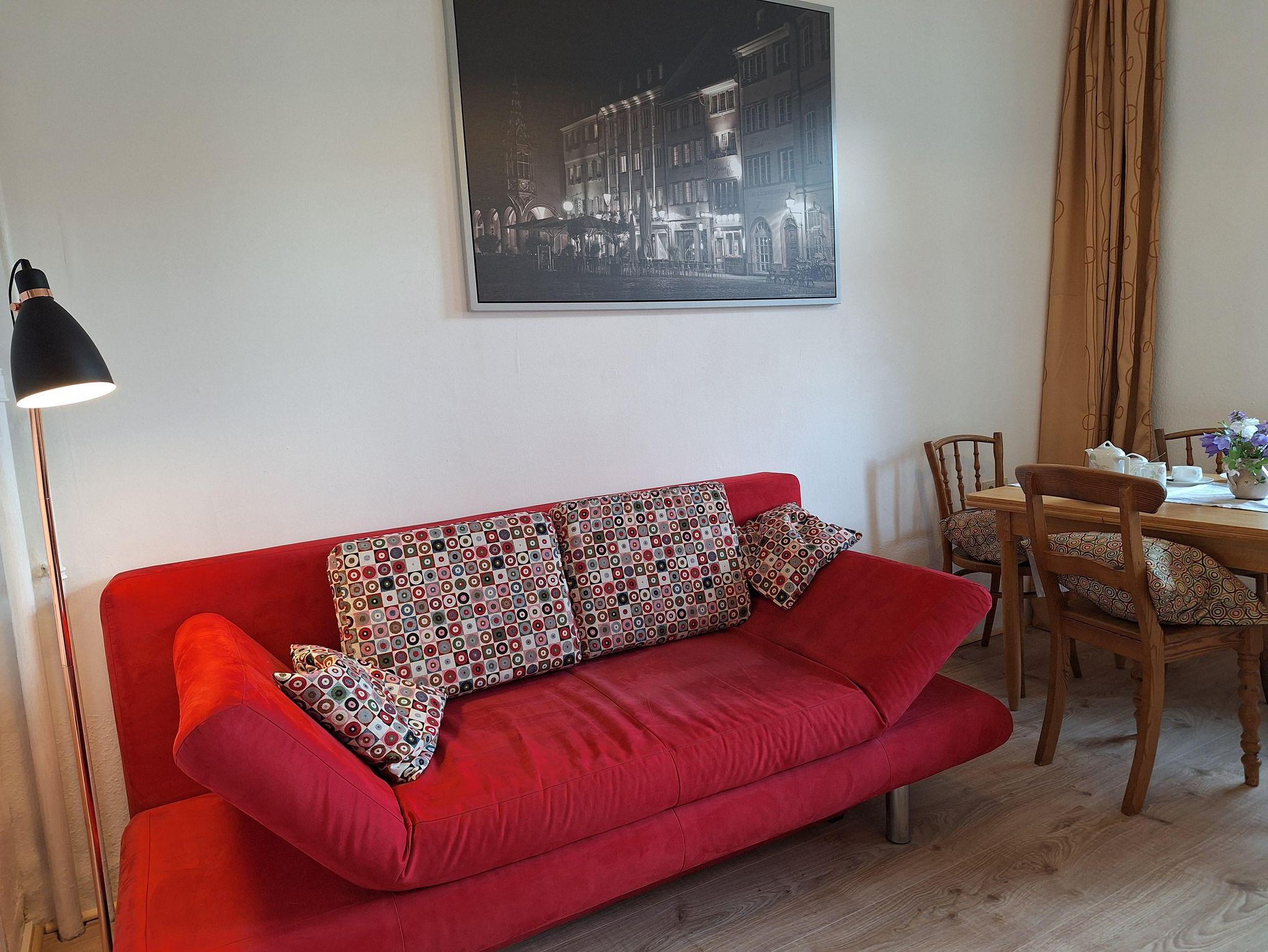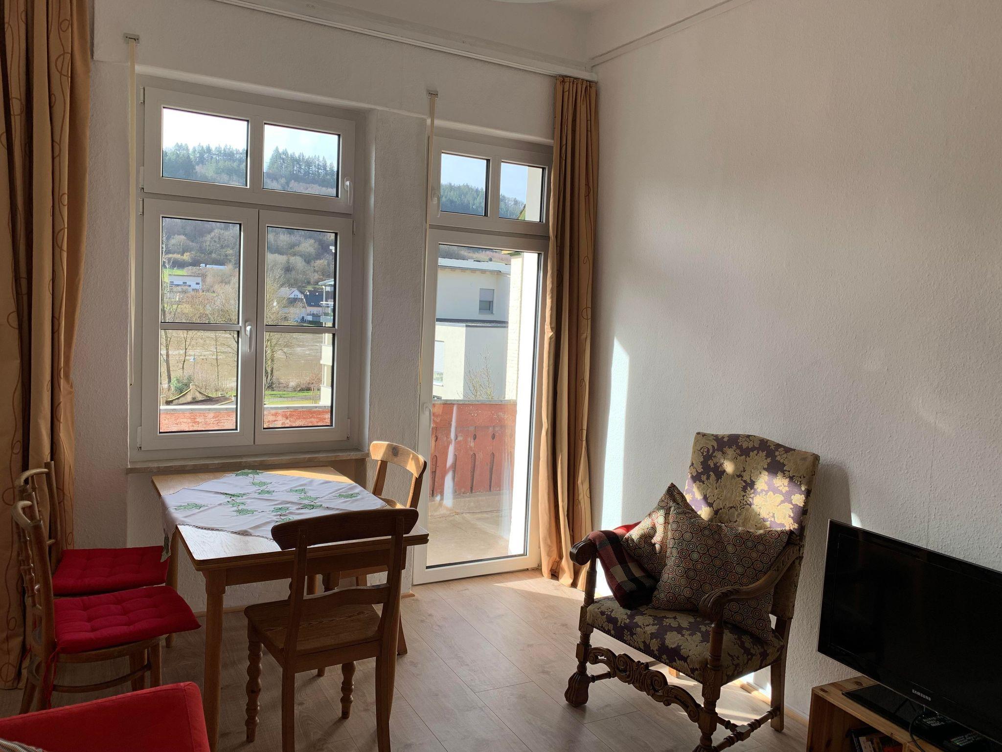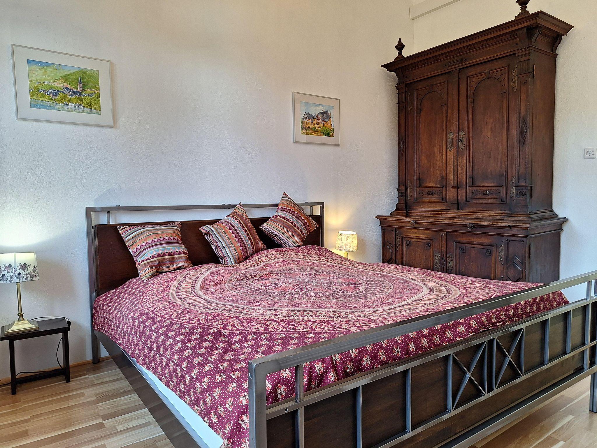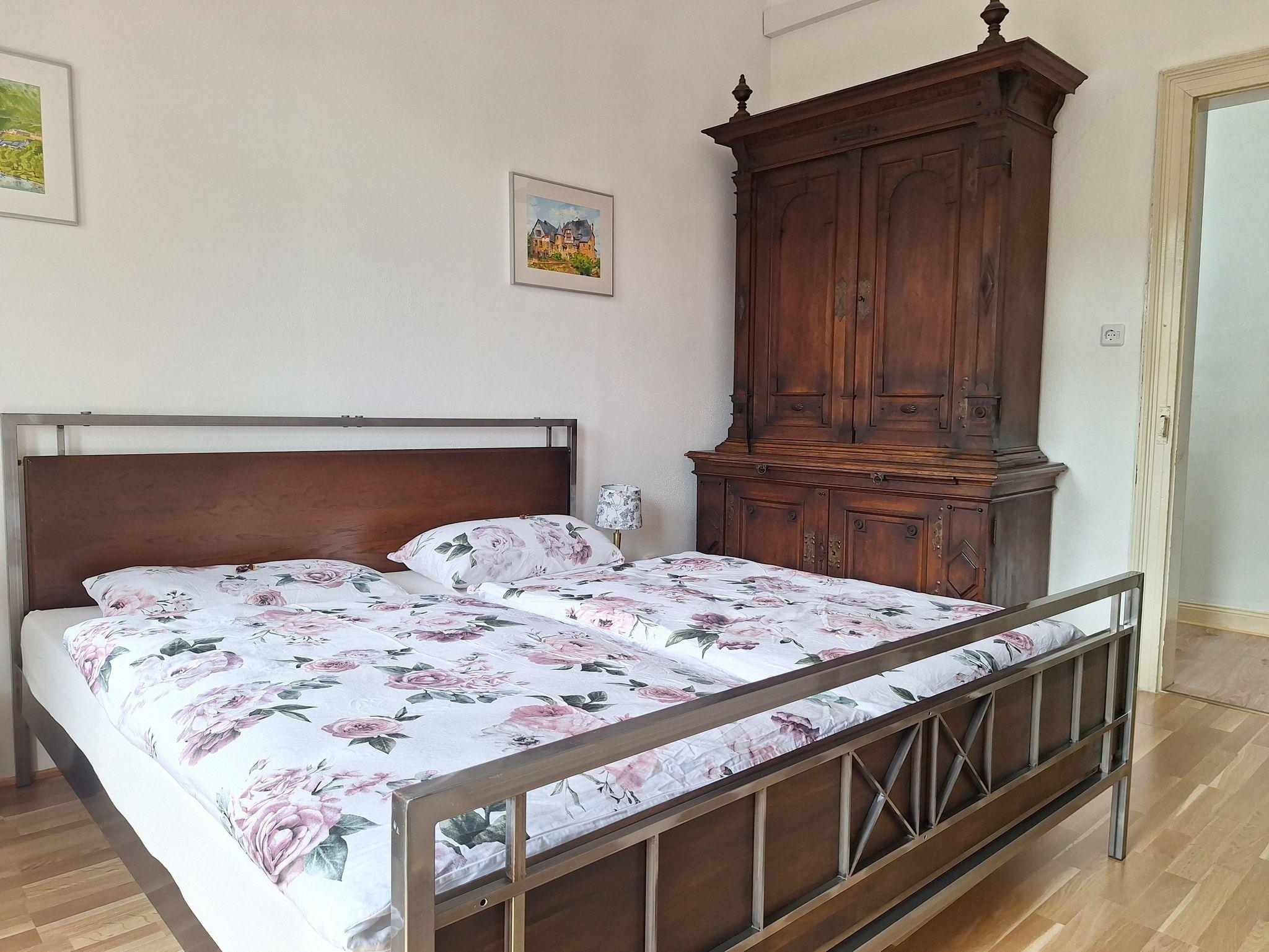Eine schöne Ferienwohnung für zwei Personen mit einem Schlaf- und einem Wohn- und Esszimmer, Küche und Bad und einem Südbalkon mit Moselblick. Zwei weitere Personen können auf dem Schlafsofa im Wohnzimmer übernachten.
