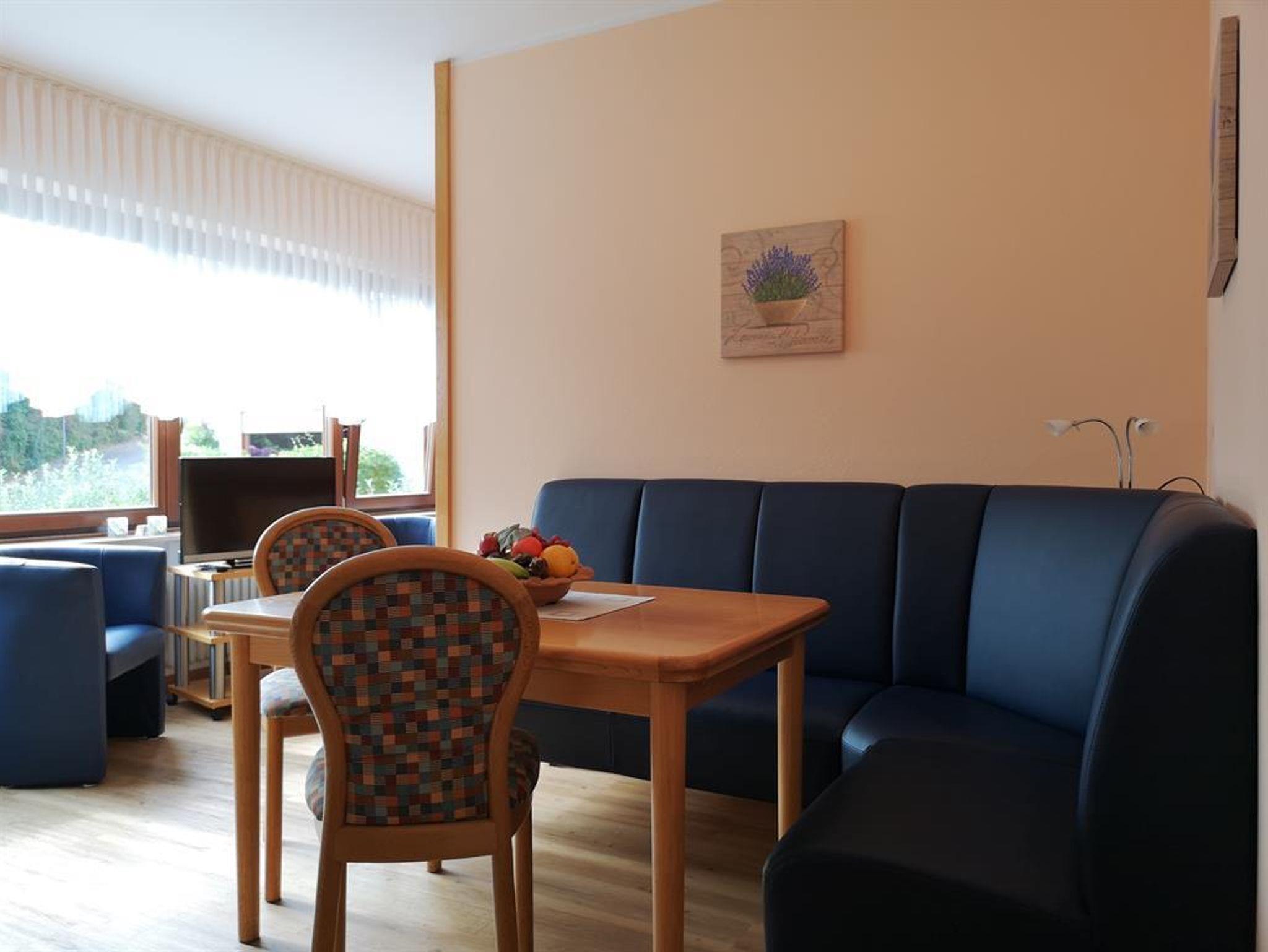 Unsere kleine Ferienwohnung ca. 45 qm geeignet für 2-3 Personen. Bestehend aus einem Wohnschlafraum. Der Schlafbereich ist mit richtigen Betten ausgestattet und durch einen Raumteiler vom Wohnbereich getrennt. Im Wohnbereich eine komplett ausgestattete Küchenzeile, gemütliche Sitzgruppe, Sat-TV (Flachbildschirm) und Essplatz für 4 Personen. Ferner ein seperates Einzelzimmer mit eigener Waschgelegenheit. Sowie Diele, Dusche und WC.