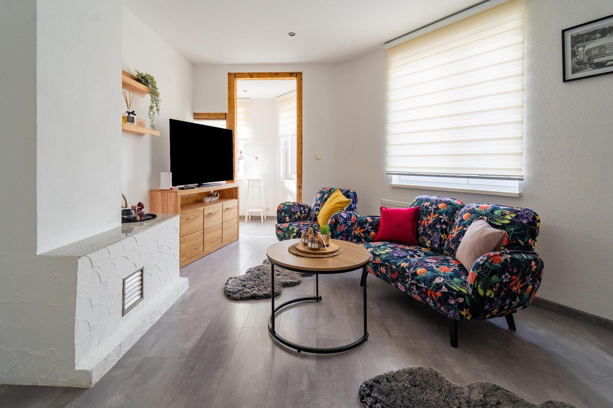 Dieses einladende Ferienhaus in Zella-Mehlis bietet einen ruhigen Rückzugsort am Rande des Thüringer Waldes, abseits vom Trubel und doch nah an Natur und Kultur. Die kürzlich renovierte und liebevoll eingerichtete Wohnung begrüßt Paare, Familien und Freunde mit ihrem gemütlichen Wohnbereich, den hellen Innenräumen und der wohnlichen Atmosphäre. Nach einem Tag im Freien können Sie es sich im Wohnzimmer gemütlich machen oder in der voll ausgestatteten Küche gemeinsam kochen, bevor Sie im geräumigen Badezimmer bei einem langen Bad in der Badewanne entspannen. Zella-Mehlis liegt am Eingang zum Rennsteig, Deutschlands berühmtestem Höhenwanderweg, und ist somit ein idealer Ausgangspunkt für malerische Wanderungen, Mountainbiketouren und Wintersport. Die Stadt ist auch als Zentrum des nordischen Skisports bekannt. Neben Outdoor-Aktivitäten können Sie das Explorata Science Center besuchen, lokale Museen erkunden oder einen Film im Kino genießen. Im Sommer bieten die nahegelegenen Freibäder, Spielplätze und Sportanlagen Spaß für alle Altersgruppen, während gemütliche Gaststätten und traditionelle Thüringer Restaurants Sie mit herzhaften regionalen Gerichten verwöhnen. Reisen mit Haustieren ist hier besonders lohnend. Von Waldwegen, die sich perfekt für lange Spaziergänge eignen, bis hin zu offenen Wiesen, auf denen Hunde frei laufen können, wird sich Ihr vierbeiniger Begleiter wie zu Hause fühlen. Viele Wanderwege rund um Zella-Mehlis sind hundefreundlich, und in den nahegelegenen Cafés sind Haustiere oft auf ihren Terrassen willkommen. So lässt sich Entspannung mit schöner Zeit im Freien verbinden.