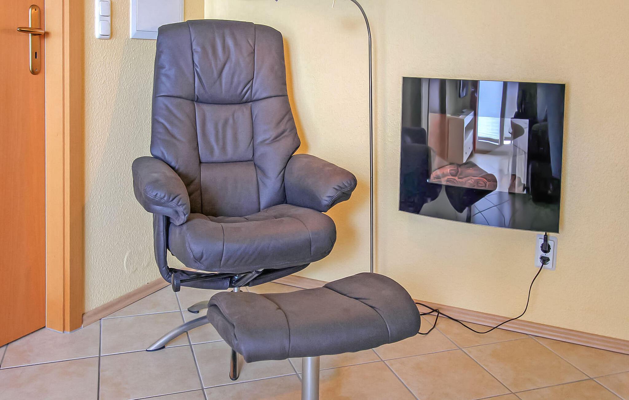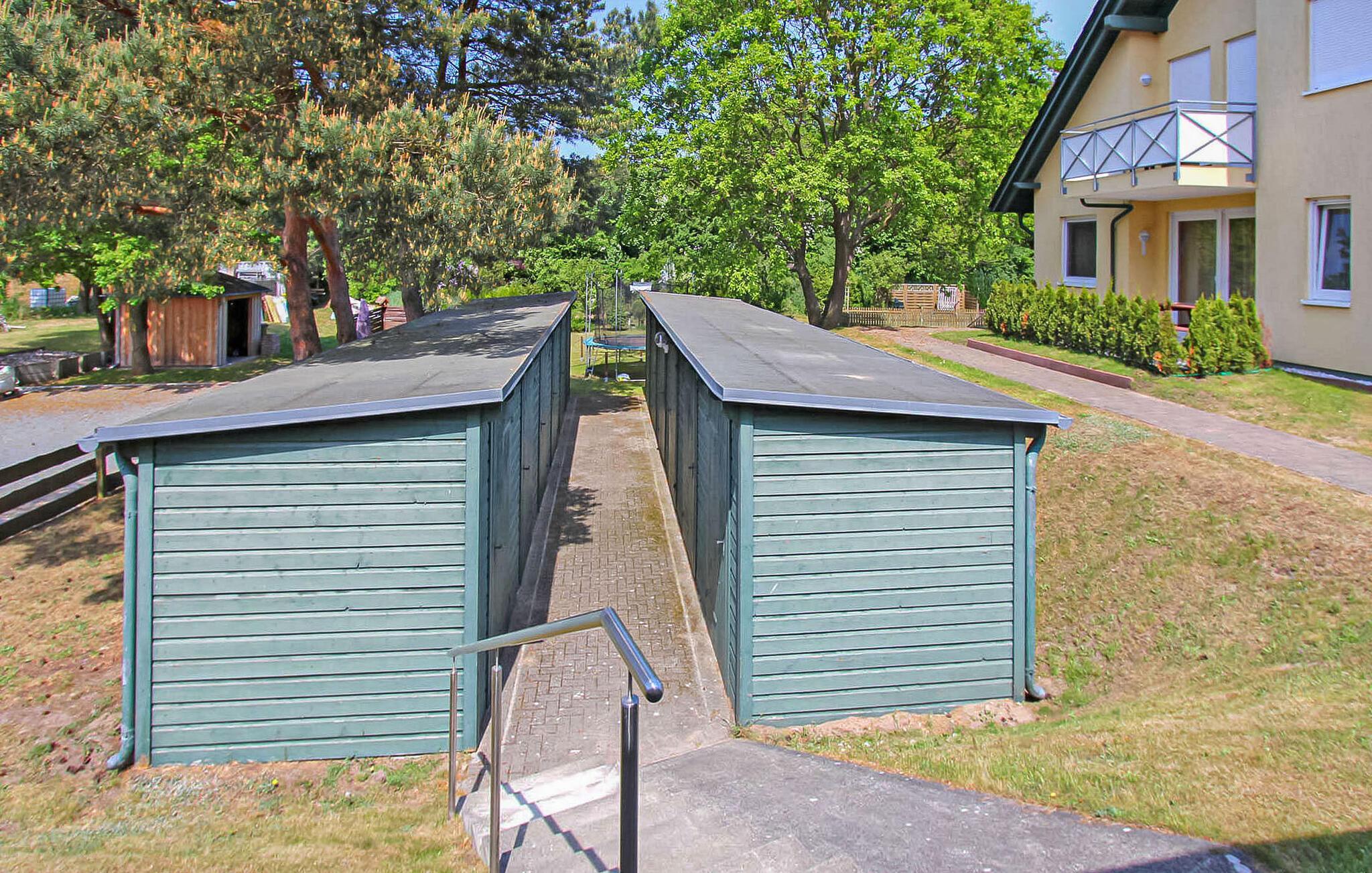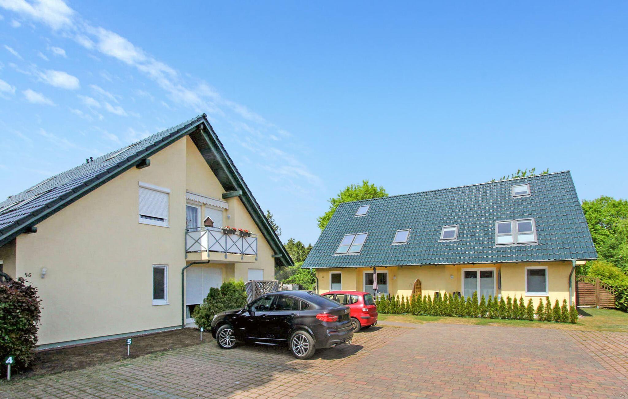 Nur ca. 600 m (etwa 12 Gehminuten) vom Ostseestrand und ca. 800 m vom Achterwasser entfernt, befindet sich im Erdgeschoss eines Appartementhauses mit insgesamt 6 Wohneinheiten die komfortable Ferienwohnung für 2 Personen mit zwei Aufbettungsmöglichkeiten. Die ca. 40 qm große, mit Fußbodenheizung und einem Elektro-Kamin ausgestattete Nichtraucher-Wohnung verfügt über einen Wohnraum (Schlafcouch - Aufbettung für 2 Personen, Flachbild-TV mit Radio, Esstisch) mit offener Küche (E-Herd mit Backofen, Kühlschrank, Mikrowelle, Geschirrspüler, Wasserkocher, Kaffeemaschine), ein Schlafzimmer (Doppelbett) sowie ein Bad (Dusche, WC, Waschmaschine). Weiterhin stehen eine möblierte Terrasse, ein PKW-Stellplatz und ein Fahrradabstellraum zur Verfügung.