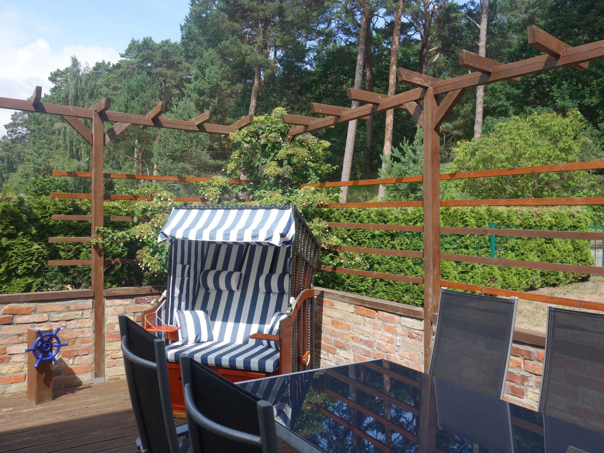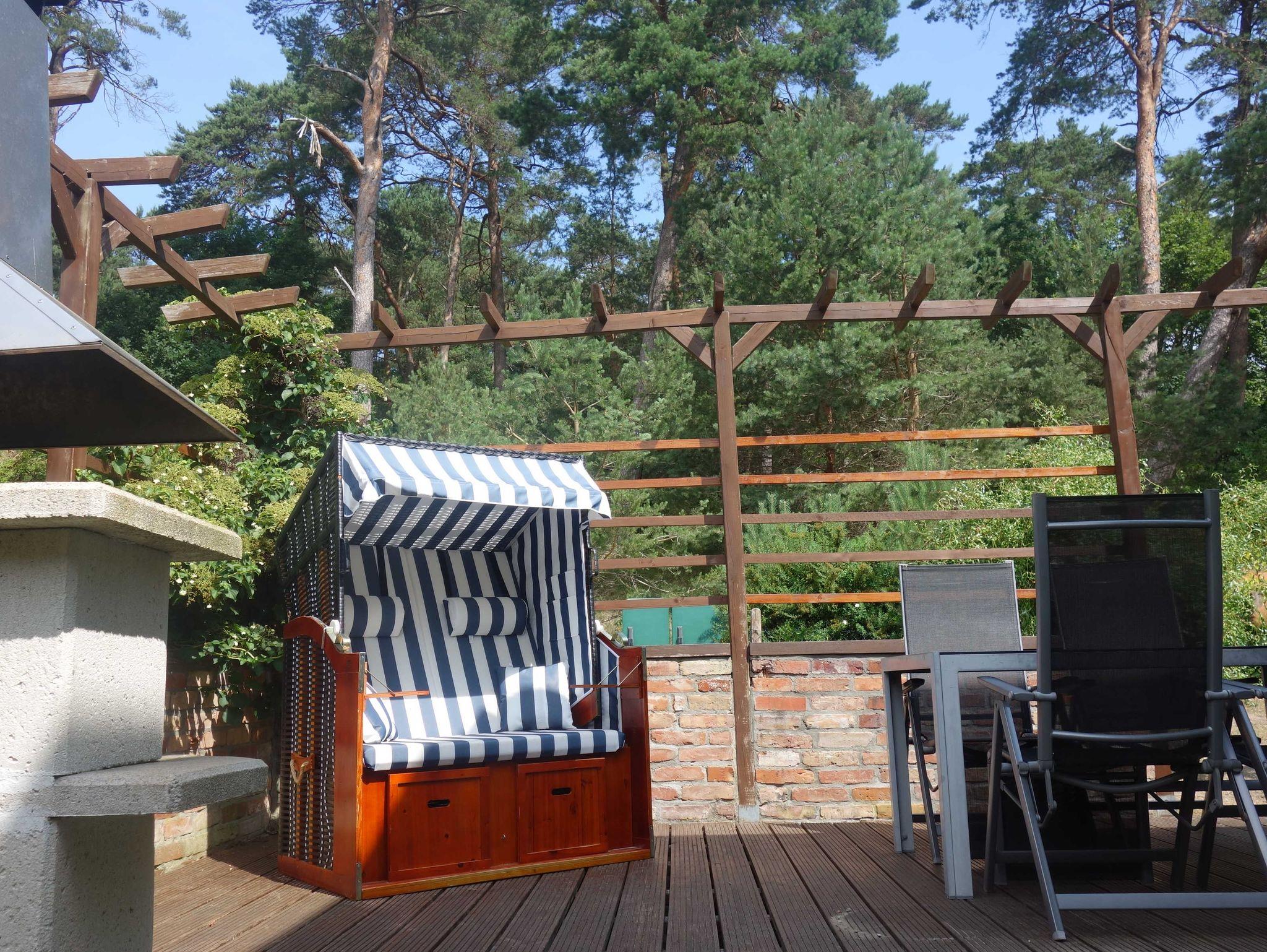 24 qm Holzterrasse mit Grillkamin und Blick auf den Küstenwald in eigenem umzäunten Gartenbereich von ca.100 qm direkt am Wohnzimmer; eigener abschließbarer Fahrradschuppen (2,5m x 2m), Leihbettwäsche und Leihhandtücher incl.; kostenlose Kinderausstattung (Reisebett mit Matratze, Hochstuhl, WC-Sitz und Schemel, Wickelauflage, Kindergeschirr) auf Anfrage;