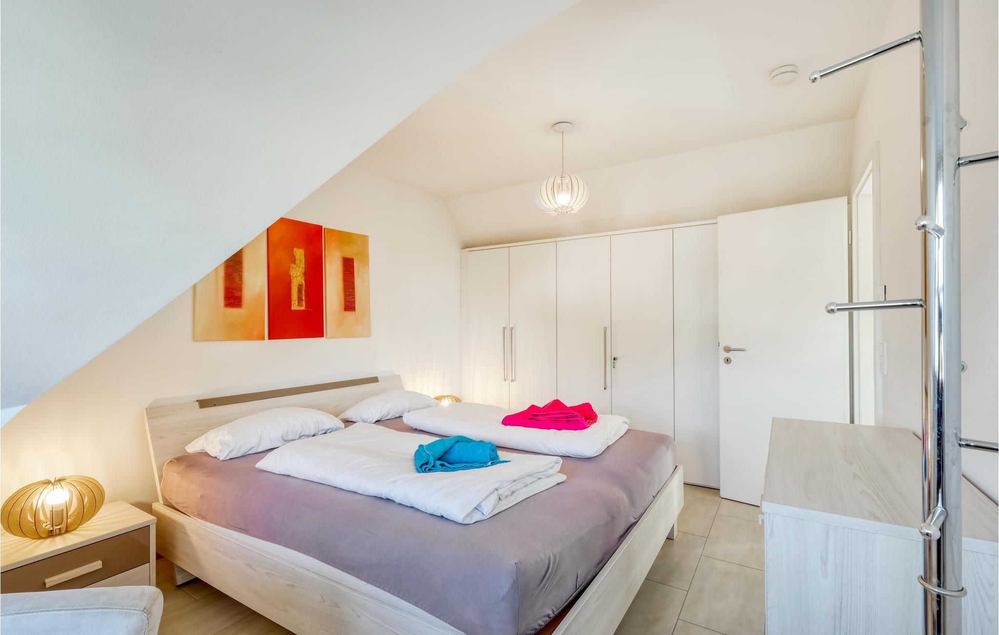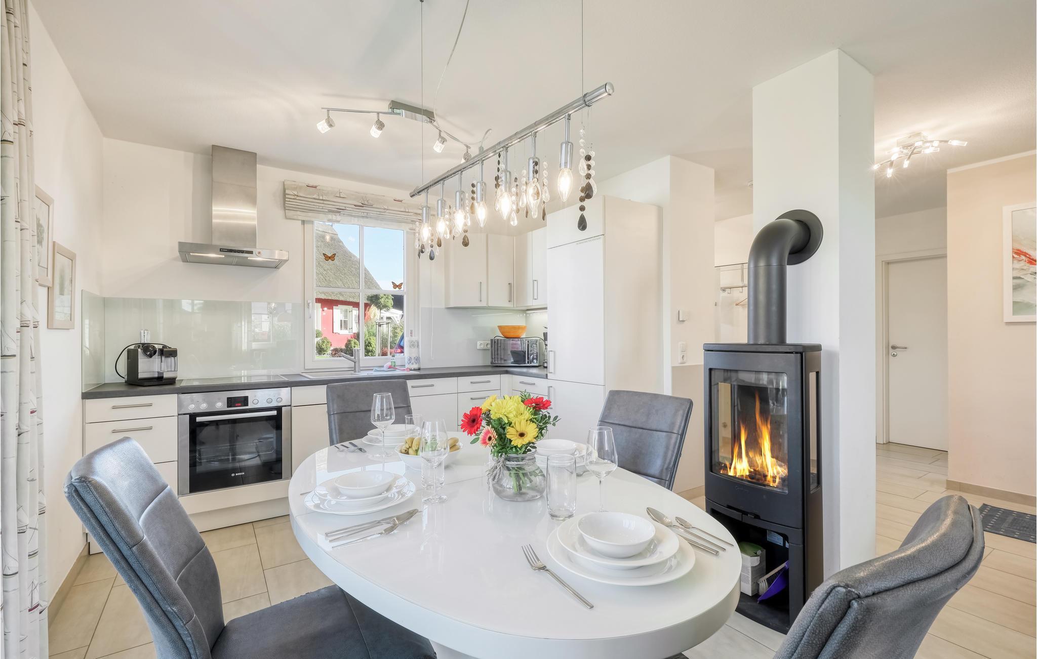 In dieser Doppelhaushälfte finden Sie einen Saunaraum mit Dusche und Ruhezone, der sich ideal zum entspannen eignet. Der hochwertig eingerichtete Wohnraum mit offener Küche verfügt über einen Kaminofen. Vom Wohnraum aus gelangen Sie auf die großzügige, überdachte Terrasse mit Windschutz und Gasgrill. Hier können Sie sonnige Stunden verbringen.