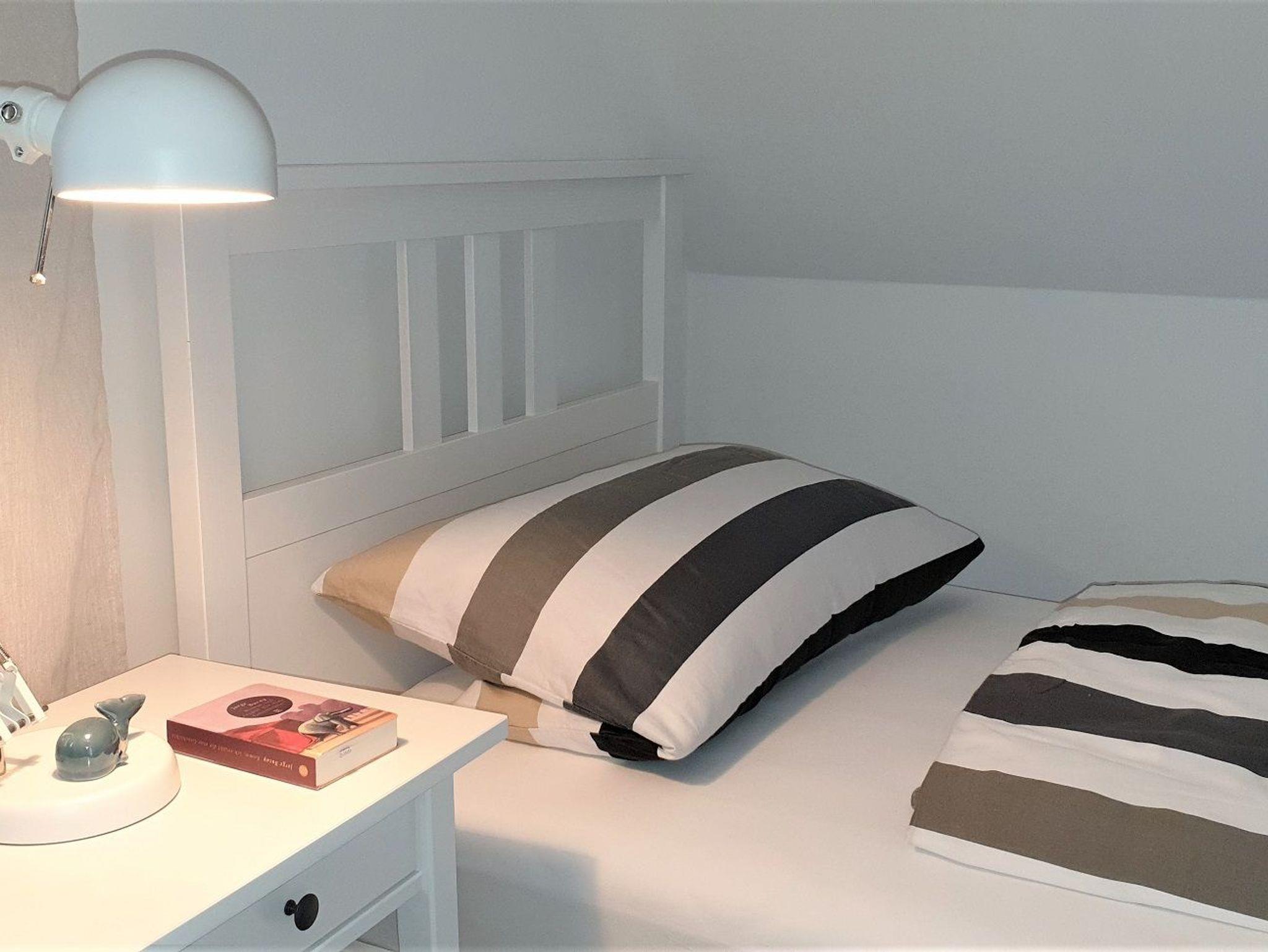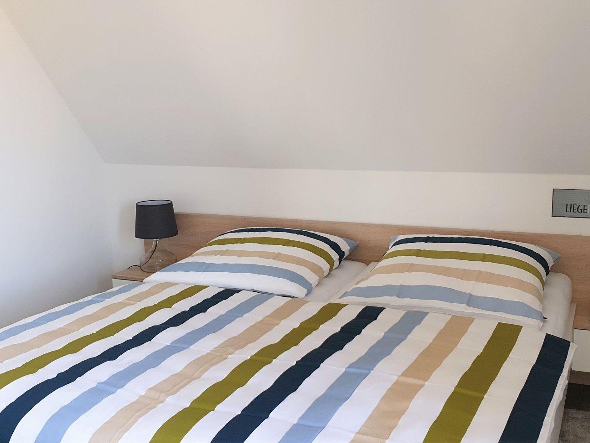 Unser Haus verfügt über zwei Schlafzimmer und einem großen Bad mir Fledermausgaube und Tageslicht im Obergeschoss. Eines der Zimmer hat ein großes gemütliches Doppelbett, genügend Stauraum für Kleidung und persönliche Dinge, sowie einen Balkon mit Blick auf die Ostsee. Hier kann man wunderschöne Sonnenuntergänge genießen und den Tag entspannt ausklingen lassen. Wer von den Sonnenstrahlen am Morgen geweckt werden möchte ist im zweiten Schlafzimmer bestens aufgehoben. Hier befinden sich zwei Einzelbetten und zusätzlich eine ausziehbare Schlafcouch für zwei Personen. Familien mit bis zu vier Kindern können es sich hier gemütlich machen.