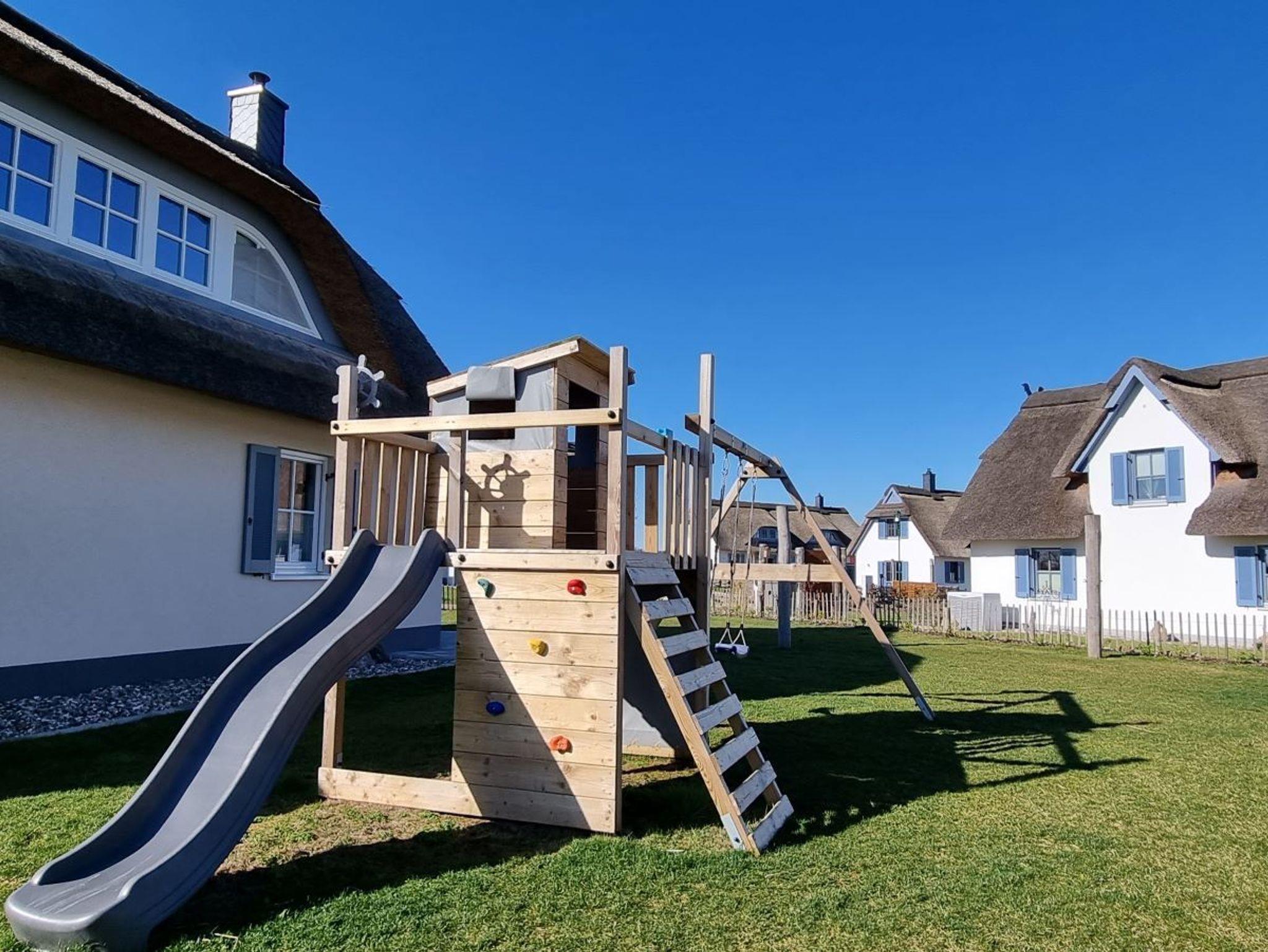 Unser Sommerhuus liegt auf einem 800m2 großen Grundstück welches komplett eingefriedet ist und ebenfalls viele Möglichkeiten für Spaß und Entspannung bietet. Im Gartenhaus finden Sie neben dem „Brötchenfahrrad“ Alles, was Sie für Ihren Strandaufenthalt brauchen wie z.B. Picknickdecke, Strandmuschel, Klappstühle, Sandspielzeuge. Für den Transport steht Ihnen ein Bollerwagen bereit. Für aktive Stunden im eigenen Garten nutzen Sie ebenfalls gerne die Sportgeräte wie Federball, Slackline, Beachball oder Fussballtore oder entspannen in der Hängematte oder in den Sitzsäcken. Dabei können Sie Ihren Kindern auf dem Klettergerüst mit Schaukel und Rutsche beim Spielen Zusehen. Für die ganz Kleinen kann an heißen Tagen auch das Planschbecken eine Abkühlung abseits der Ostsee bieten.