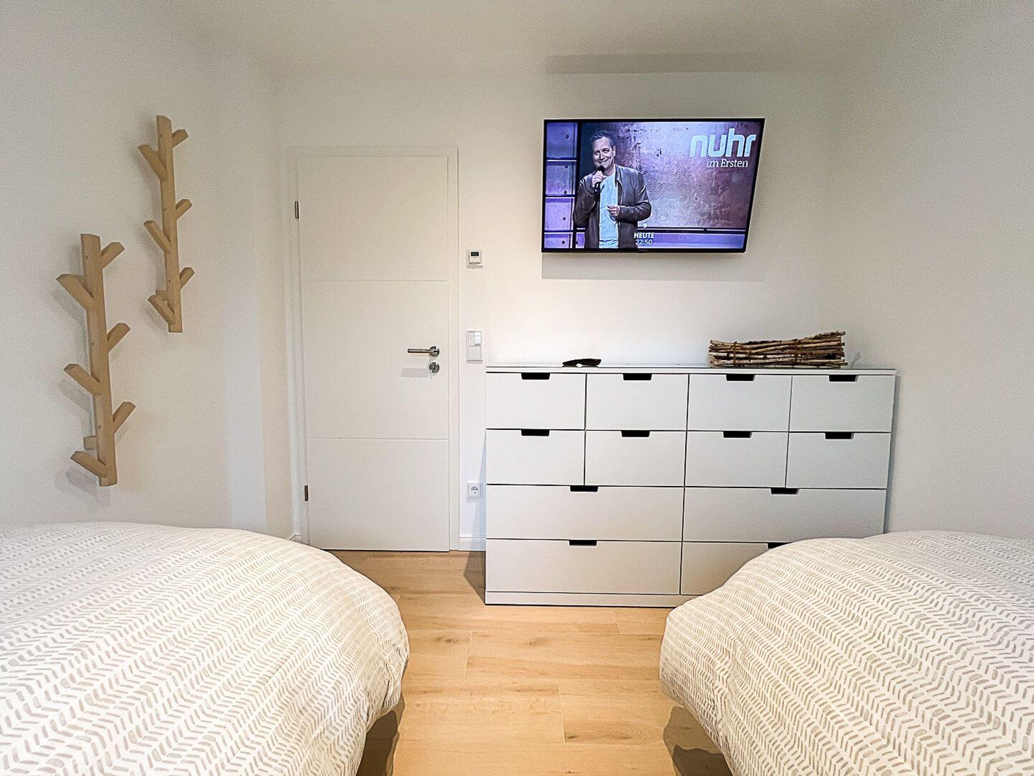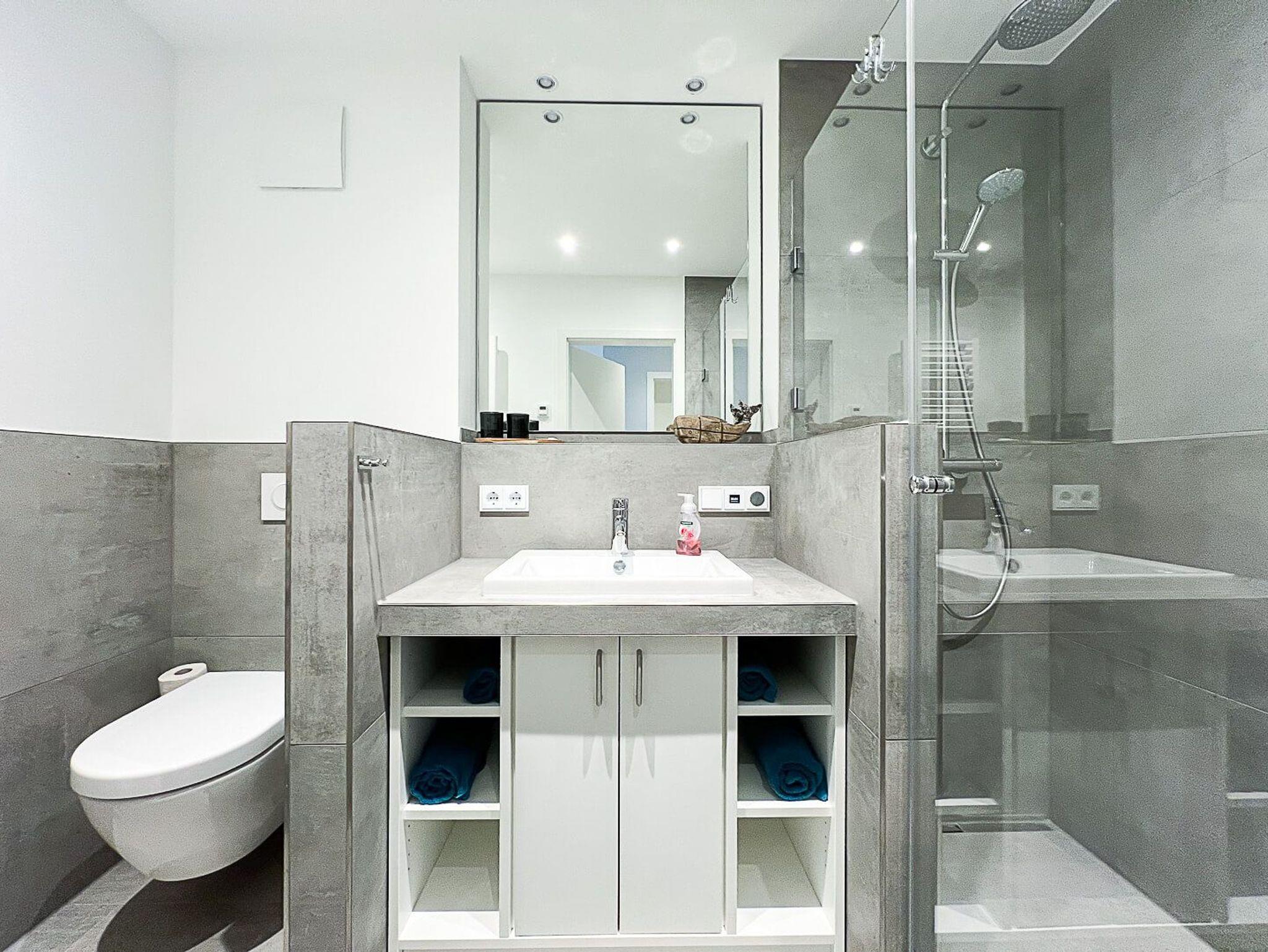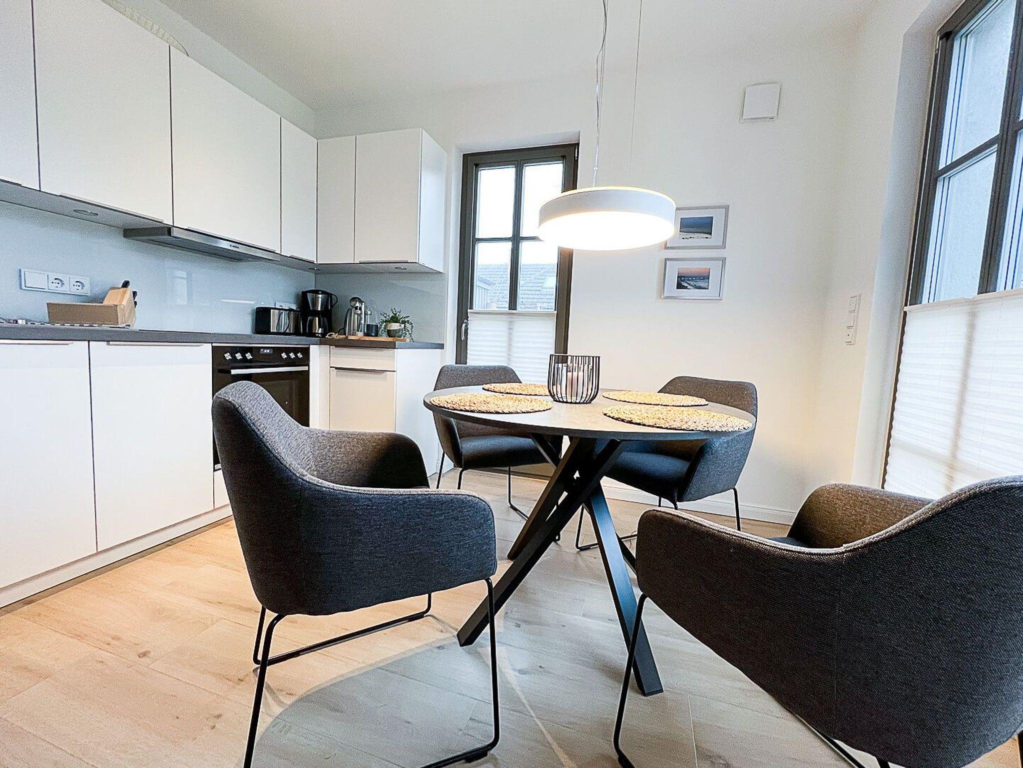 Die 62 m² große Ferienwohnung Surfside bietet ein modernes Wohnerlebnis im Erdgeschoss für bis zu 4 Personen. Das Herzstück ist der lichtdurchflutete Wohn- und Essbereich mit einem hochwertigen Gaskamin, der auf Knopfdruck für gemütliche Stunden sorgt. Die offene Küche ist voll ausgestattet und verfügt über eine Nespresso-Maschine für den perfekten Urlaubsstart. Die Wohnung bietet zwei separate Schlafzimmer: eines mit einem komfortablen Doppelbett und eines mit zwei Einzelbetten. Ein besonderes Highlight ist die mediale Ausstattung mit Smart-TVs in allen drei Zimmern. Das Badezimmer überzeugt mit einer bodengleichen Wellnessdusche und Fußbodenheizung. Eine eigene Waschmaschine und kostenfreies WLAN stehen Ihnen ebenfalls zur Verfügung.