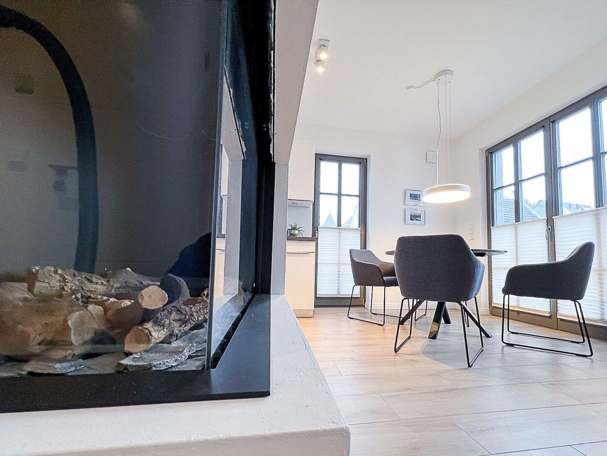 Moderne Ferienwohnung Surfside in Zingst mit Garten, WLAN und Gaskamin für entspannte Urlaubstage.